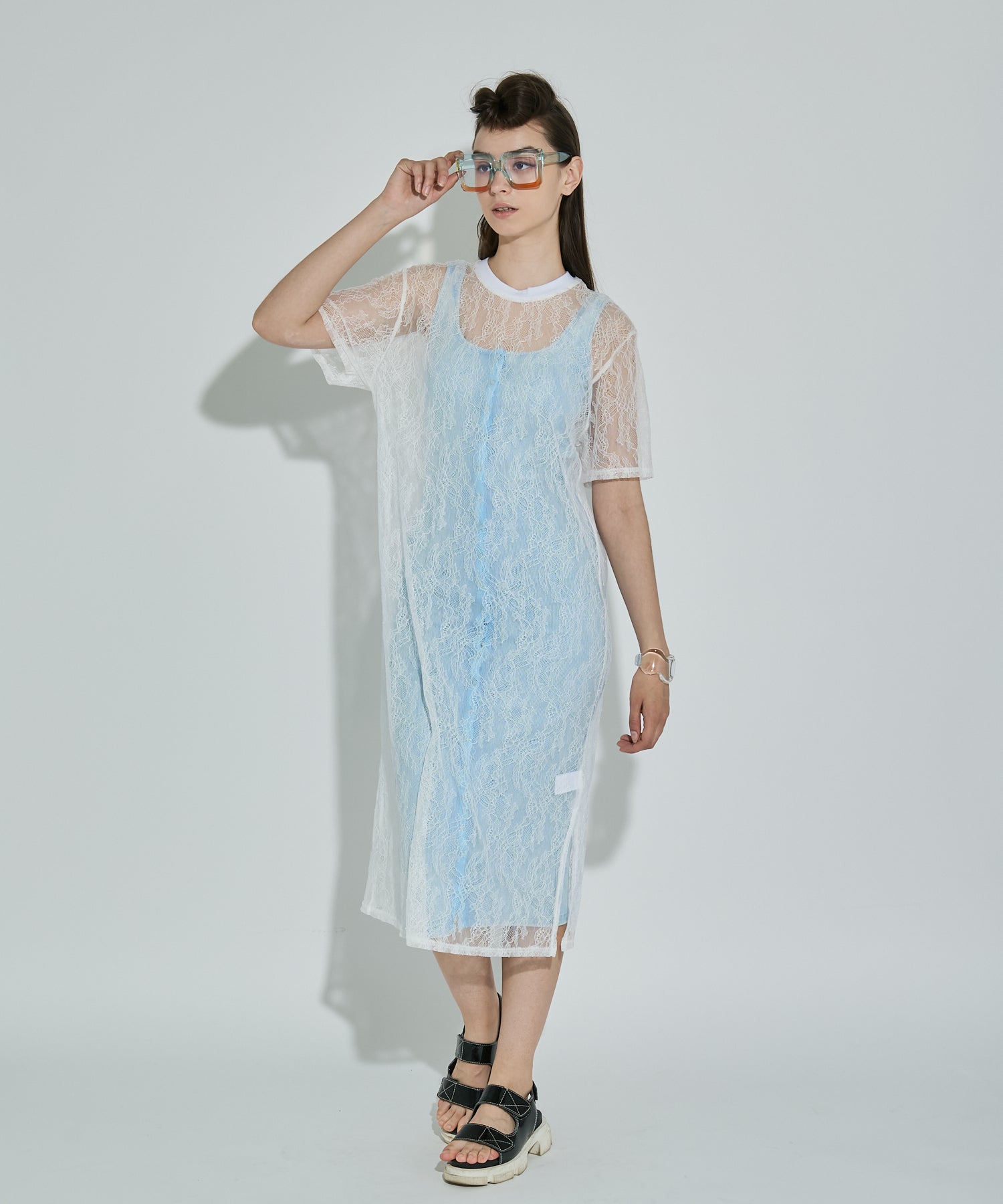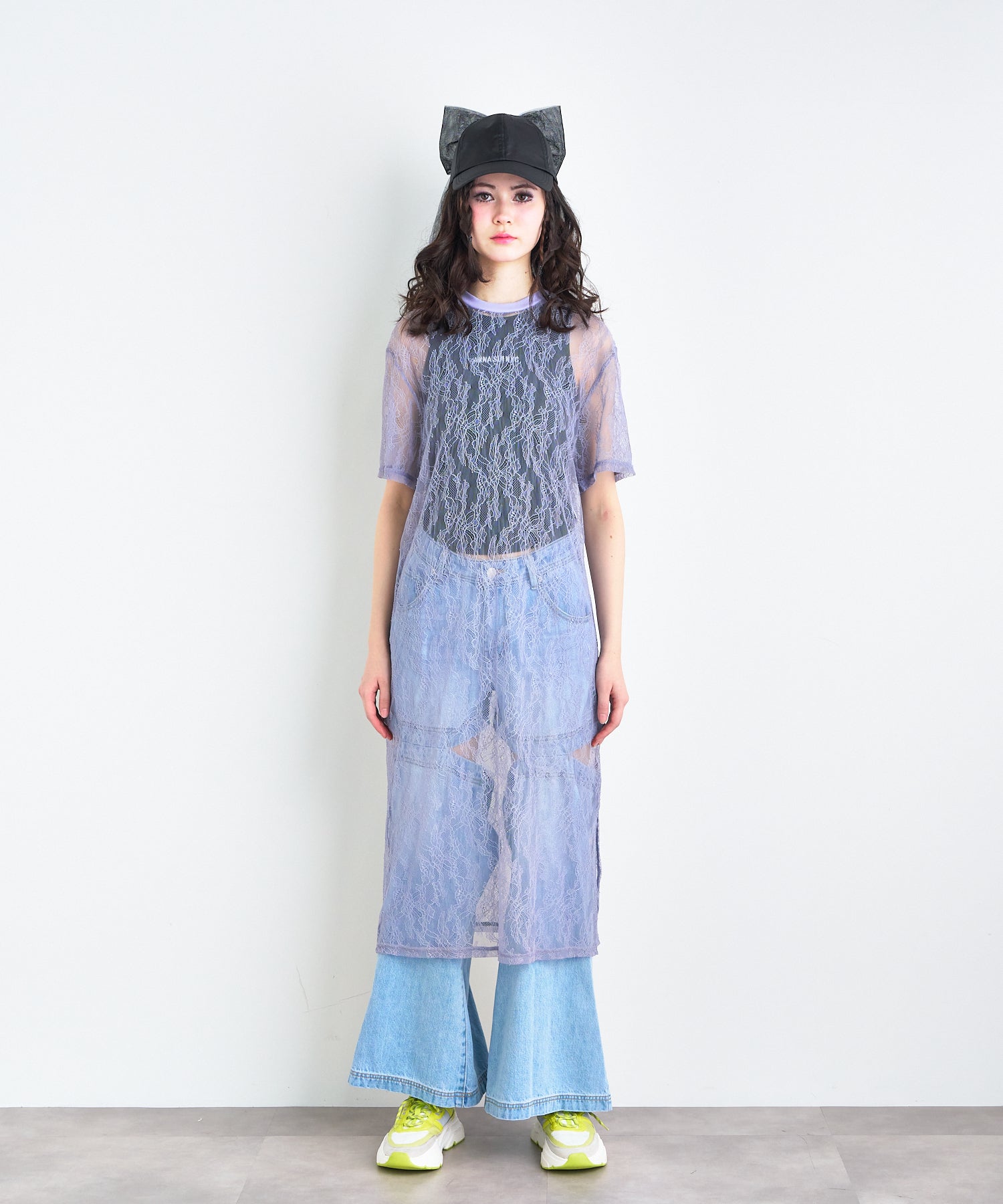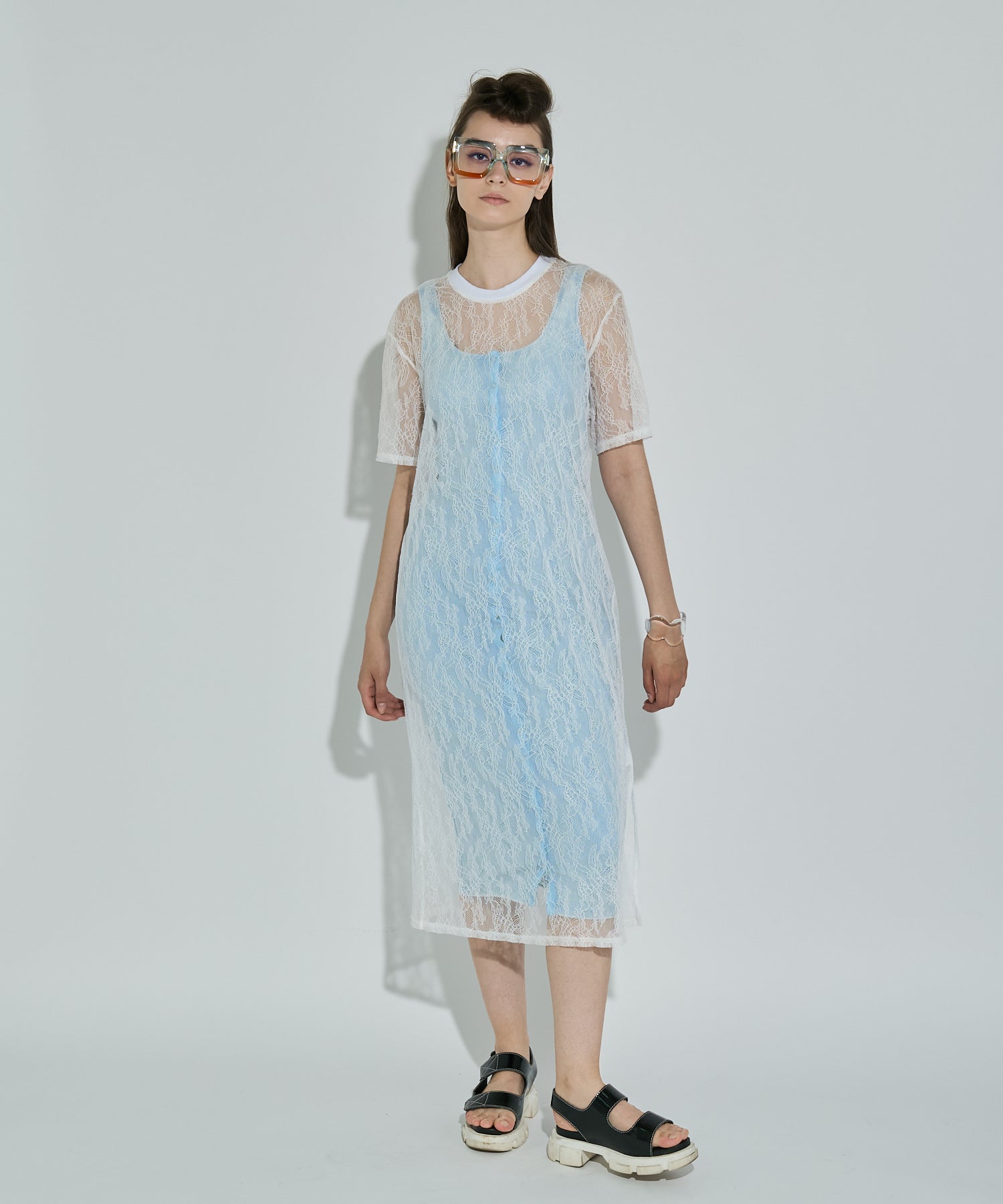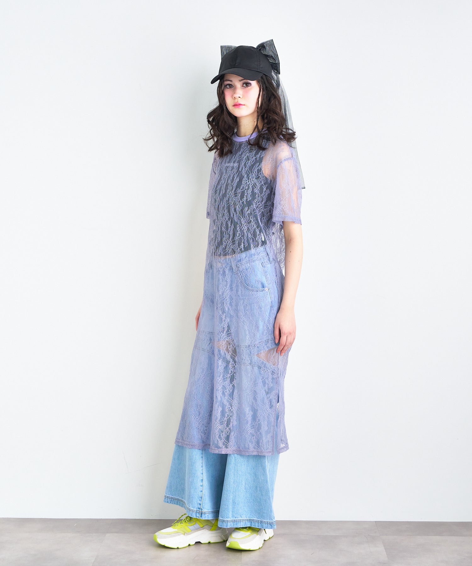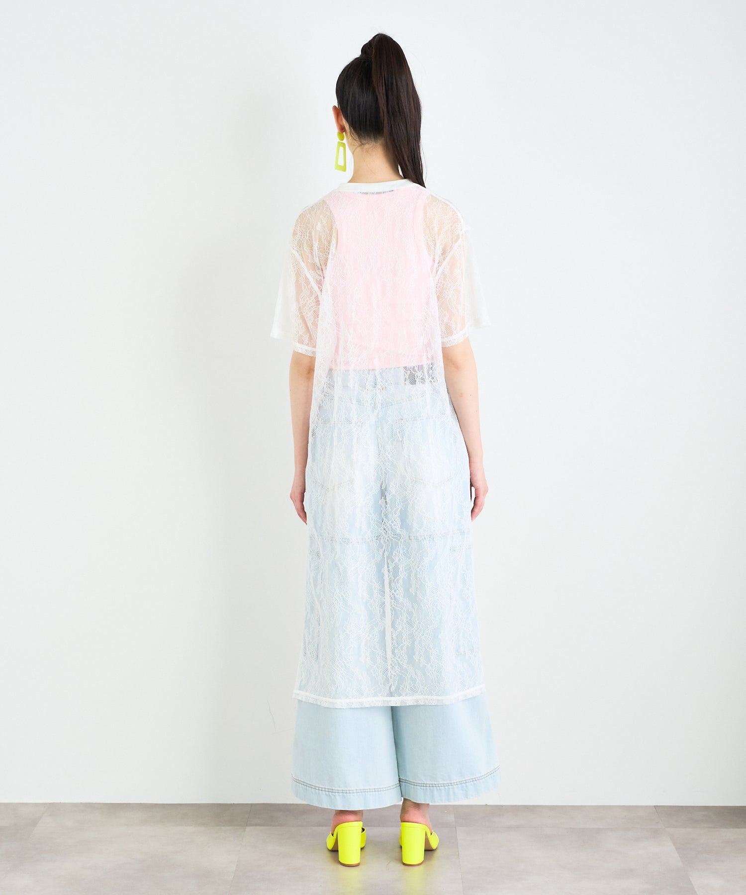 ボタニカル柄の繊細なレースを使用したTシャツ型ロングワンピース。カジュアルなシルエットながらもフェミニンな素材感でさりげなく華やかさをプラスしてくれます。春夏はTシャツの上から、秋冬はニットやスウェットの中に着るなど、レイヤード次第でオールシーズン楽しめるアイテムです◎