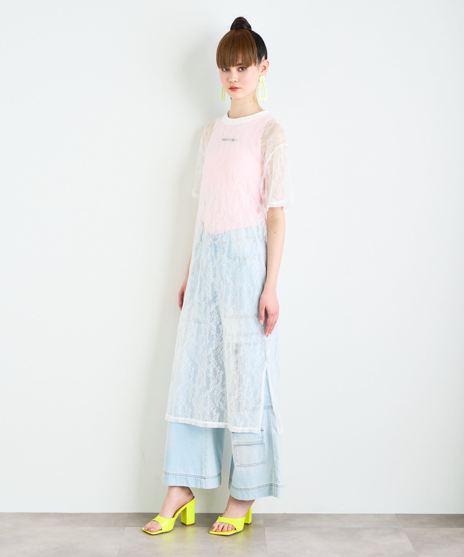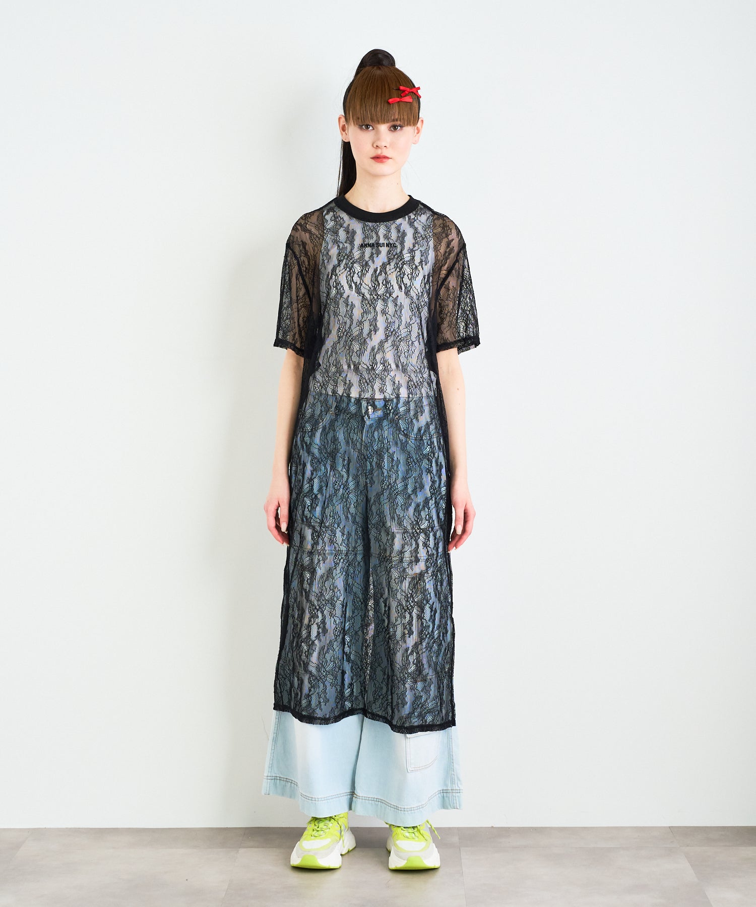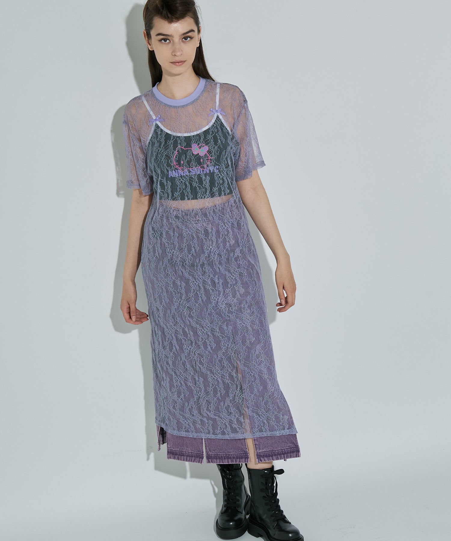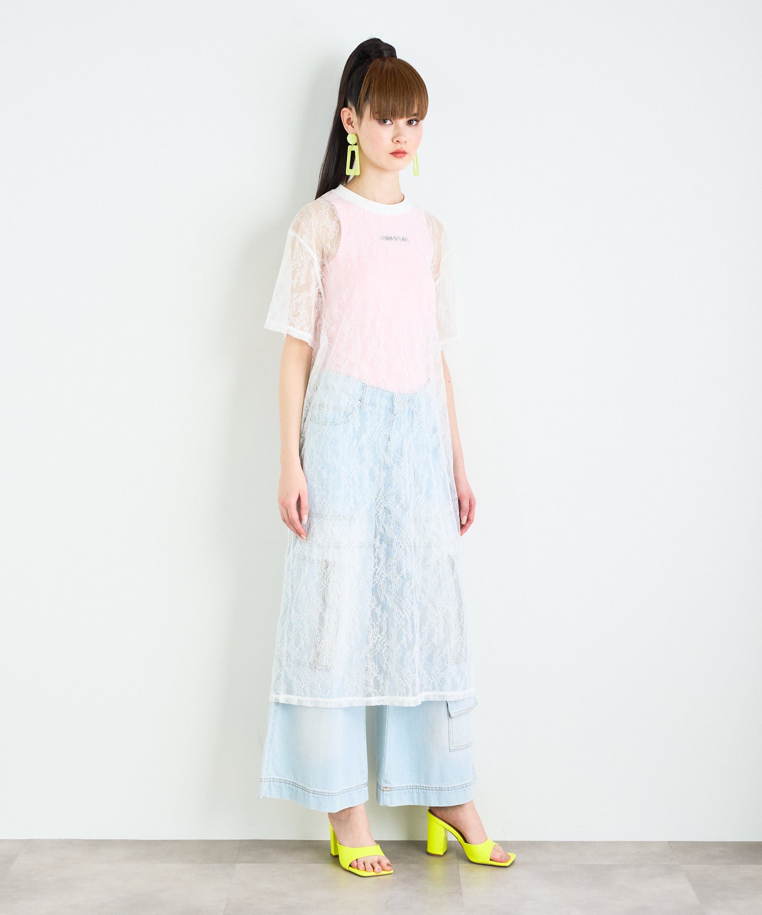 ボタニカル柄の繊細なレースを使用したTシャツ型ロングワンピース。カジュアルなシルエットながらもフェミニンな素材感でさりげなく華やかさをプラスしてくれます。春夏はTシャツの上から、秋冬はニットやスウェットの中に着るなど、レイヤード次第でオールシーズン楽しめるアイテムです◎