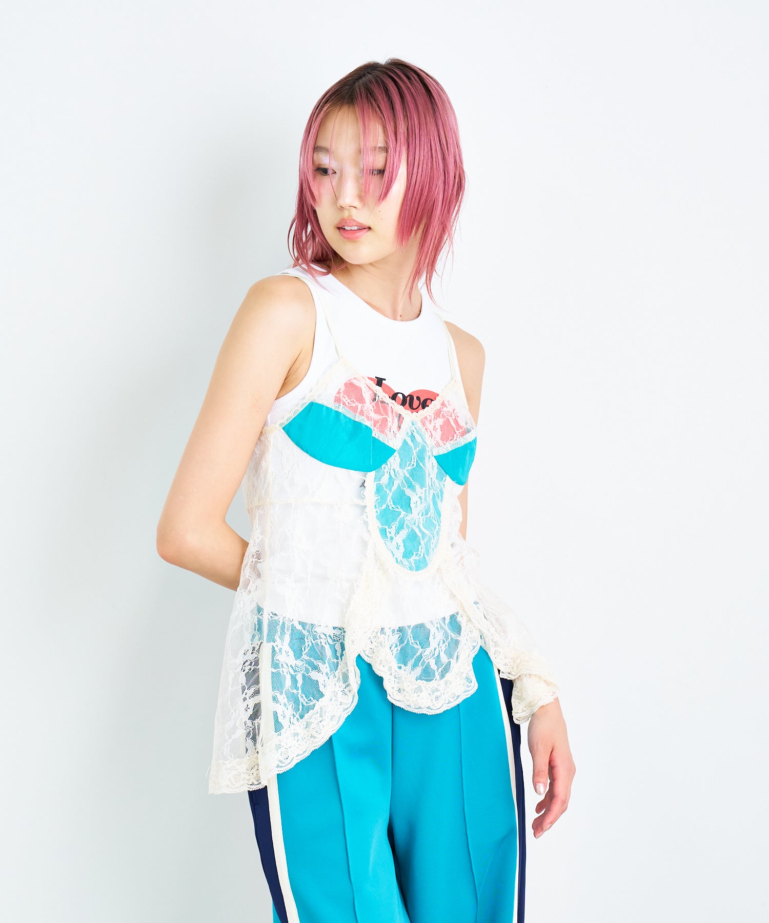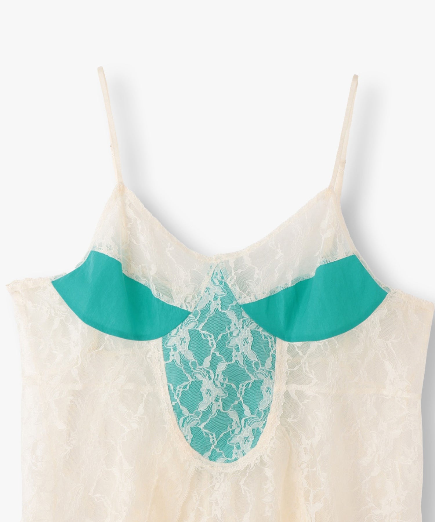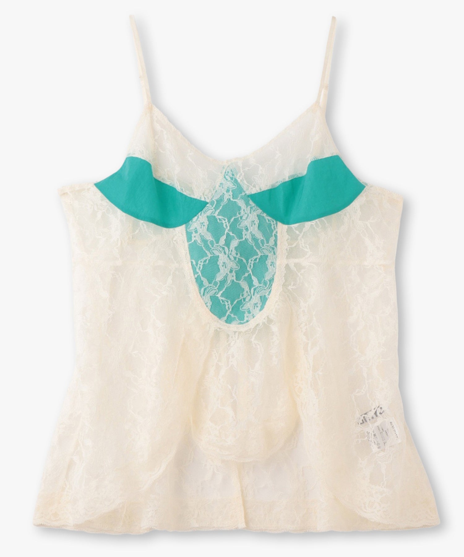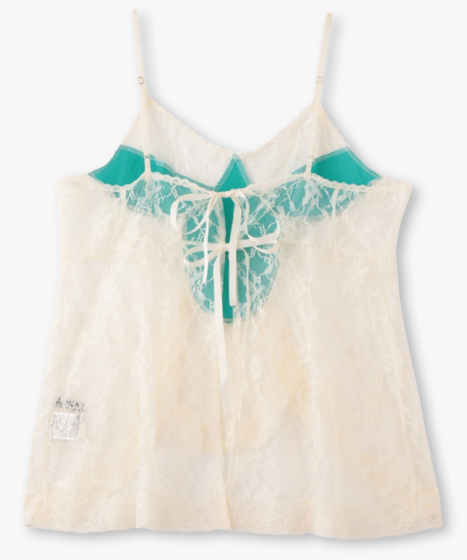 3種類のレースを使用したラグジュアリーな印象のキャミソールビスチェ。ランジェリーのような繊細で華やかなデザインはトッピングアイテムとしてオールシーズン活躍してくれます。バックはリボン仕様でインナーや体型に合わせたマルチなサイズ調節が可能◎カラーによって印象が異なるので、おもわず多色買いしたくなるアイテムです。