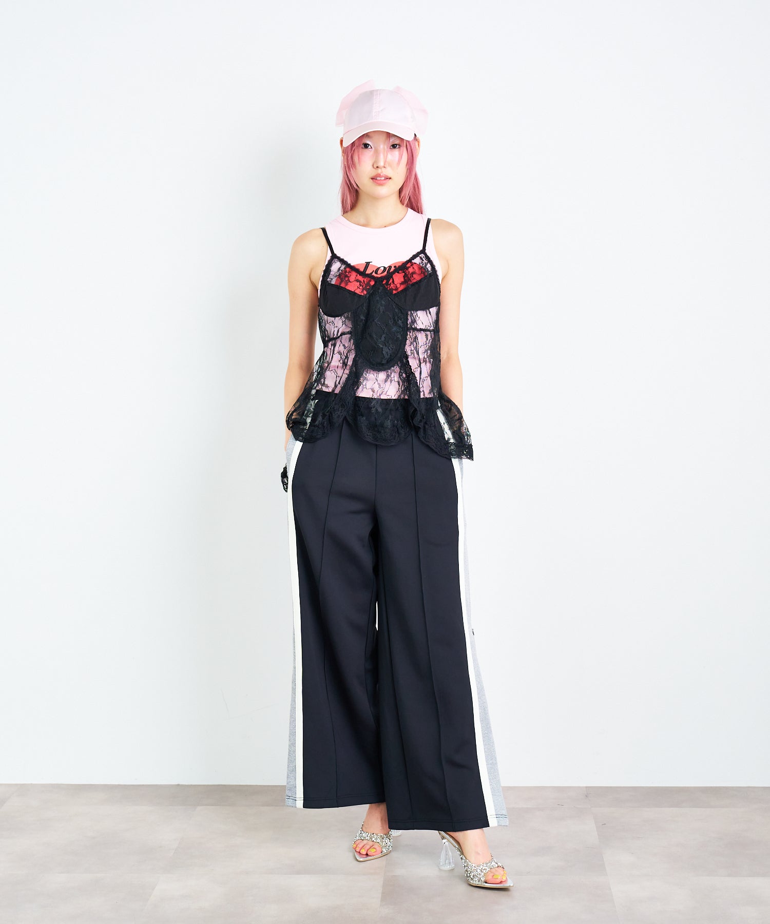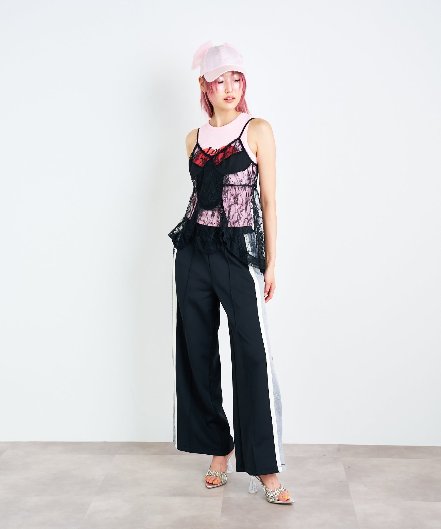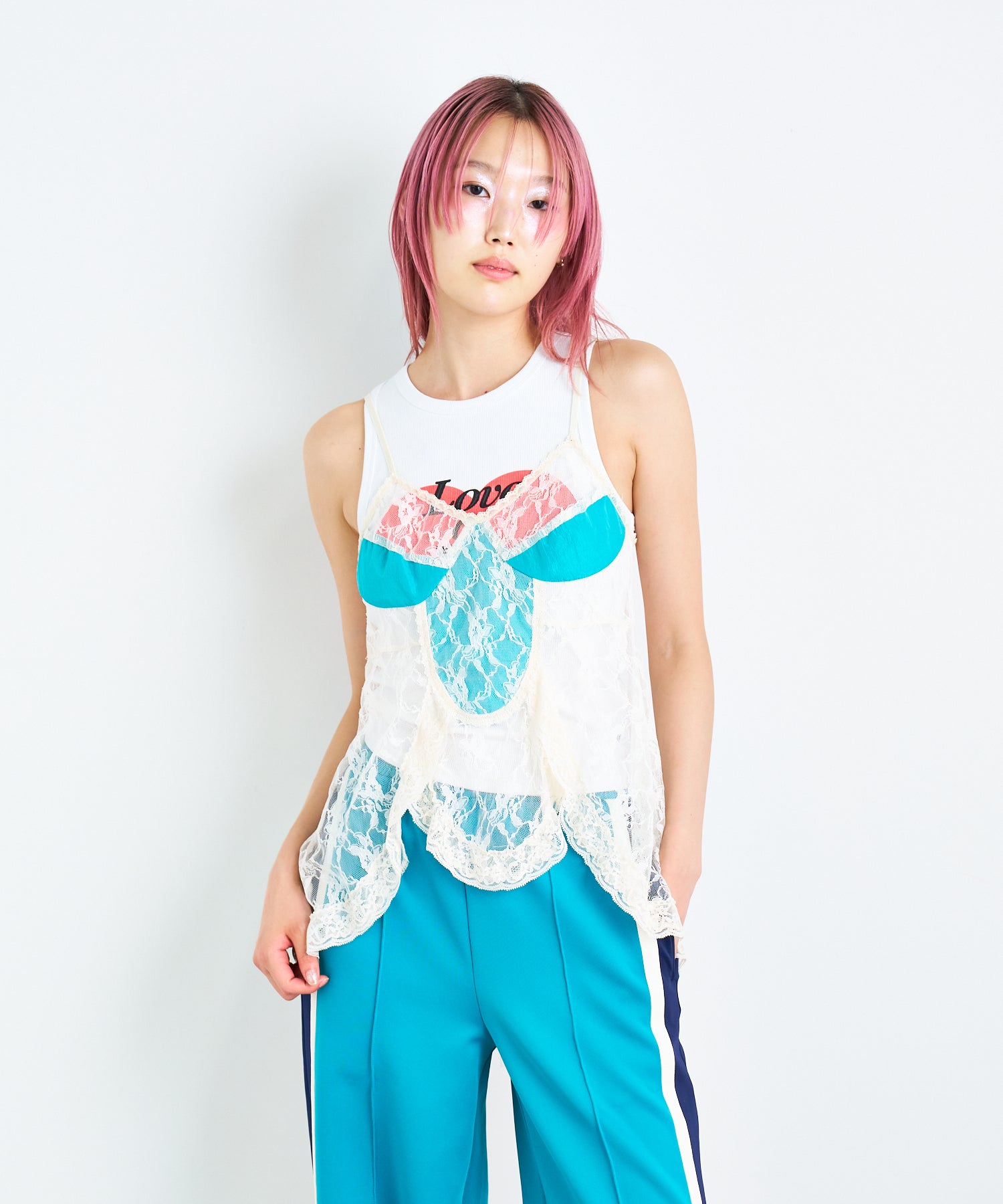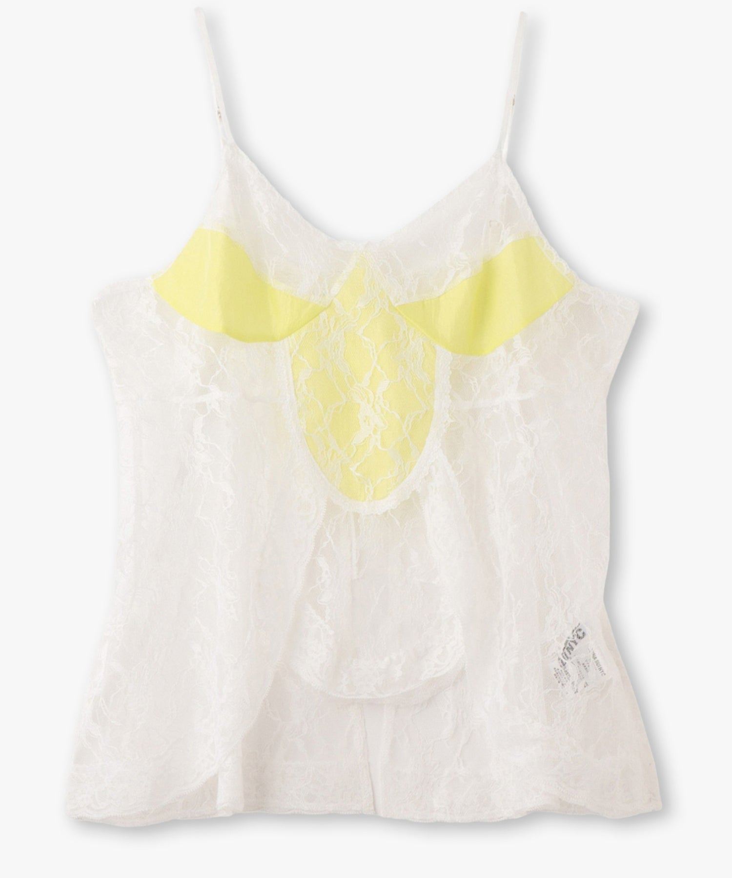 3種類のレースを使用したラグジュアリーな印象のキャミソールビスチェ。ランジェリーのような繊細で華やかなデザインはトッピングアイテムとしてオールシーズン活躍してくれます。バックはリボン仕様でインナーや体型に合わせたマルチなサイズ調節が可能◎カラーによって印象が異なるので、おもわず多色買いしたくなるアイテムです。