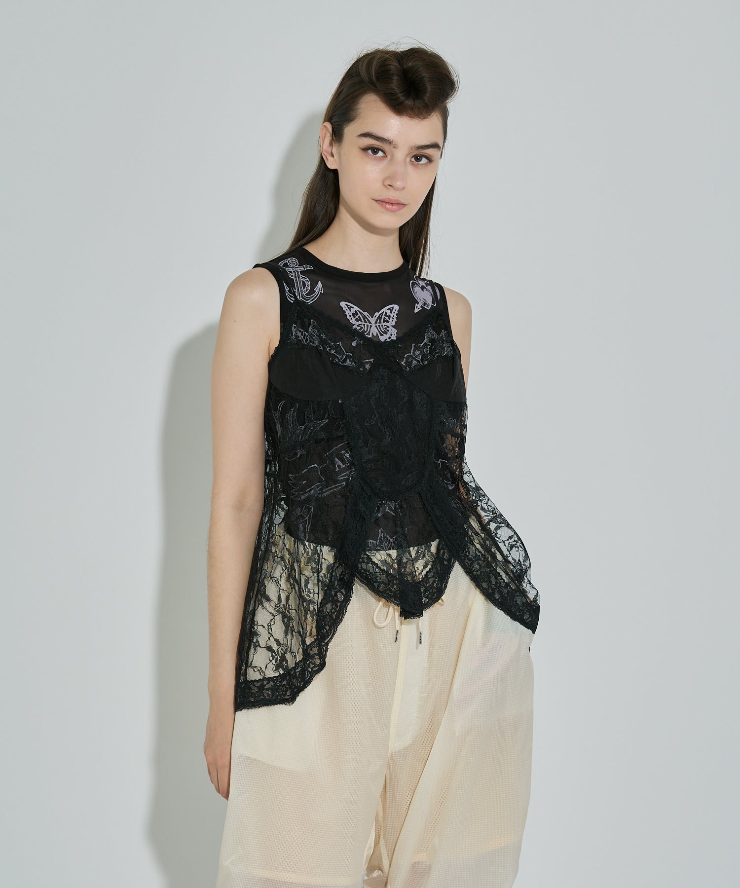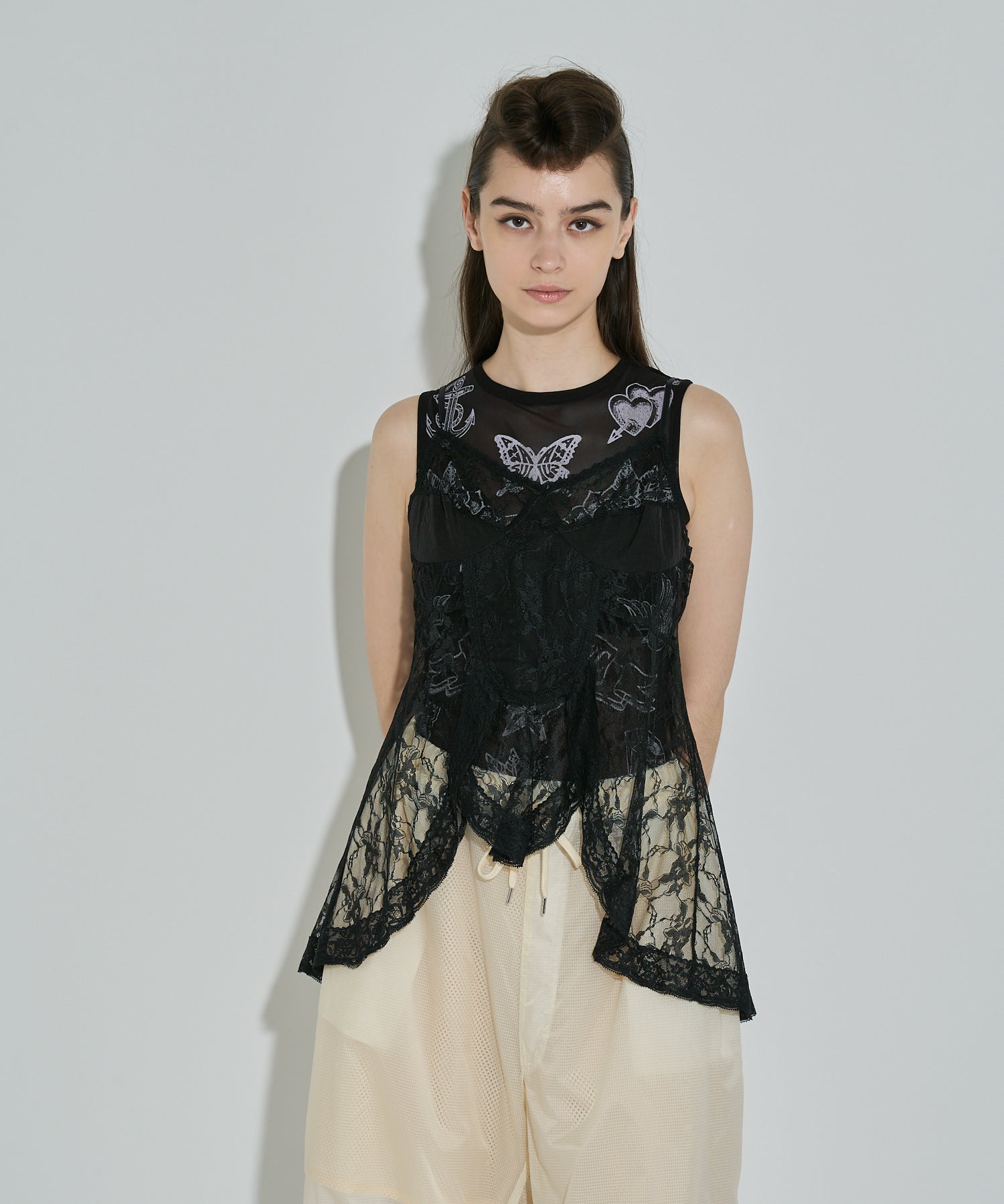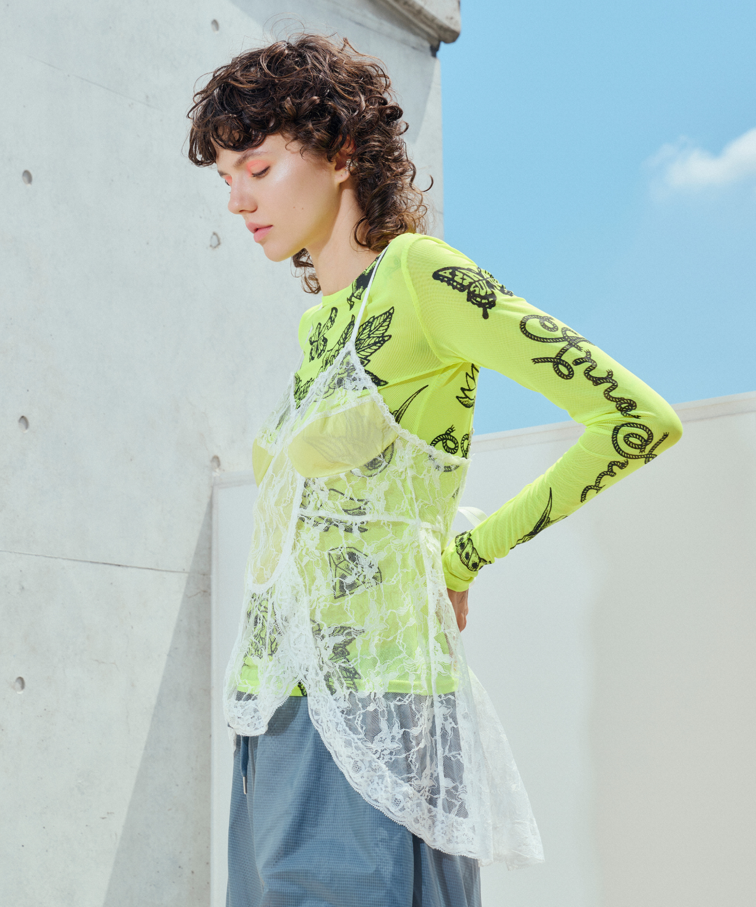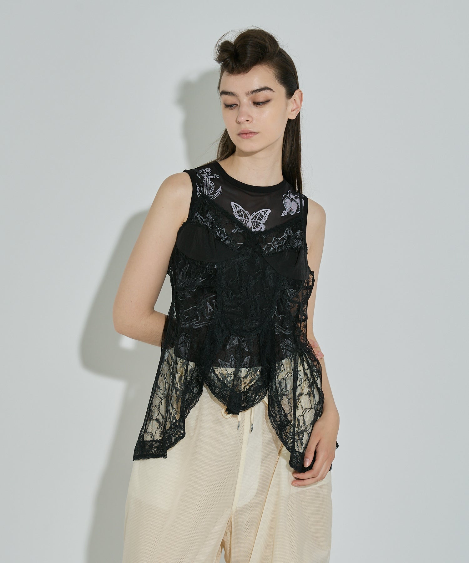 3種類のレースを使用したラグジュアリーな印象のキャミソールビスチェ。ランジェリーのような繊細で華やかなデザインはトッピングアイテムとしてオールシーズン活躍してくれます。バックはリボン仕様でインナーや体型に合わせたマルチなサイズ調節が可能◎カラーによって印象が異なるので、おもわず多色買いしたくなるアイテムです。