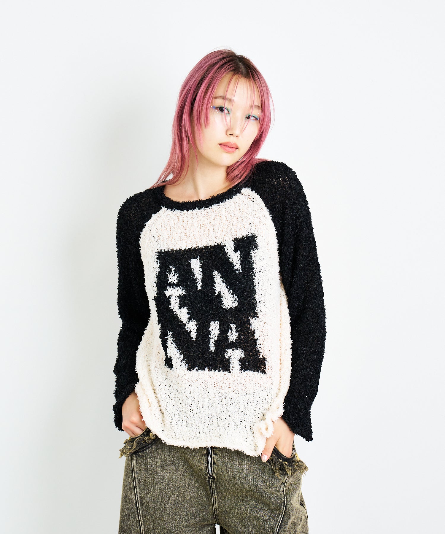 表面感のあるフラッグヤーンで仕立てた、レトロなムード漂うニットプルオーバー。配色のラグランスリーブと大胆に配されたANNA SUI のアーカイブロゴが目を引き、ノスタルジックな雰囲気とモダンなエッセンスが融合した仕上がりに。一枚でスタイリングのアクセントになる、トレンド感たっぷりのアイテムです。
