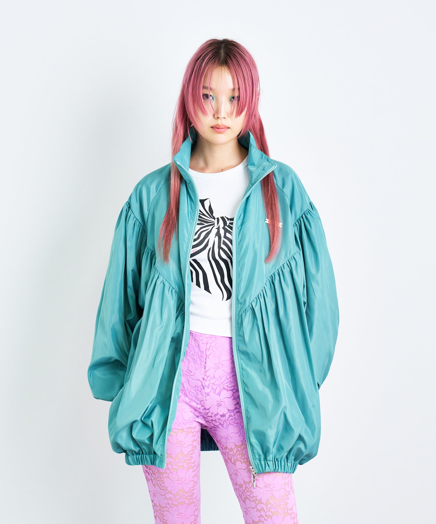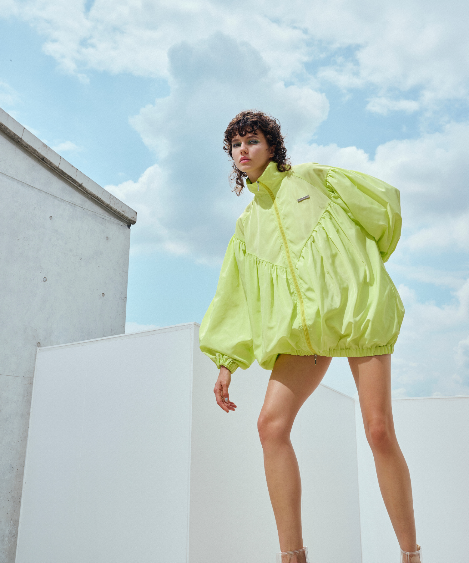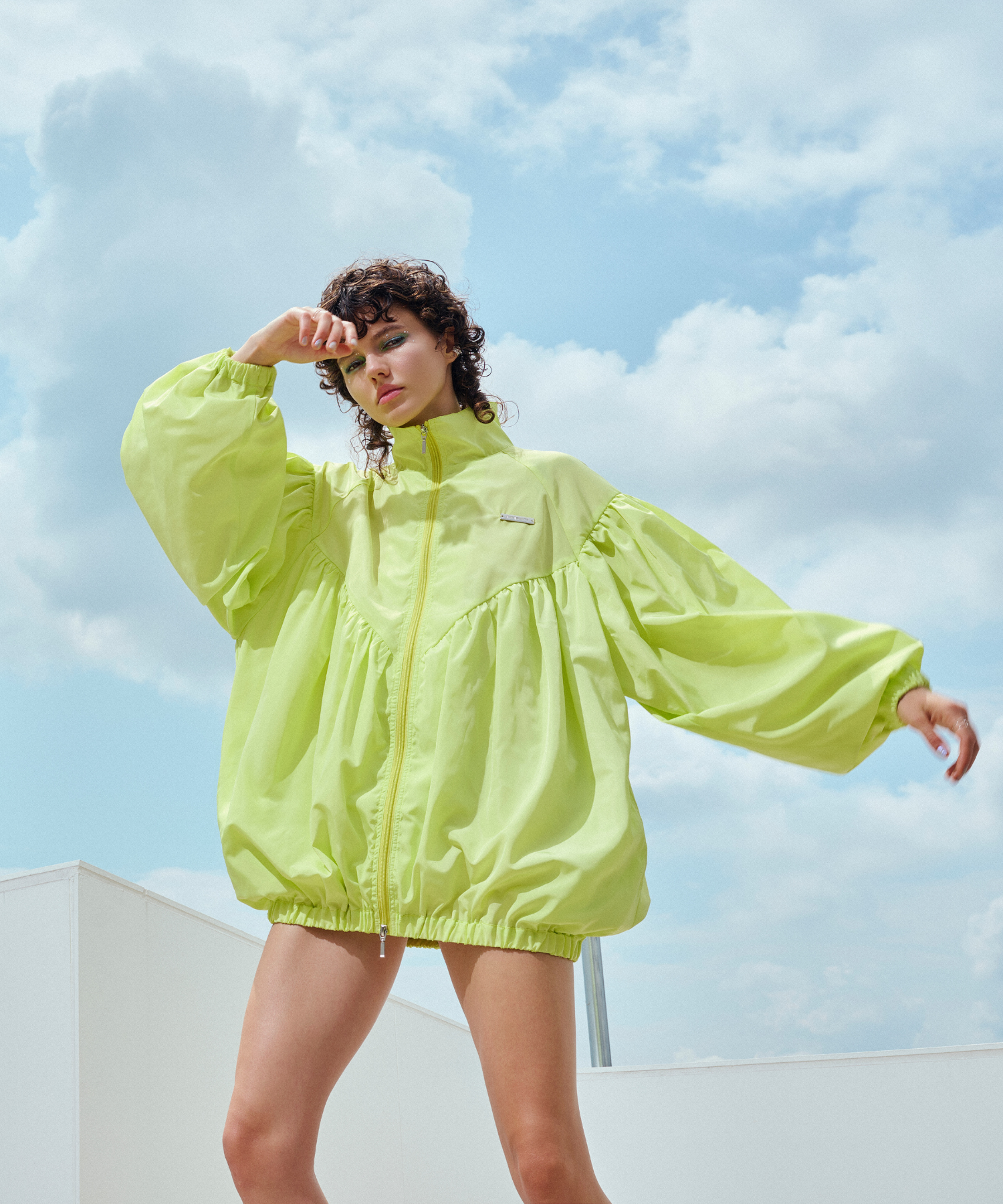 トレンドのバルーンシルエットを取り入れたオーバーサイズブルゾン。たっぷりと寄せられたギャザーが生み出す柔らかいフォルムは、スポーティでありながら女性らしい印象を与えてくれます。ベーシックなブラックや気分の上がる鮮やかなライムグリーンなど、カラーによってイメージが異なるので、自分に合うカラーを見つけていただけます◎どんなコーデにもこのアウターさえ投入すれば、トレンド感のあるシルエットが完成します。