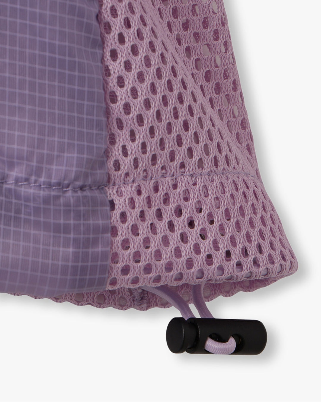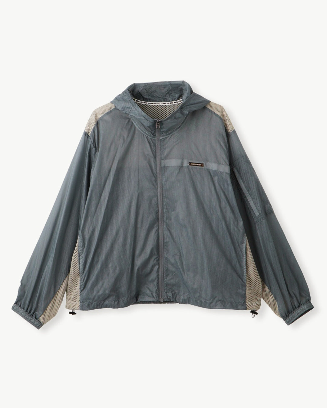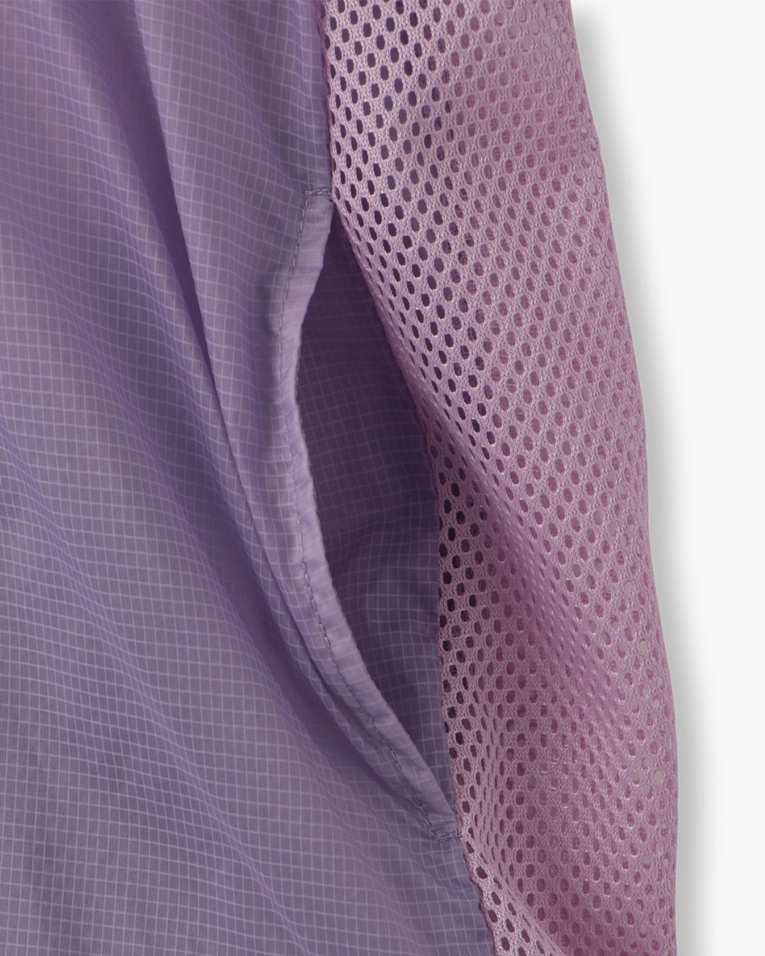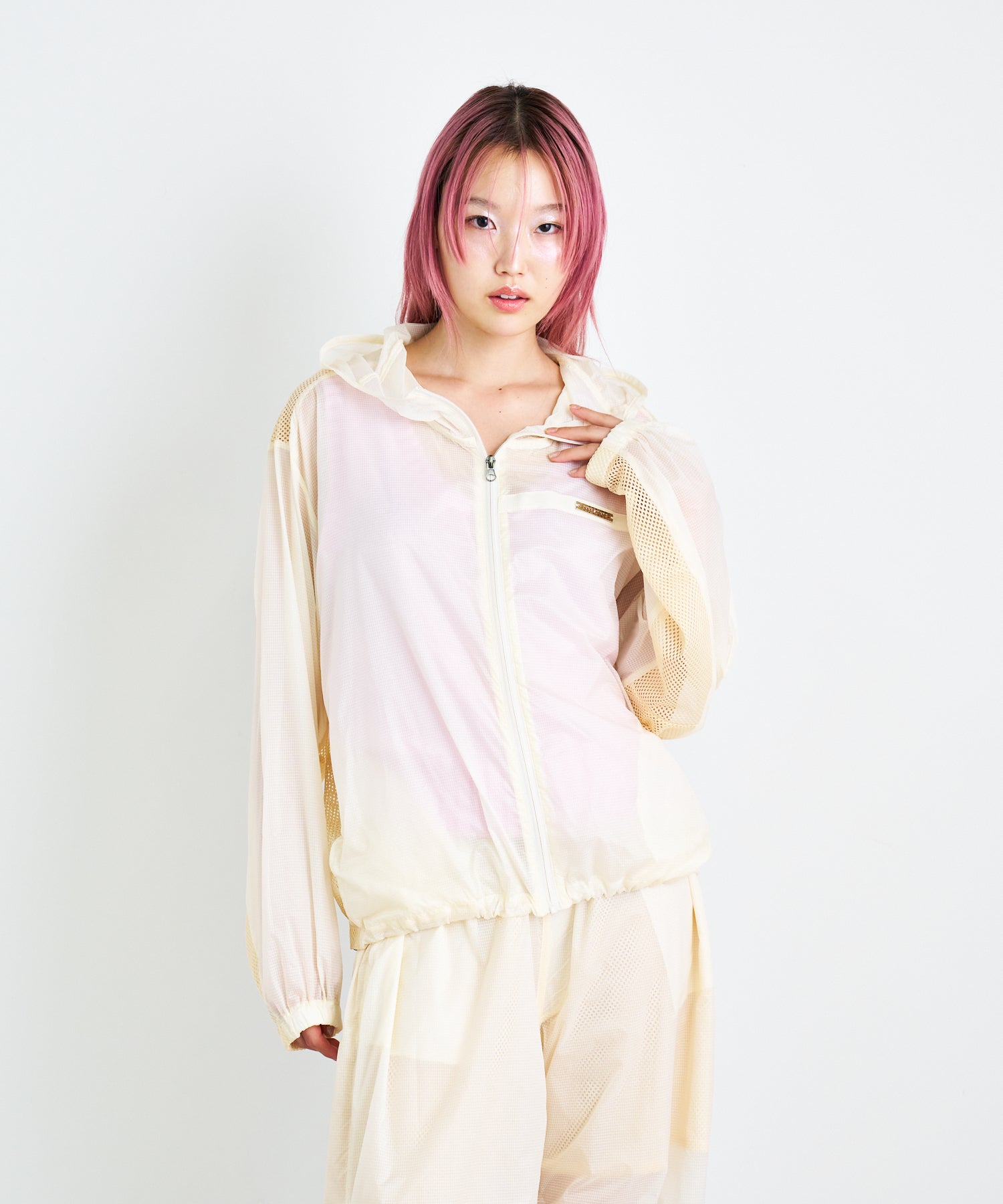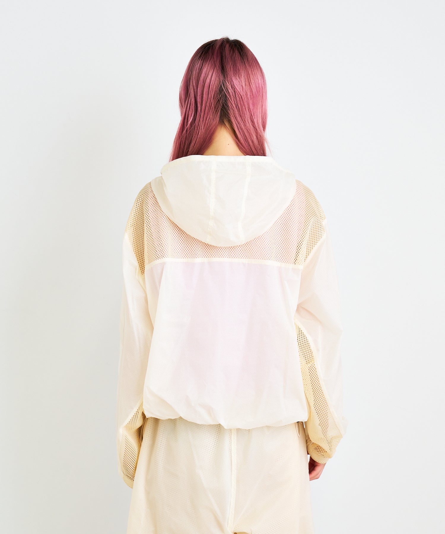 軽量で適度なハリ感と柔らかさを兼ね揃えたシアーリップストップ素材に、通気性の高いメッシュを切り替えた、機能性とデザイン性を兼ね備えた素材使い。アクティブな素材感ながら、シアーならではのエアリーな表情が、ヘルシーで女性らしいバランスを演出します。