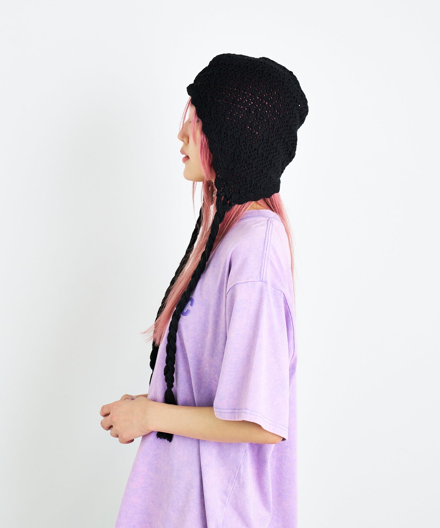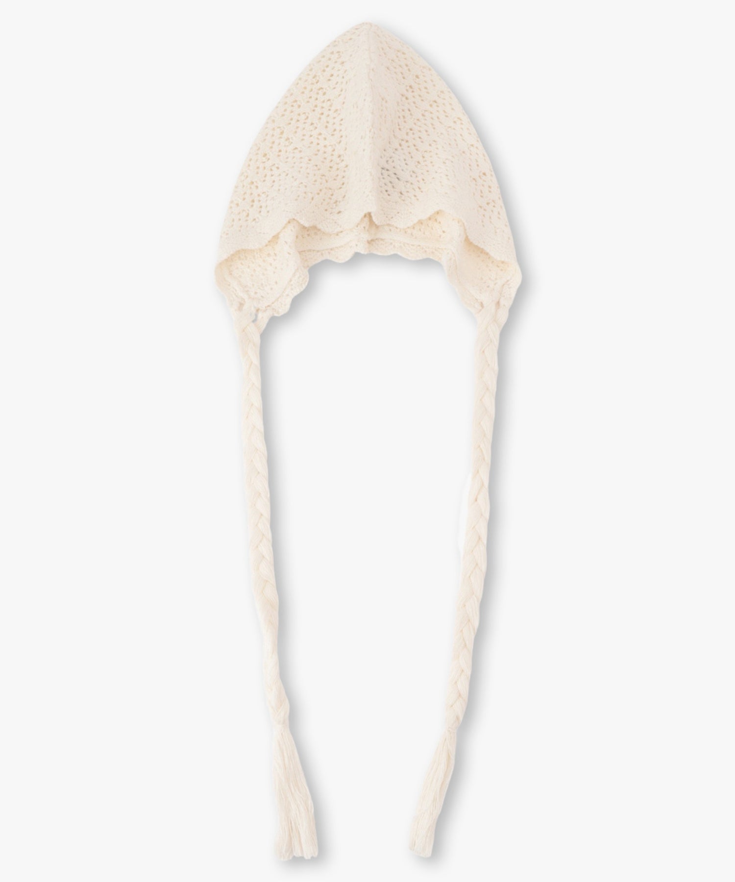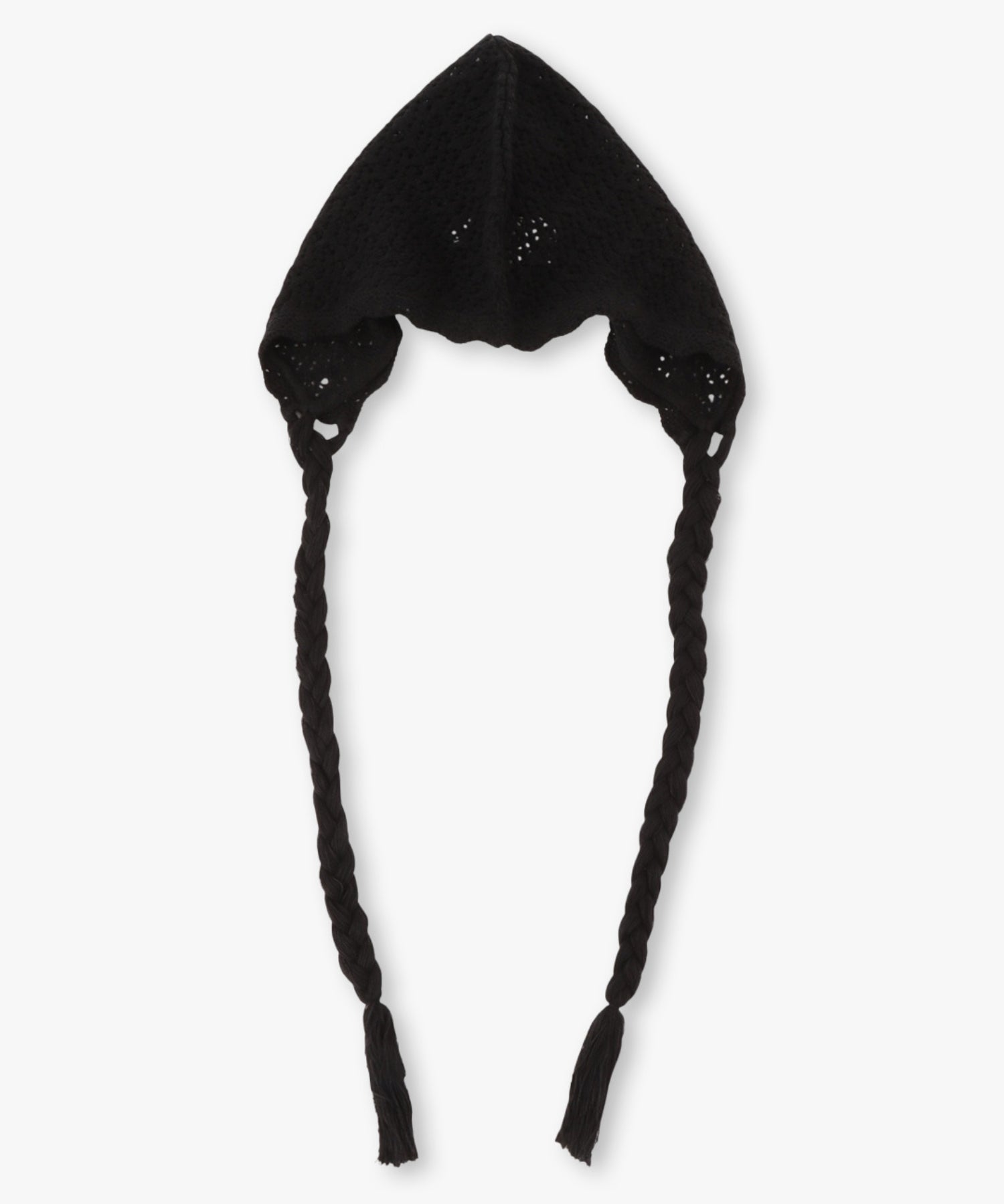 フーディースタイルが新鮮なニットキャップは、クロシェ風の編み地でノスタルジックな雰囲気に。付けフードのような感覚で気軽に取り入れるだけで今年らしいスタイルが完成します。上からキャップを重ねたり、紐部分を結んでフードのように垂らしたり、スタイルによって自由度の高いカスタムをお楽しみください。
