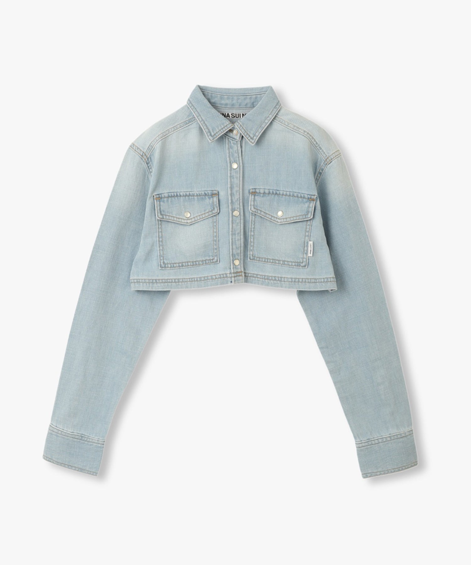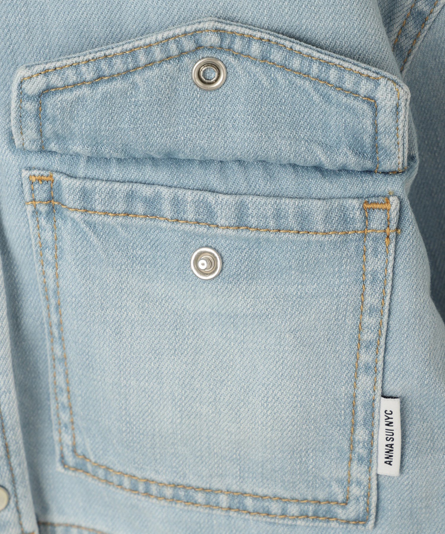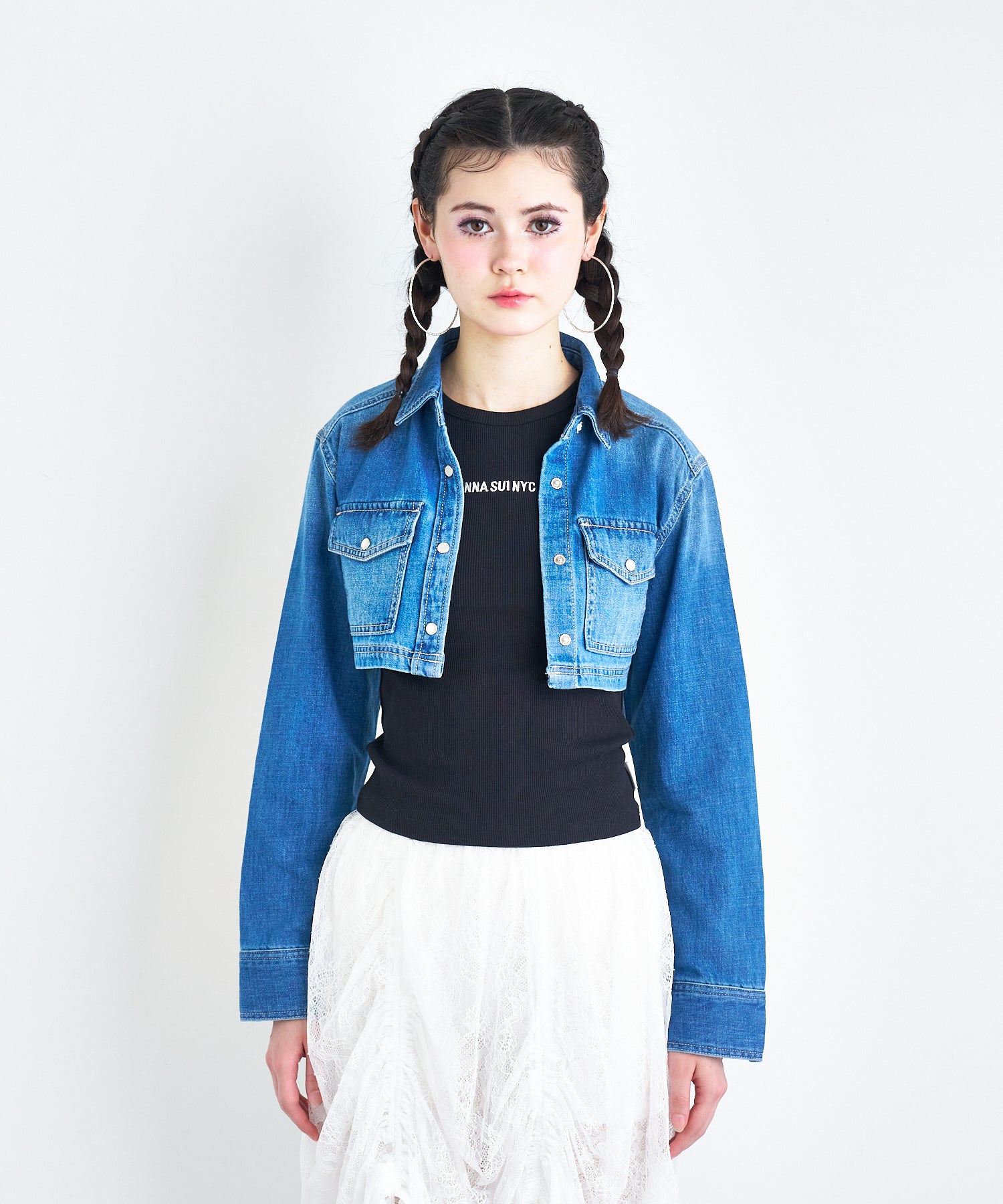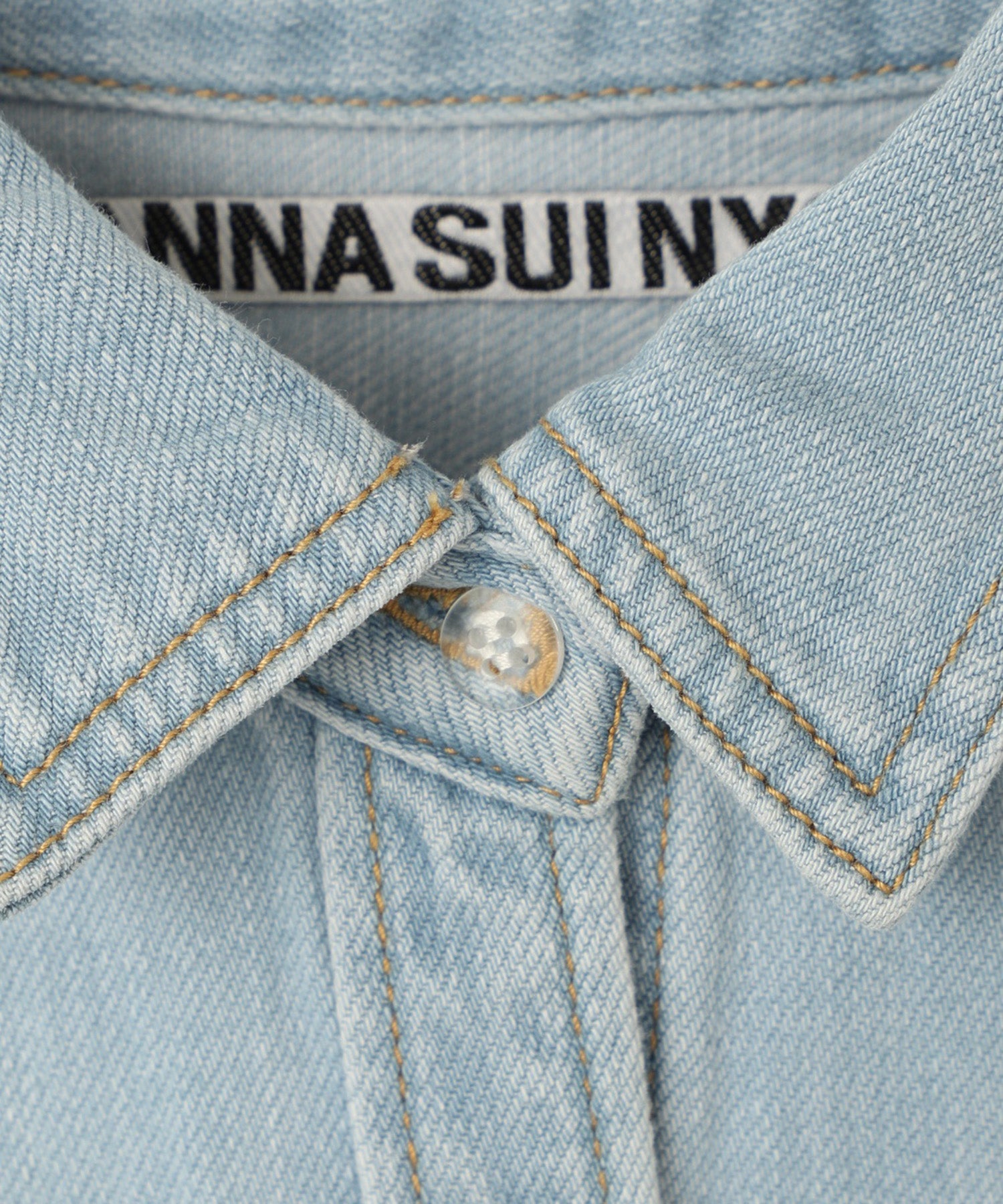 春に大活躍のデニムシャツをコンパクトなサイズ感でANNA SUI NYCらしく作り上げました!着丈も短く脚長効果がありスタイル良く見えること間違いなし。春に1枚は持っておきたいオススメのアイテムです。