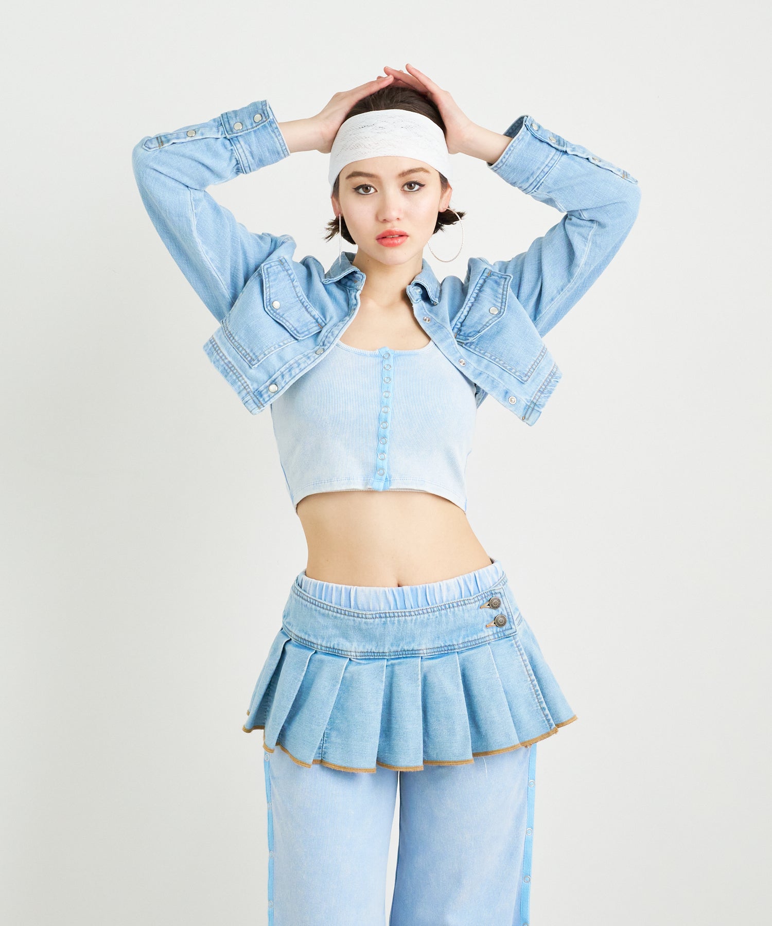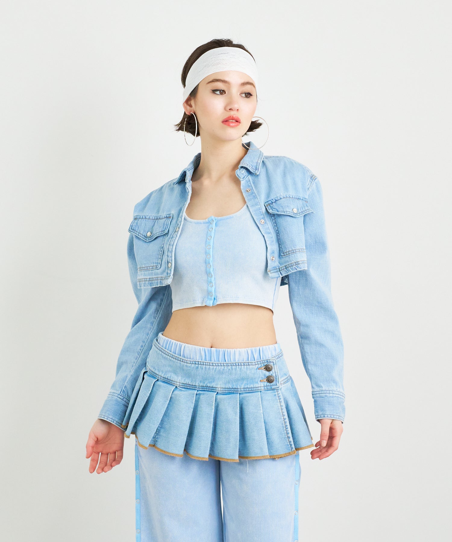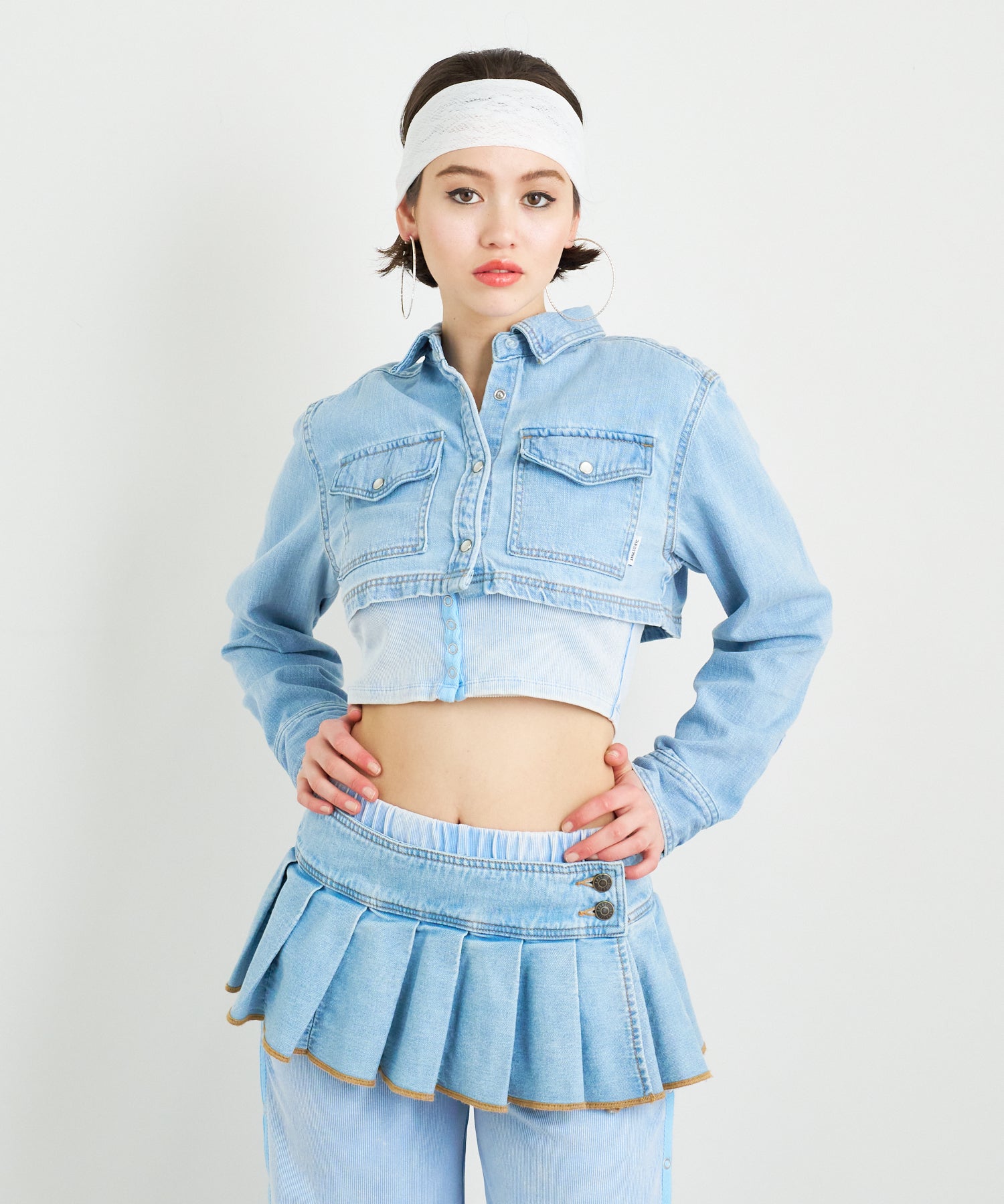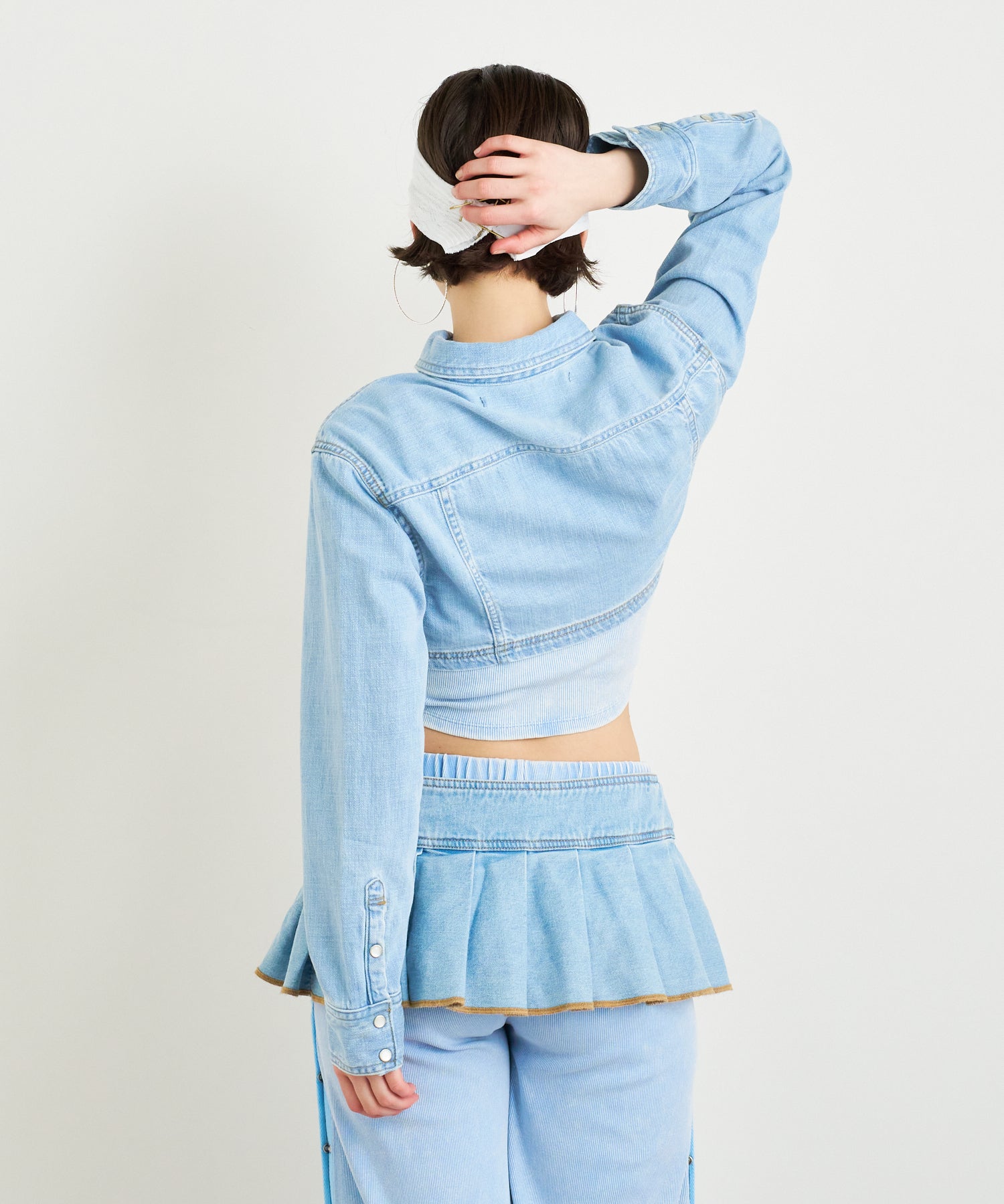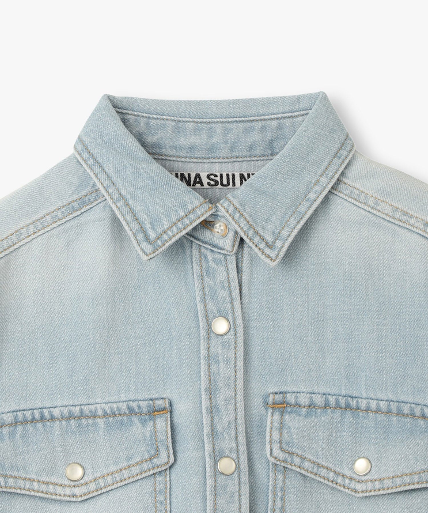 春に大活躍のデニムシャツをコンパクトなサイズ感でANNA SUI NYCらしく作り上げました!着丈も短く脚長効果がありスタイル良く見えること間違いなし。春に1枚は持っておきたいオススメのアイテムです。