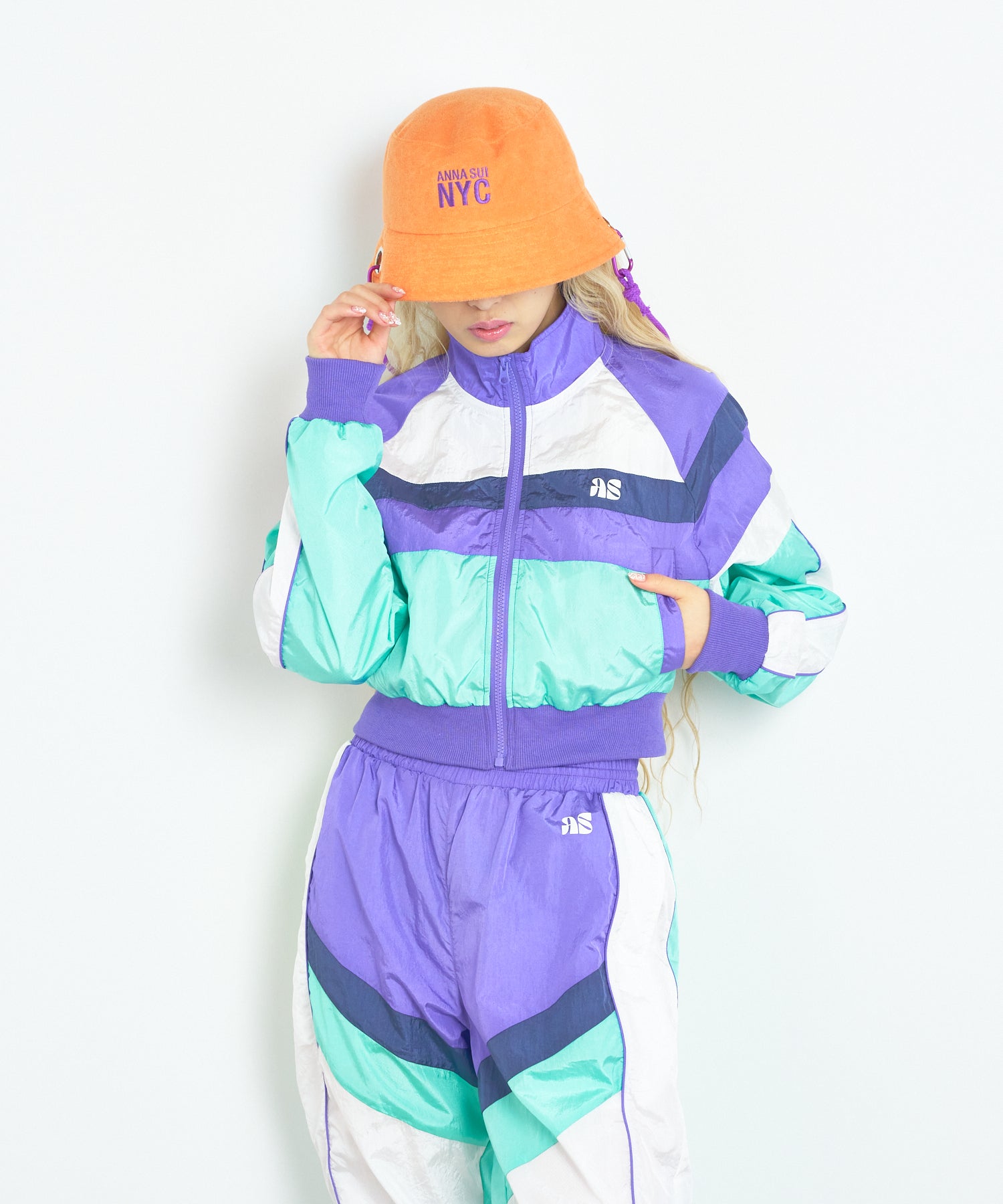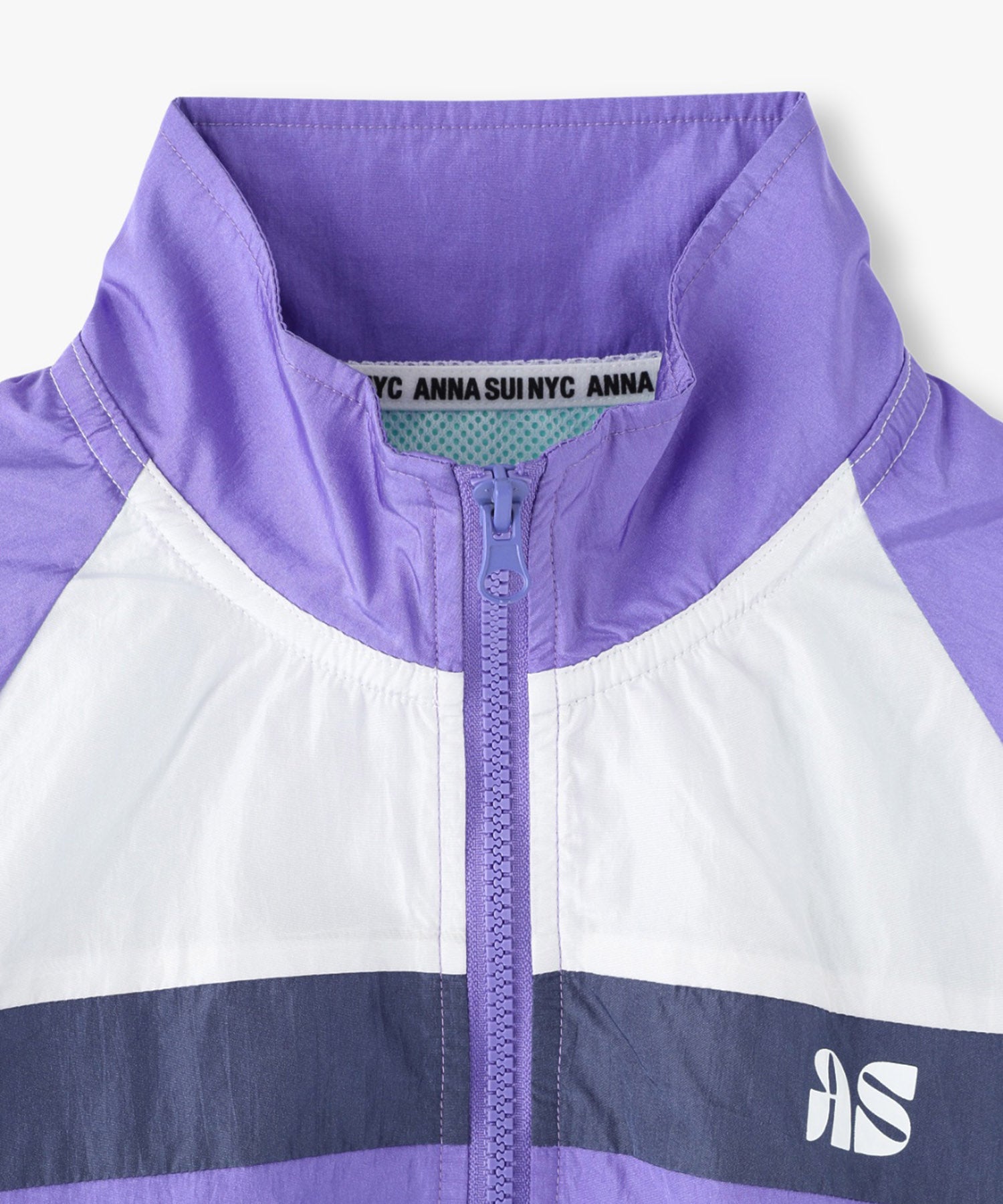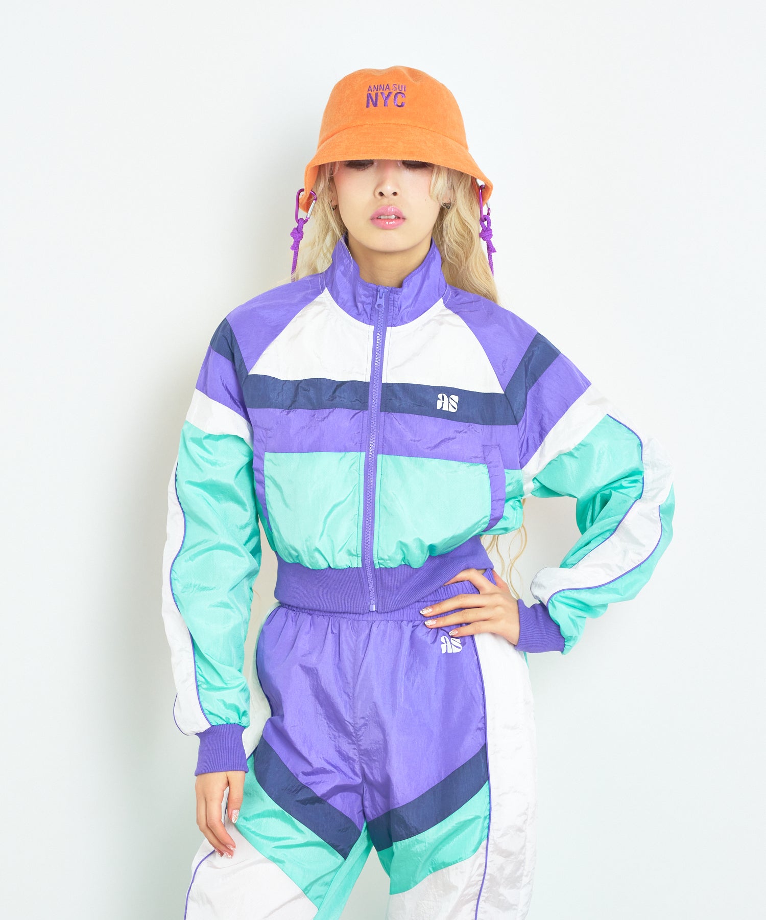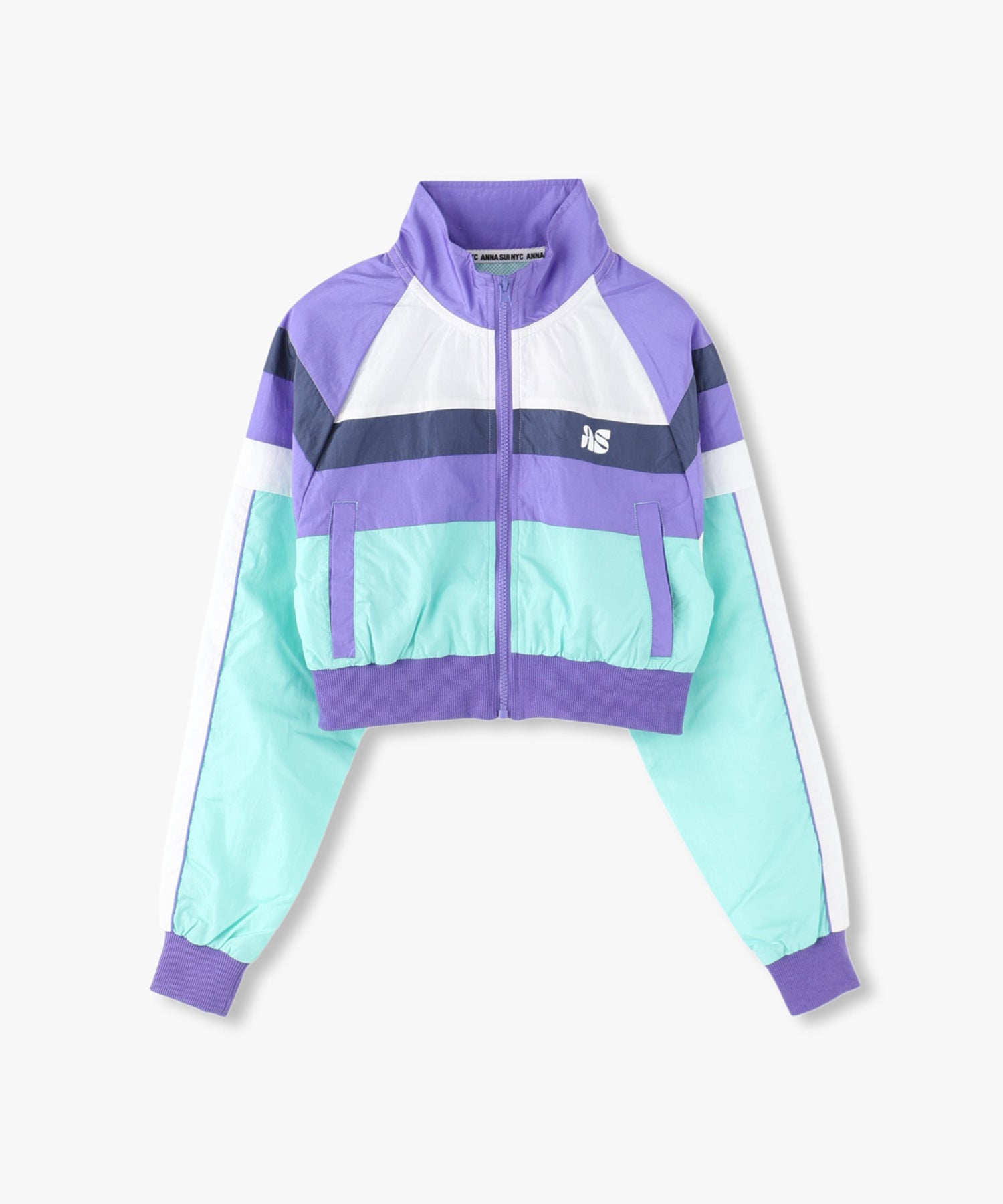 80年代のバイカージャケットをソースにANNA SUI NYCらしいデザインに落とし込んだバイカージャンパー。とても軽いシャカシャカ素材で配色が目を引く今季自慢のアイテムです!ショート丈で脚長効果抜群なジャンパーになっています。