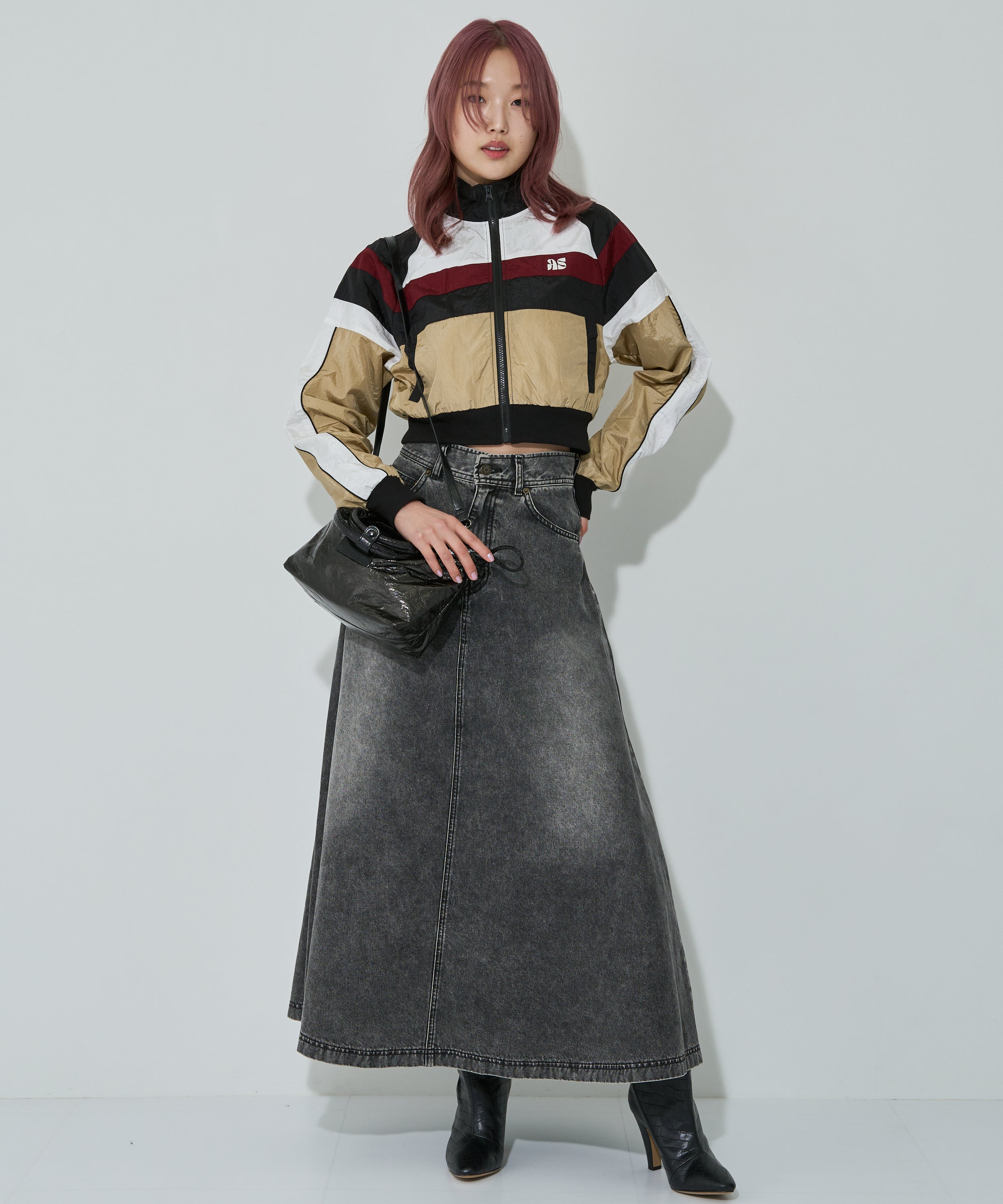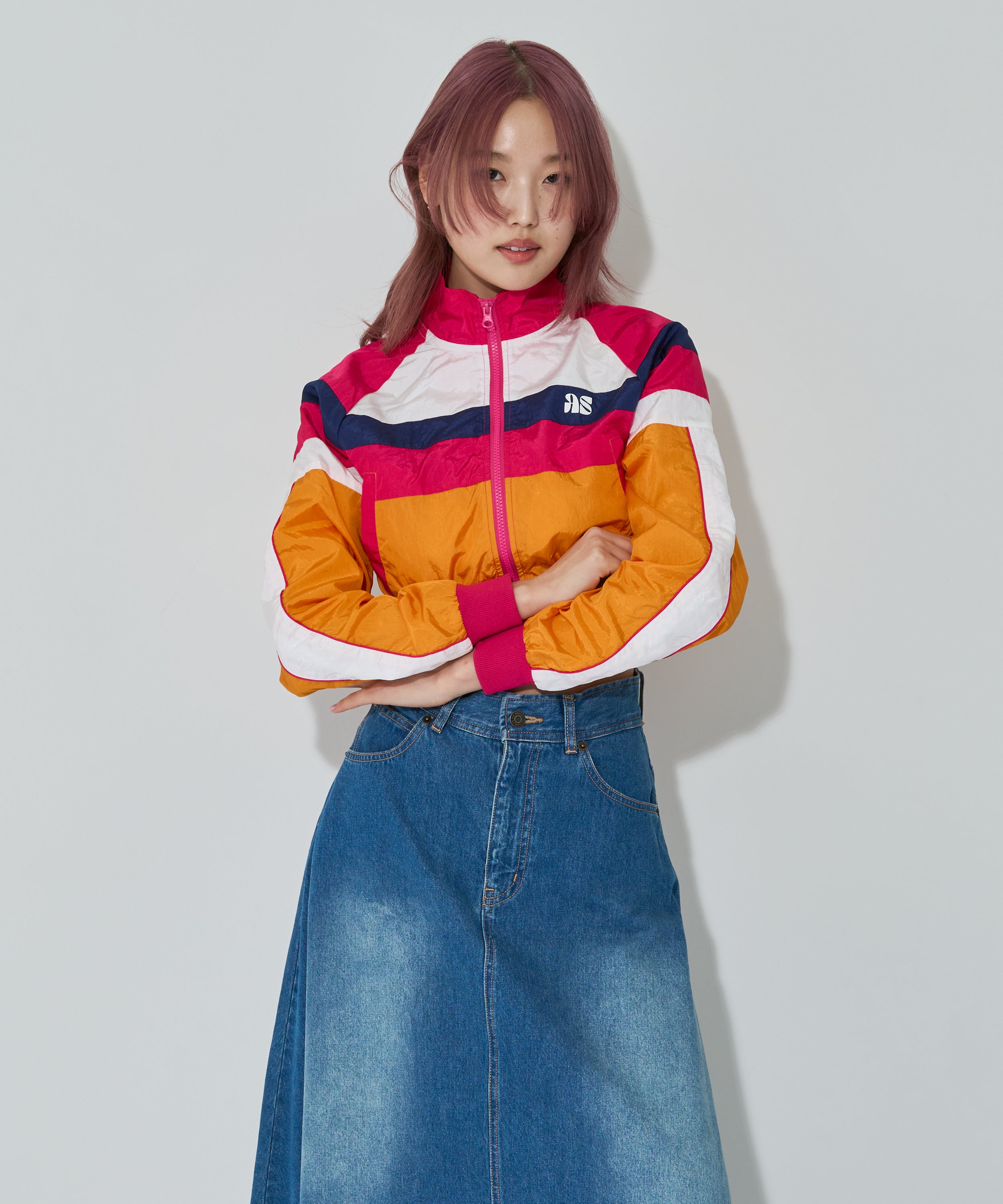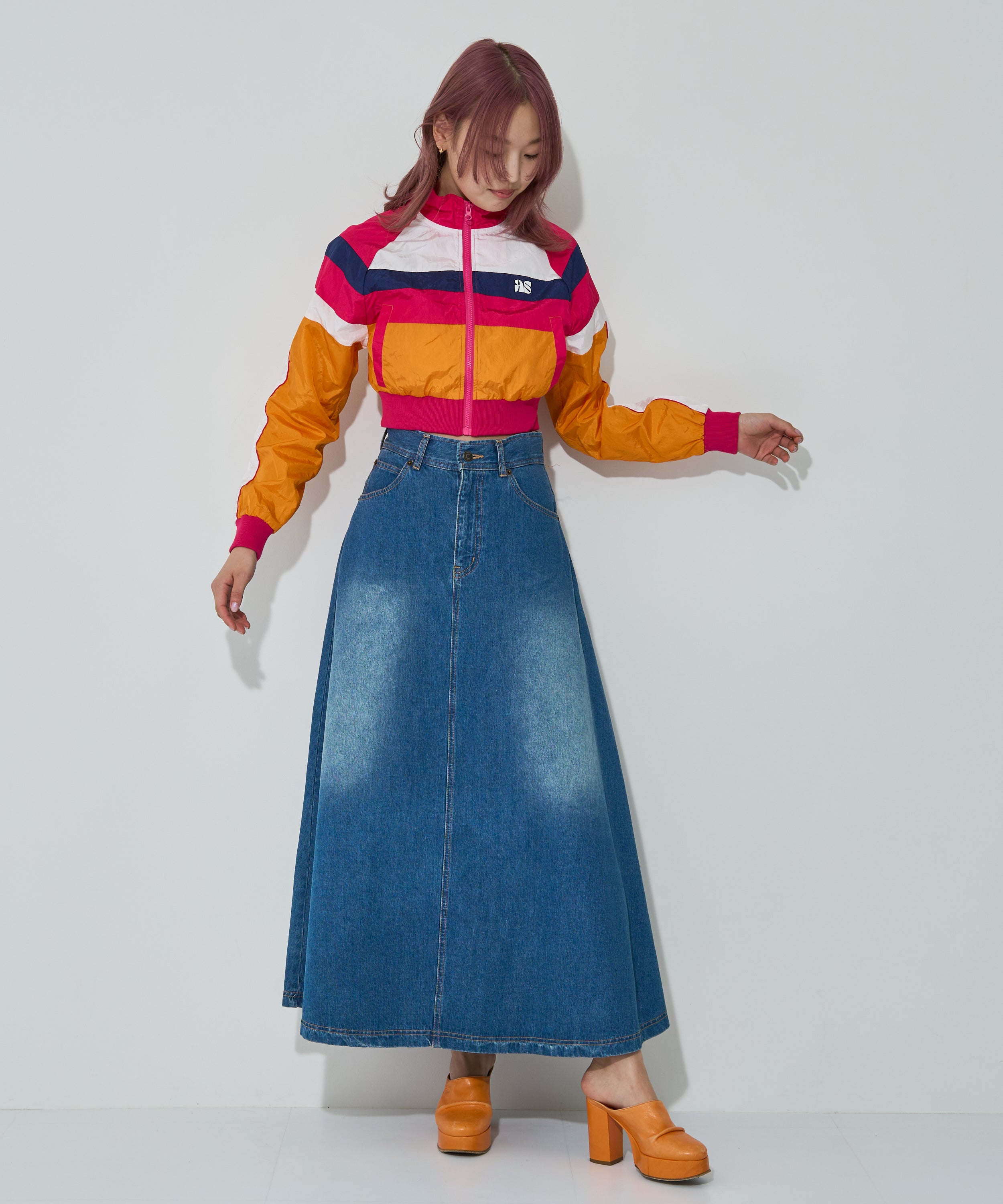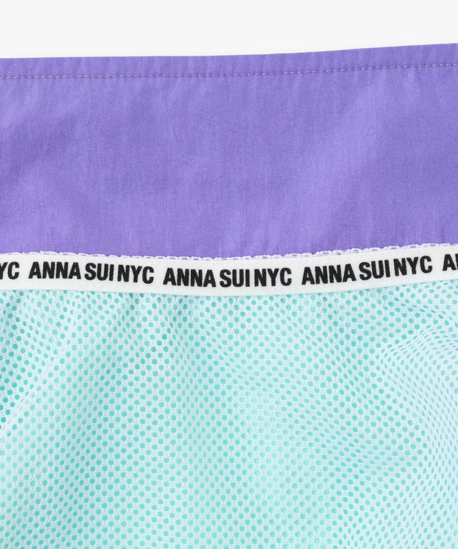 80年代のバイカージャケットをソースにANNA SUI NYCらしいデザインに落とし込んだバイカージャンパー。とても軽いシャカシャカ素材で配色が目を引く今季自慢のアイテムです!ショート丈で脚長効果抜群なジャンパーになっています。