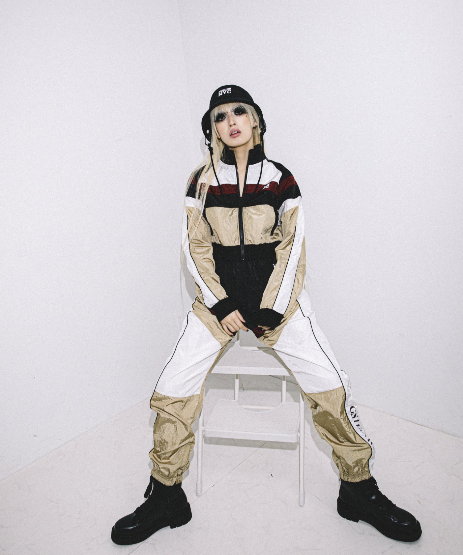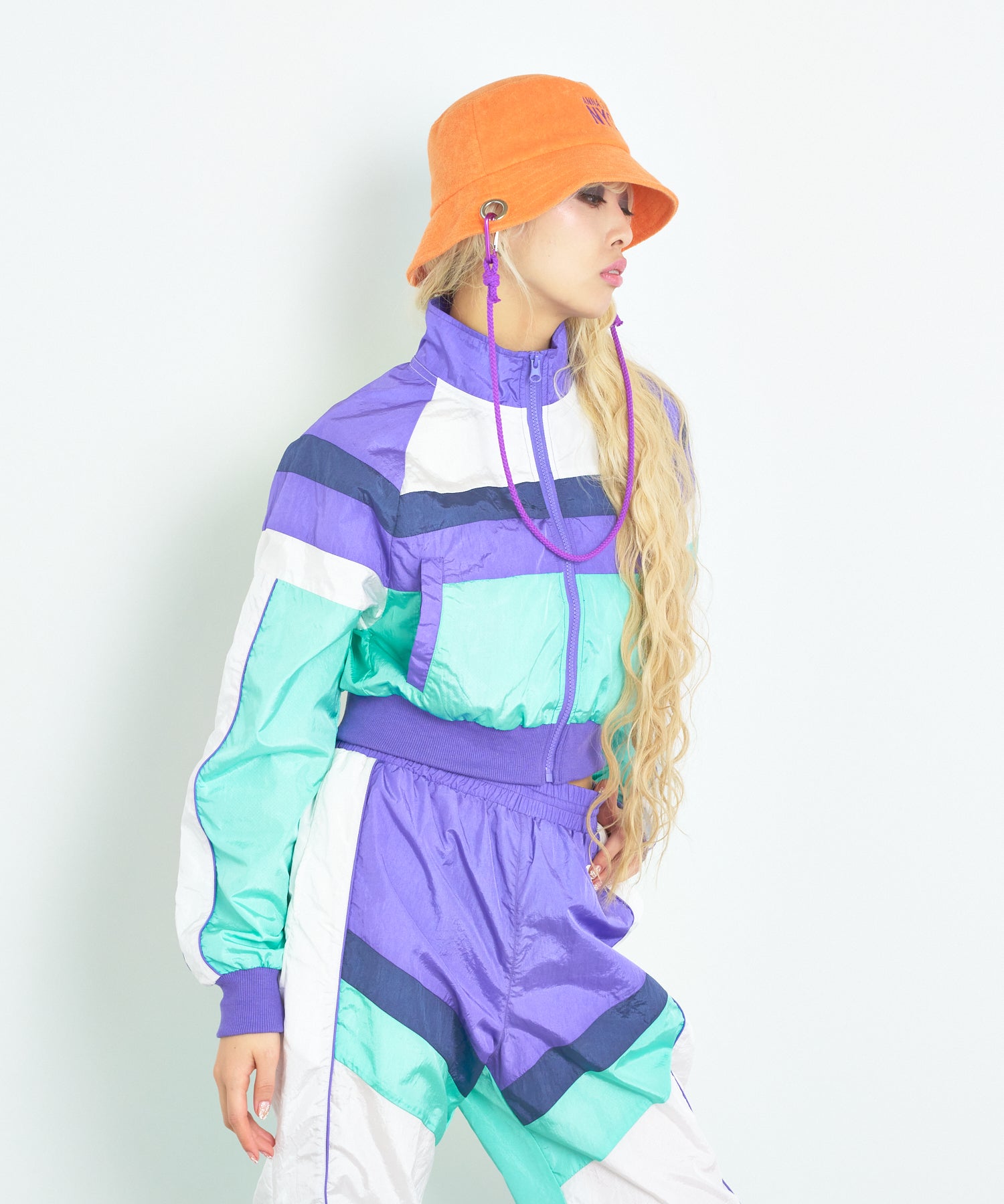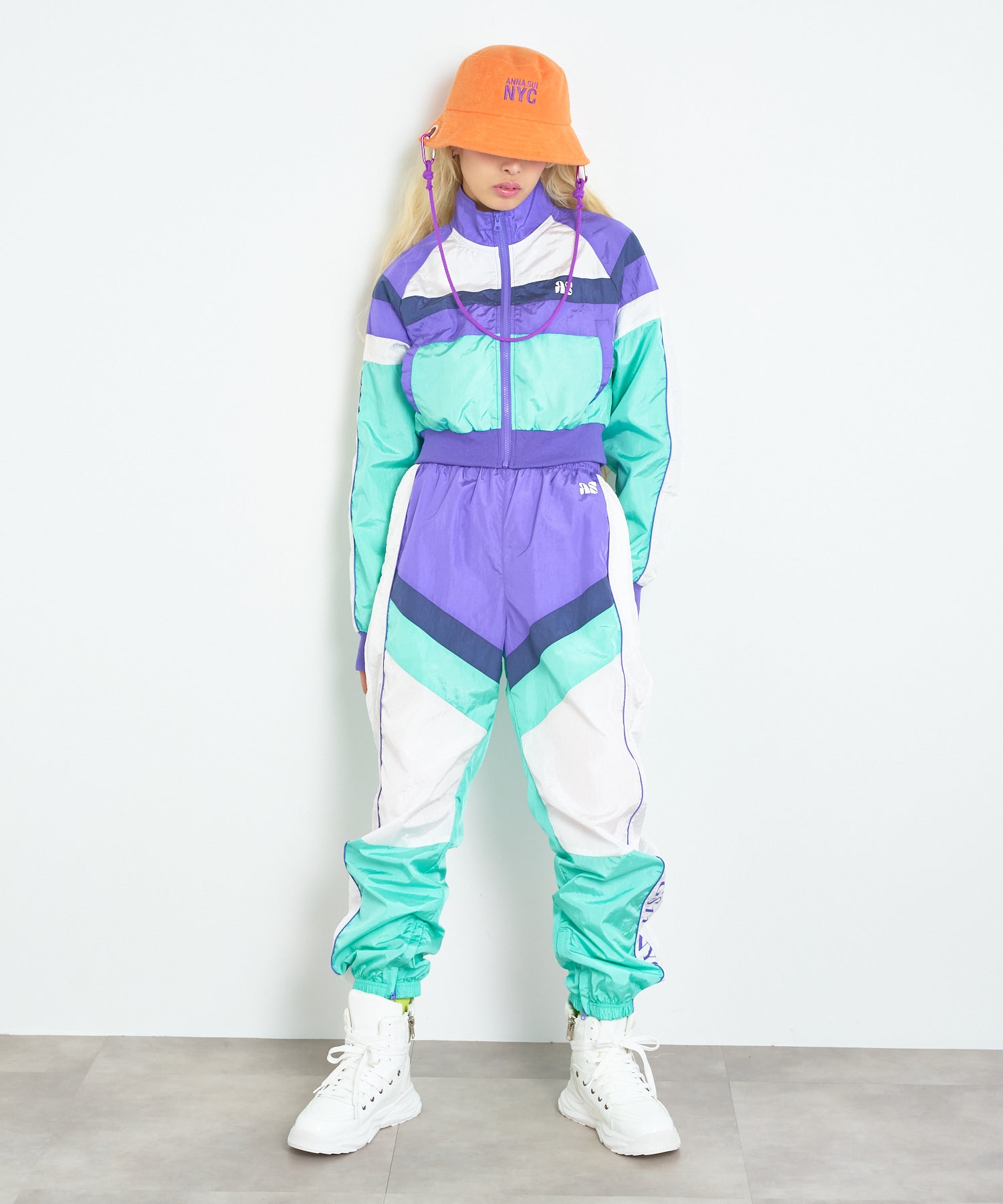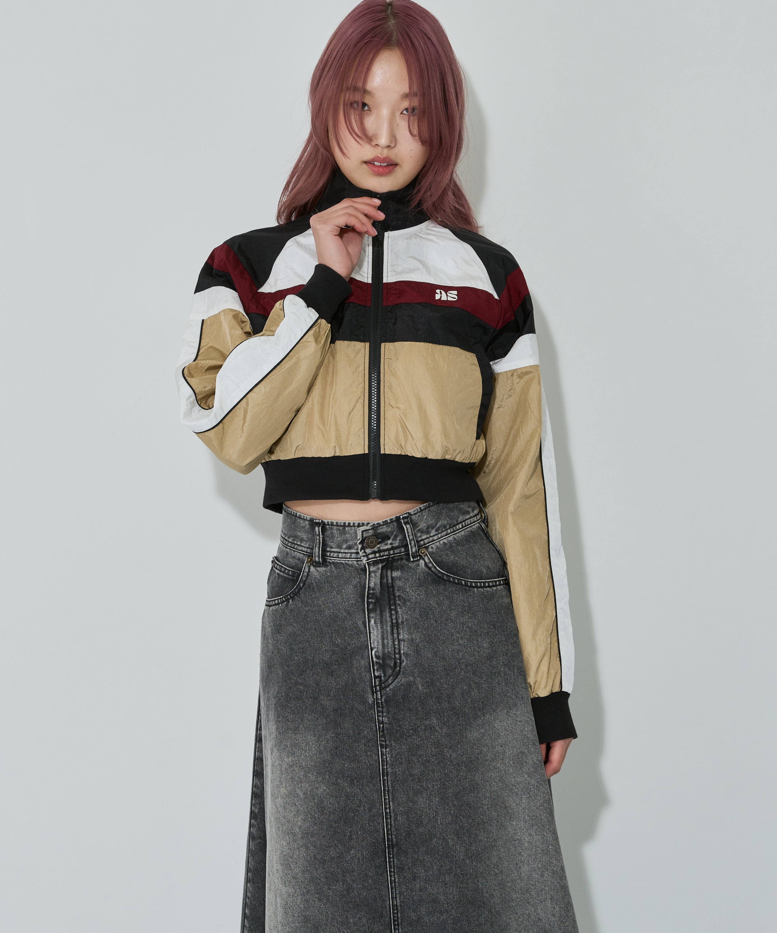 80年代のバイカージャケットをソースにANNA SUI NYCらしいデザインに落とし込んだバイカージャンパー。とても軽いシャカシャカ素材で配色が目を引く今季自慢のアイテムです!ショート丈で脚長効果抜群なジャンパーになっています。
