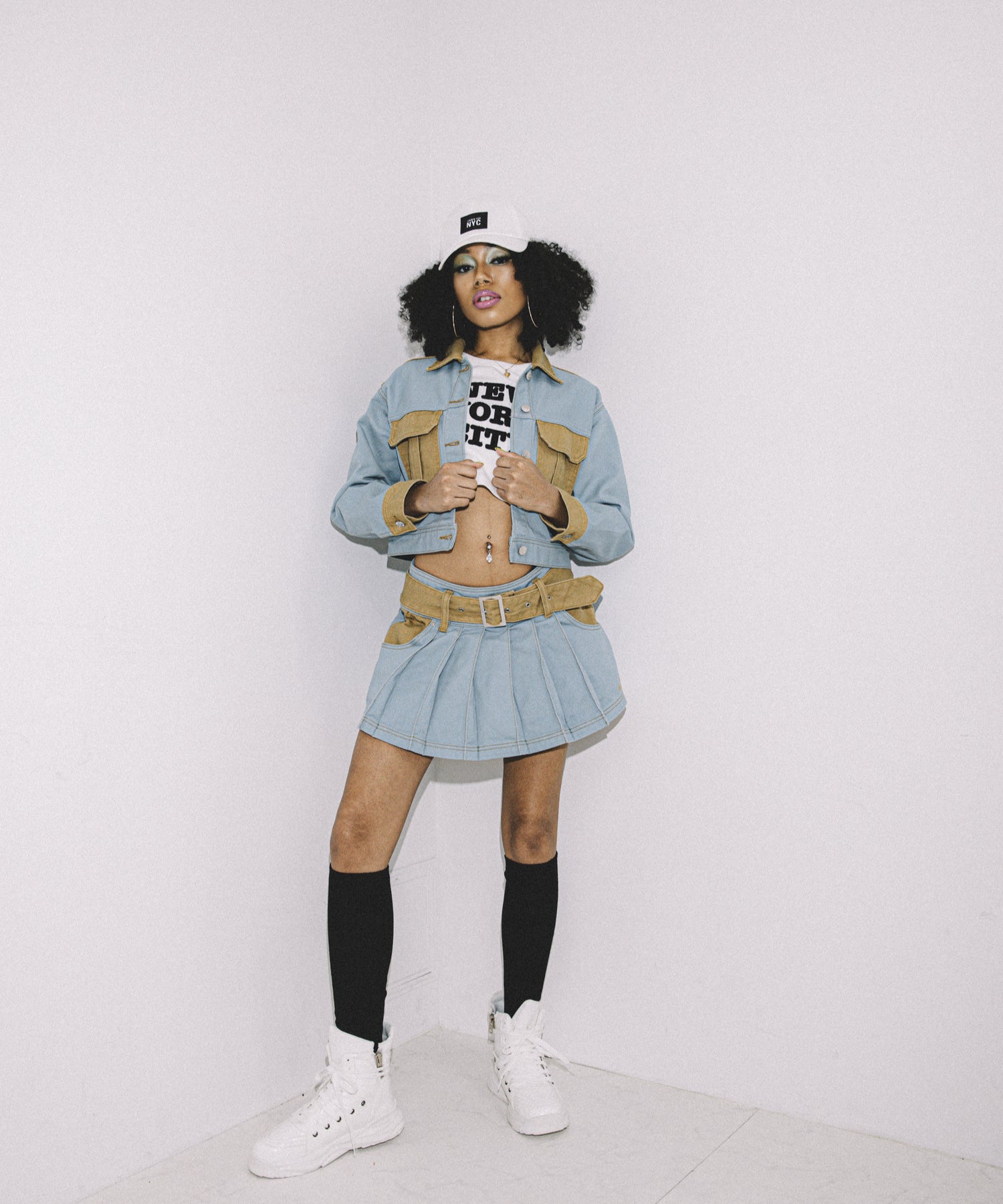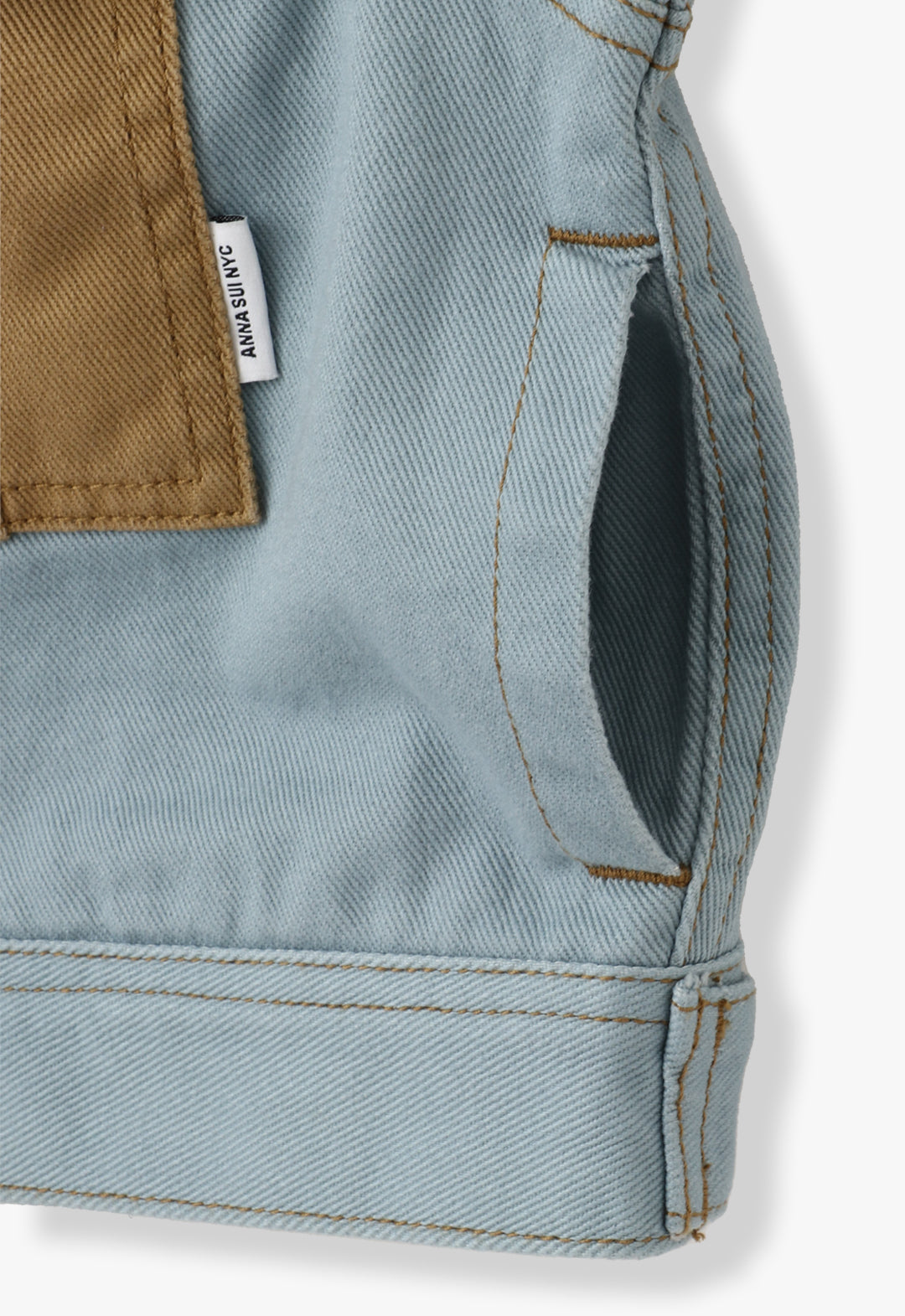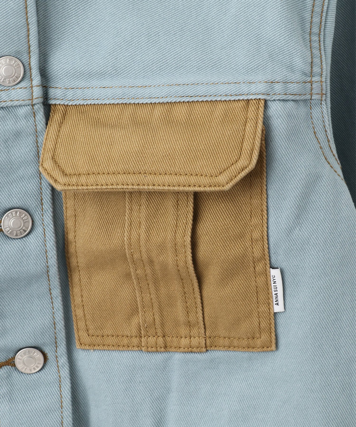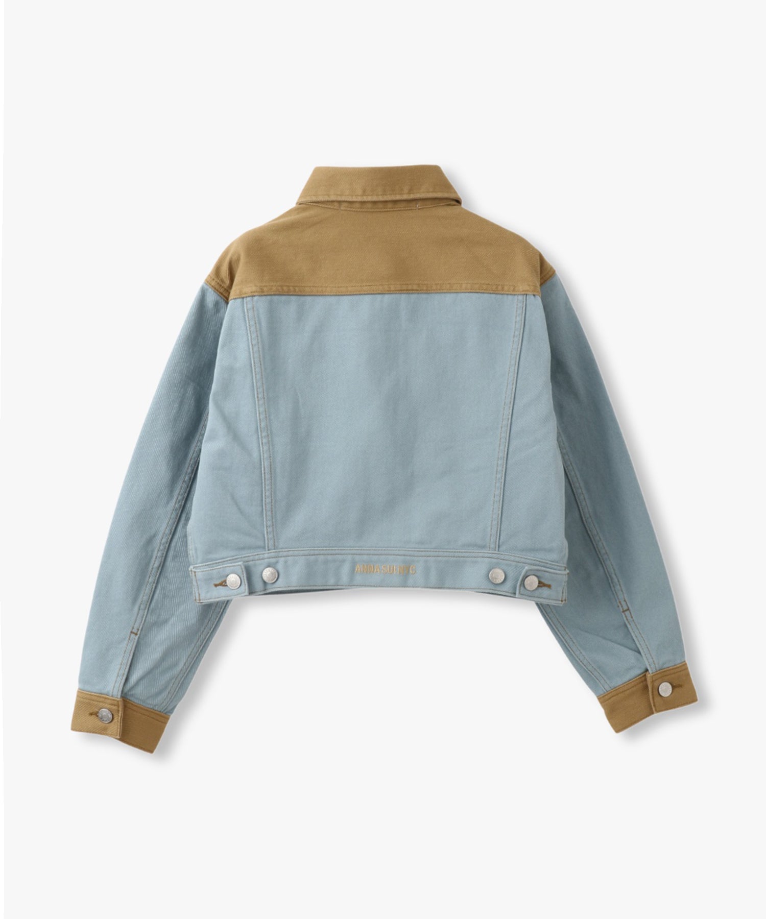 バイカラーが可愛いツイルジャケット。厚みのあるしっかりとした生地で季節の変わり目の羽織りにも大活躍!カーペンターをイメージした大きめのポケットもあり、実用性もバッチリです。同素材のスカートとセットアップでY2Kスタイルもお楽しみいただけます。