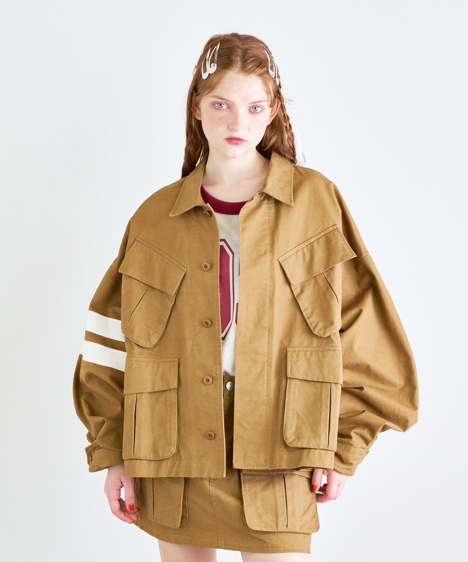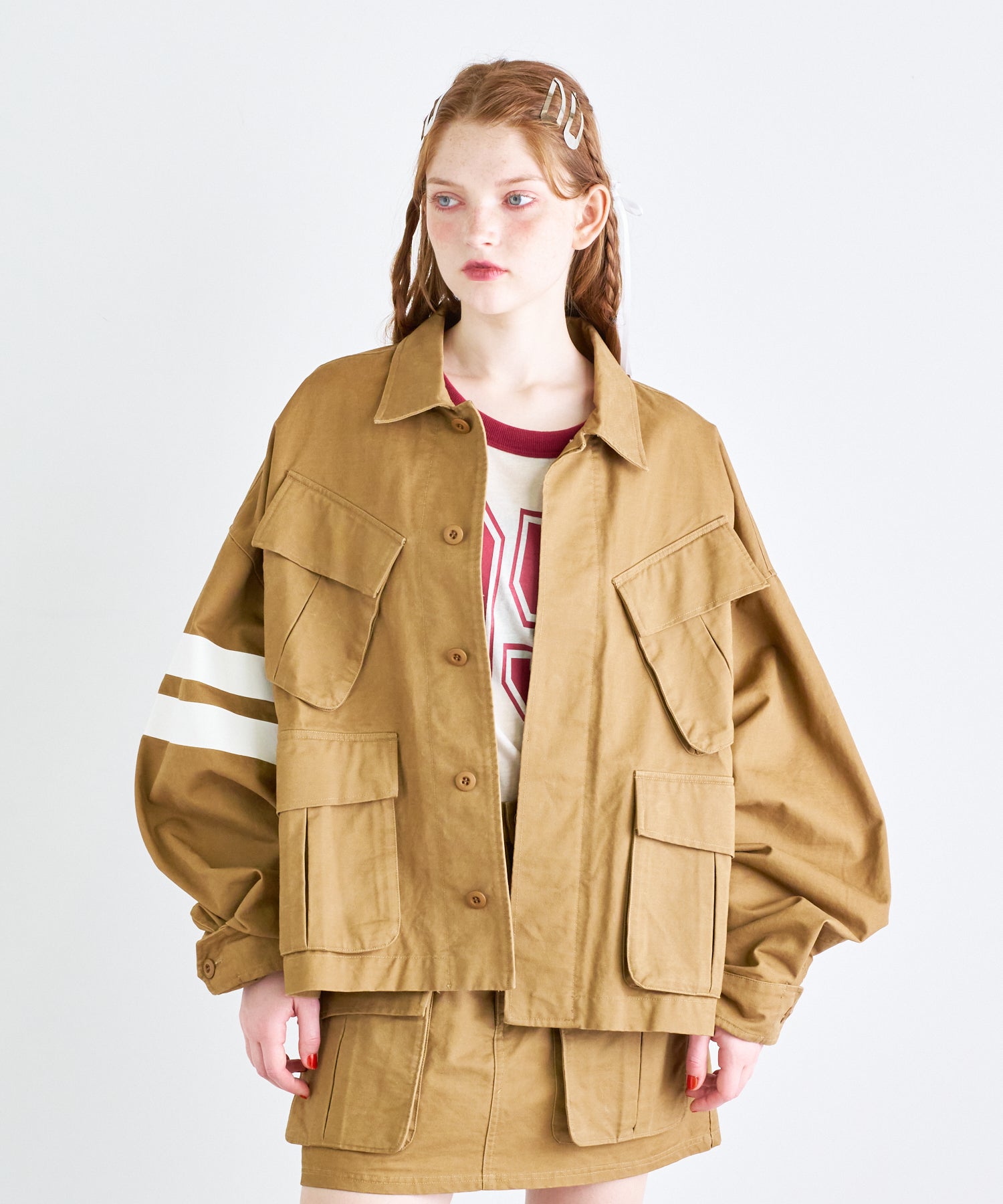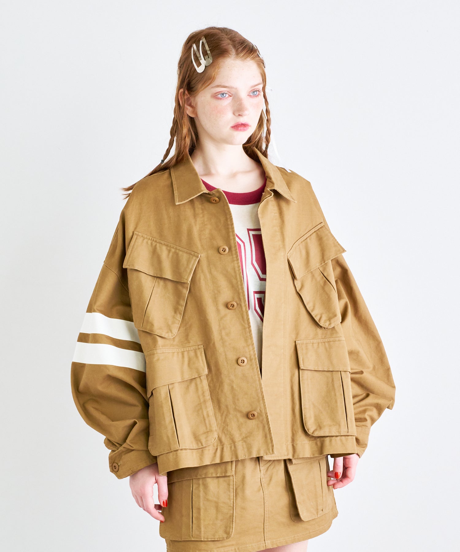 実在したミリタリーウェアをデザインソースに仕上げた、ヴィンテージライクミリタリージャケット。4つも配置された機能的なポケットかつオーバーサイズなシルエットが、ユニセックス問わず楽しめる今期イチオシのアイテムです。セットアップで、"ヴィンテージライクインナーパンツスカート"と一緒にスタイリングするのもオススメです。