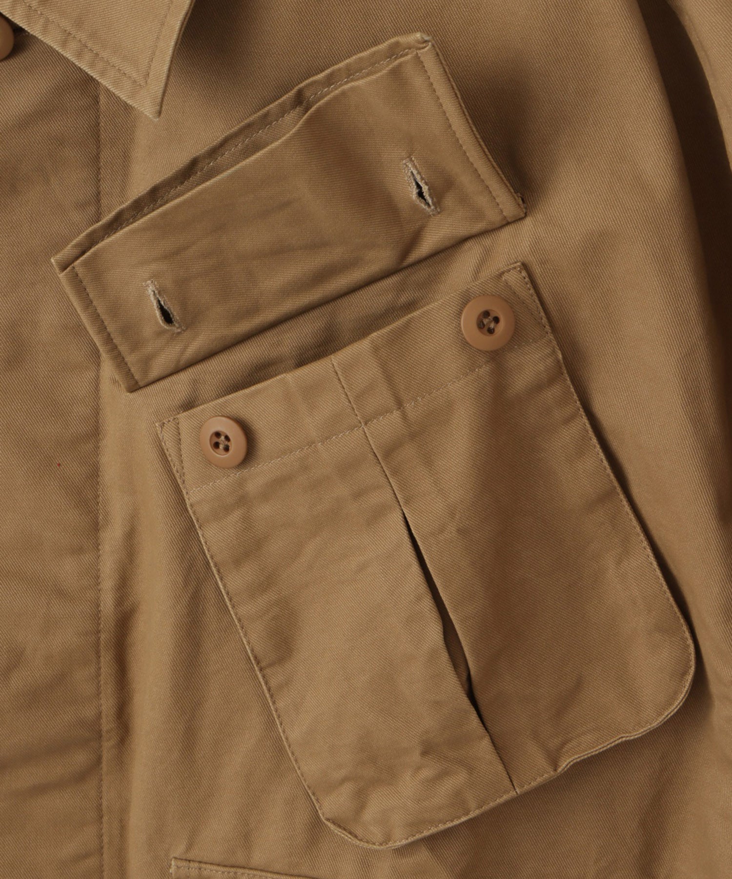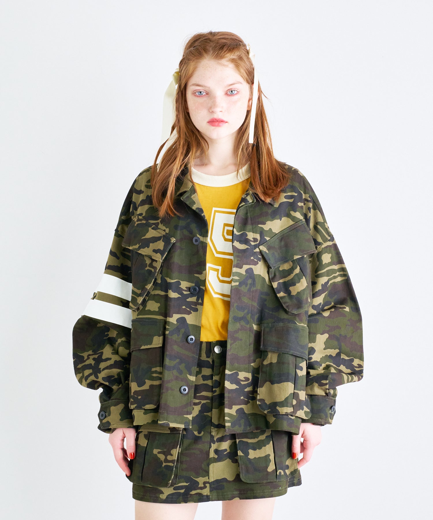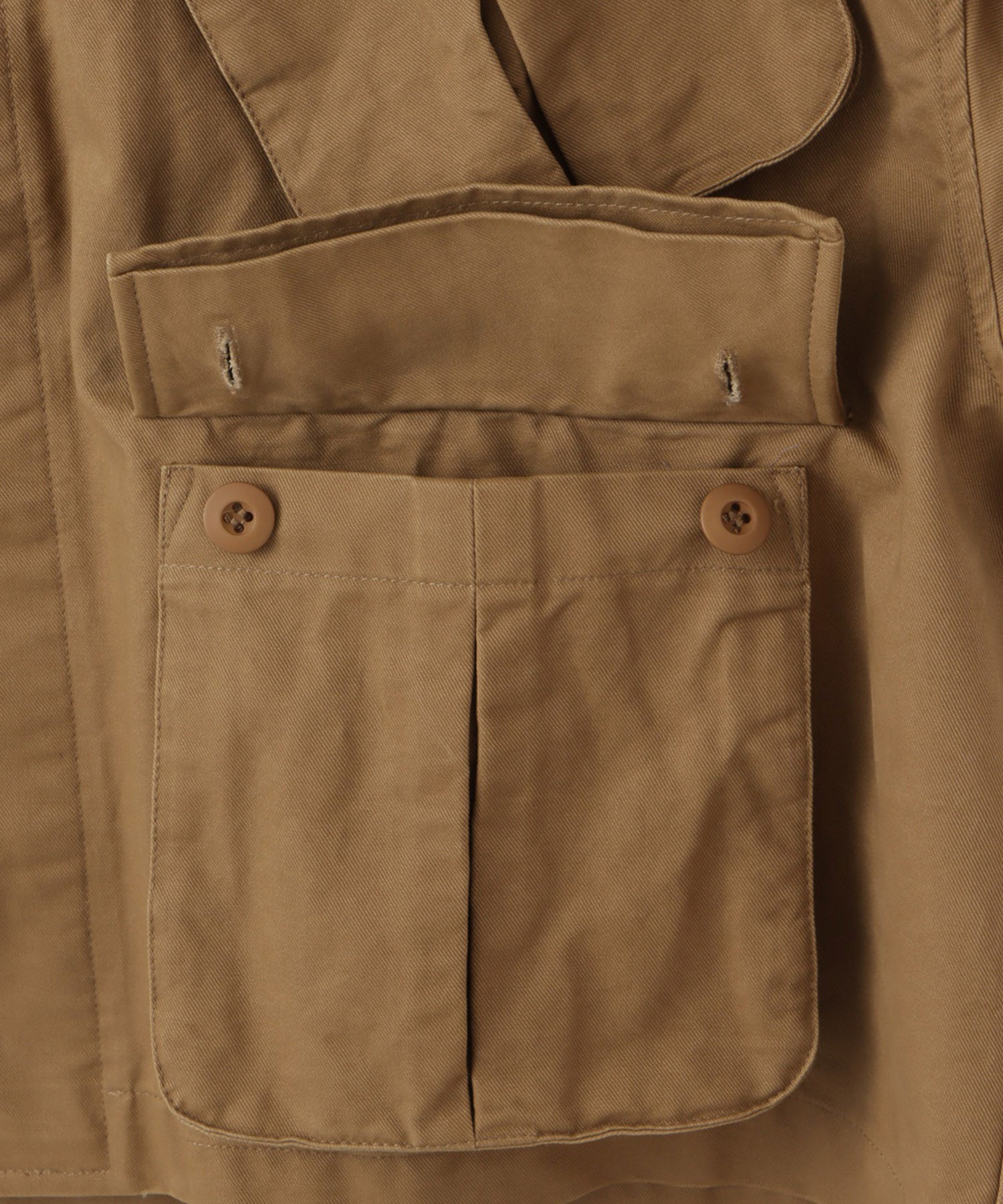 実在したミリタリーウェアをデザインソースに仕上げた、ヴィンテージライクミリタリージャケット。4つも配置された機能的なポケットかつオーバーサイズなシルエットが、ユニセックス問わず楽しめる今期イチオシのアイテムです。セットアップで、"ヴィンテージライクインナーパンツスカート"と一緒にスタイリングするのもオススメです。