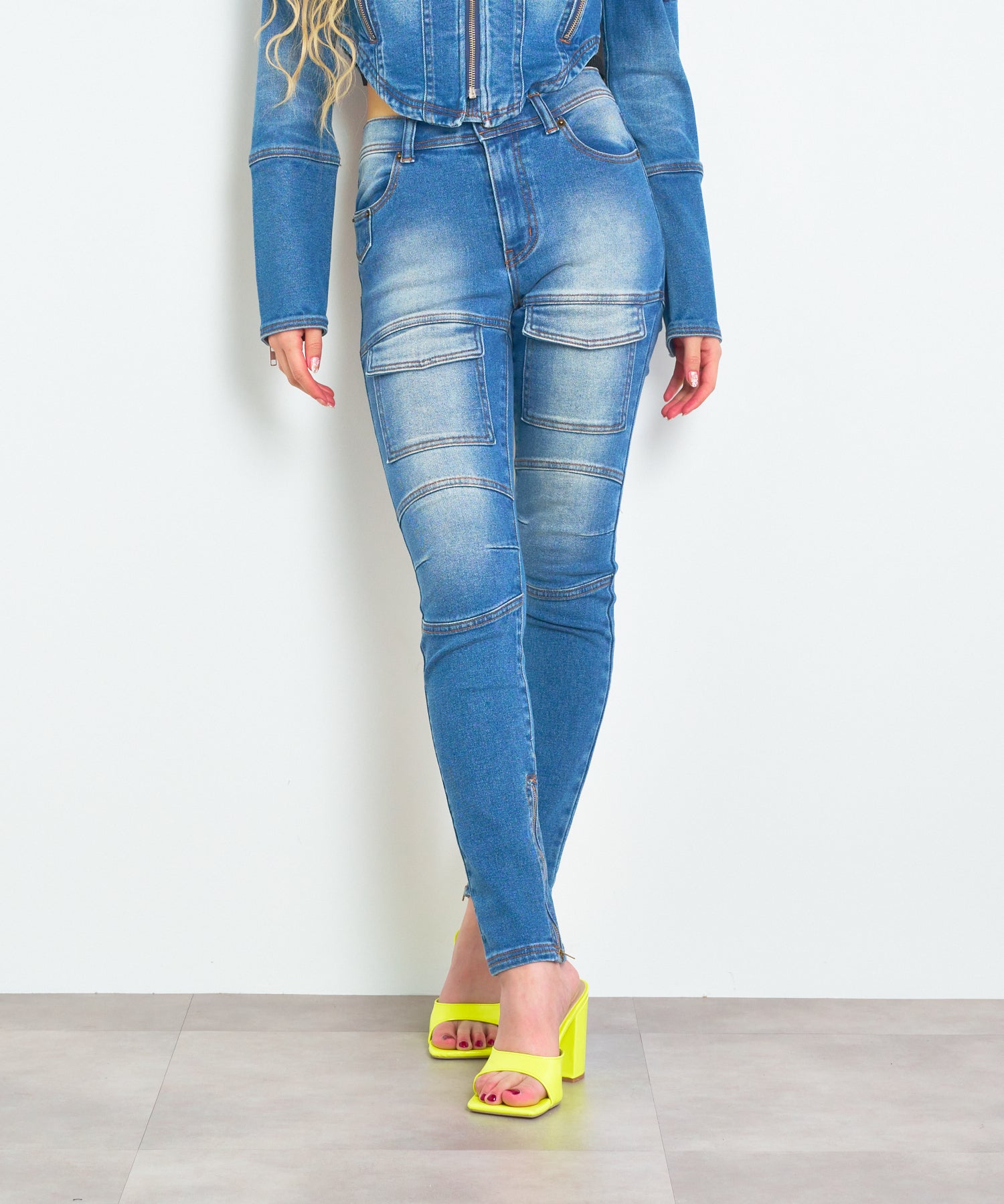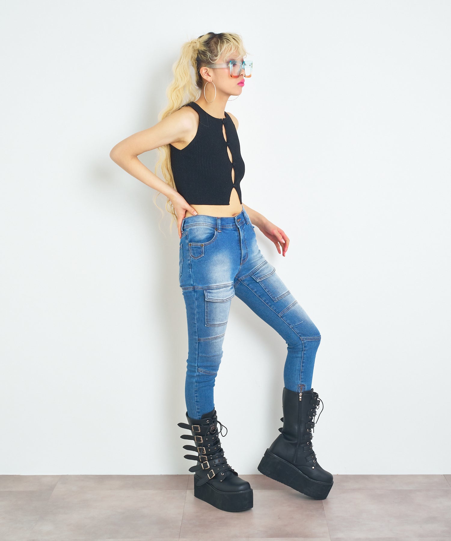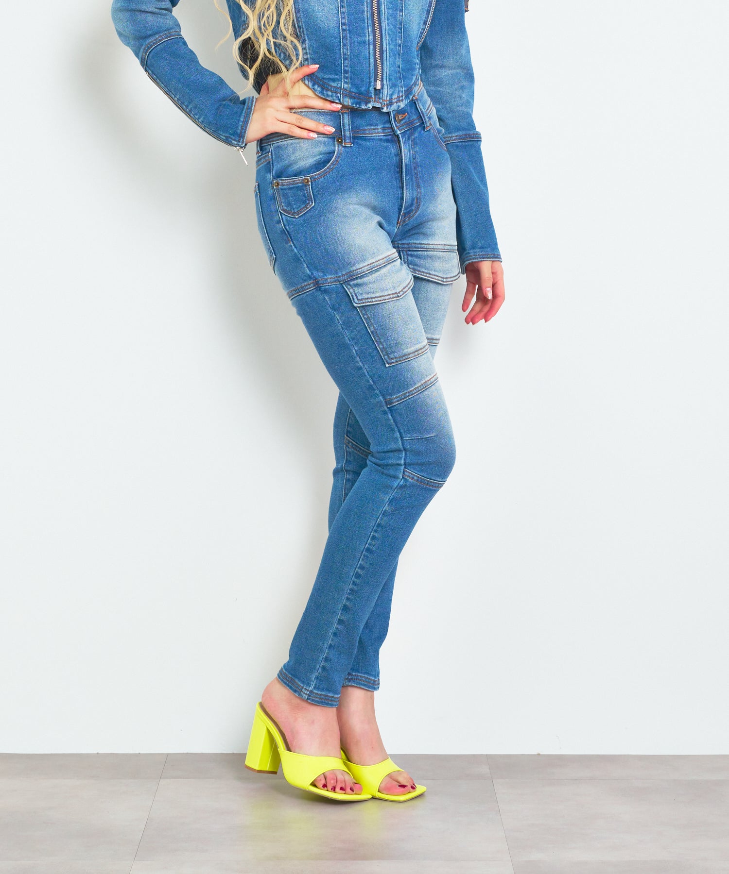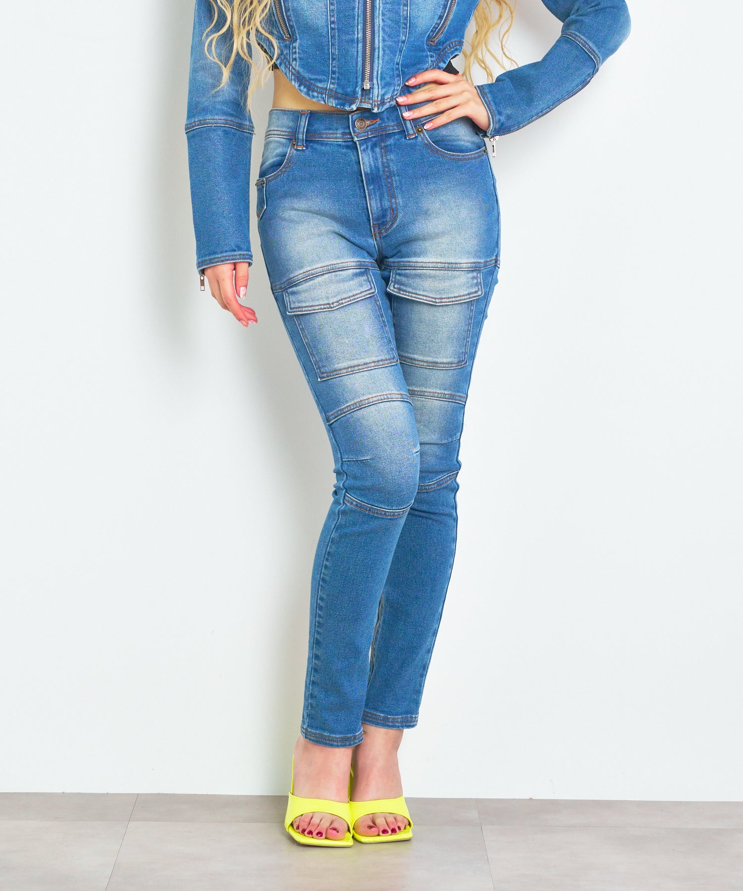 切り替えデザインがポイントのデニムパンツ。内裾についたファスナーを開閉することで裾のデザインを変えられるので、合わせるシューズや気分に合わせてシルエットの変化をお楽しみいただけます。