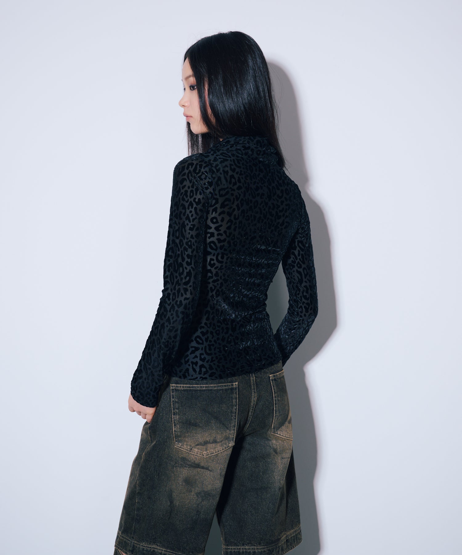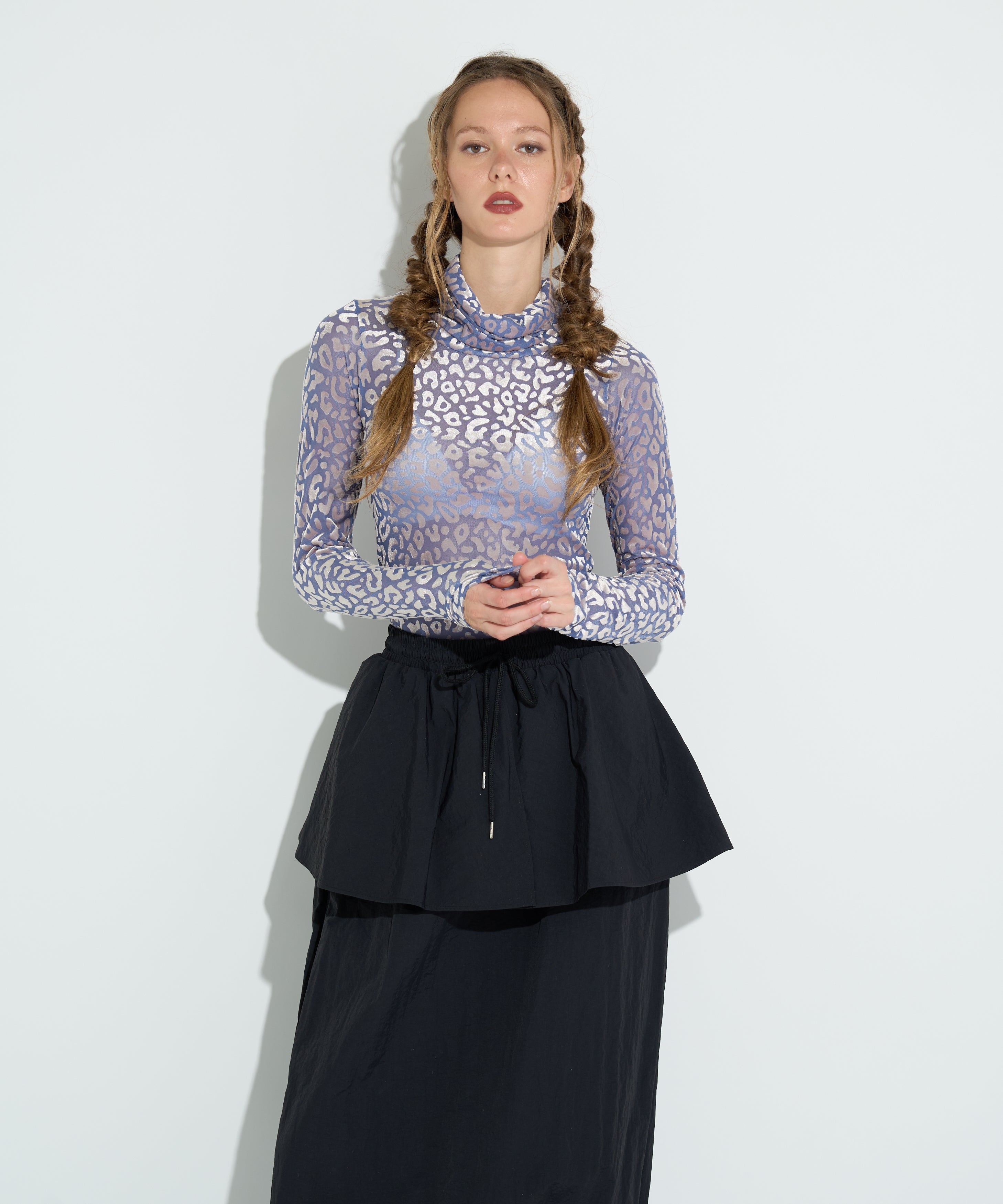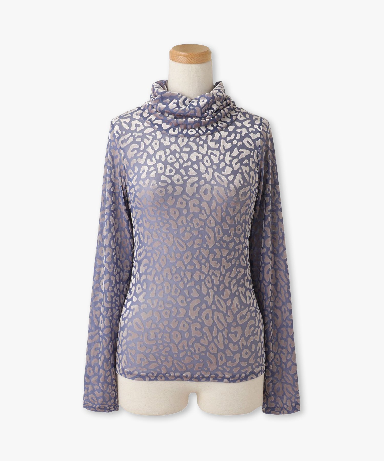 トレンド感のあるレオパード柄が目を惹くシアータートルネックトップス。フィット感のあるシルエットと伸縮性のある素材で、快適な着心地とすっきりとしたラインを叶えます。ハイネックのデザインがシーズンムードを高めつつ、ジャケットやカーディガンのインナーとしても映える存在感。カラーは、柔らかな雰囲気のBLUE、シックで大人っぽいBLACKの2色展開です。