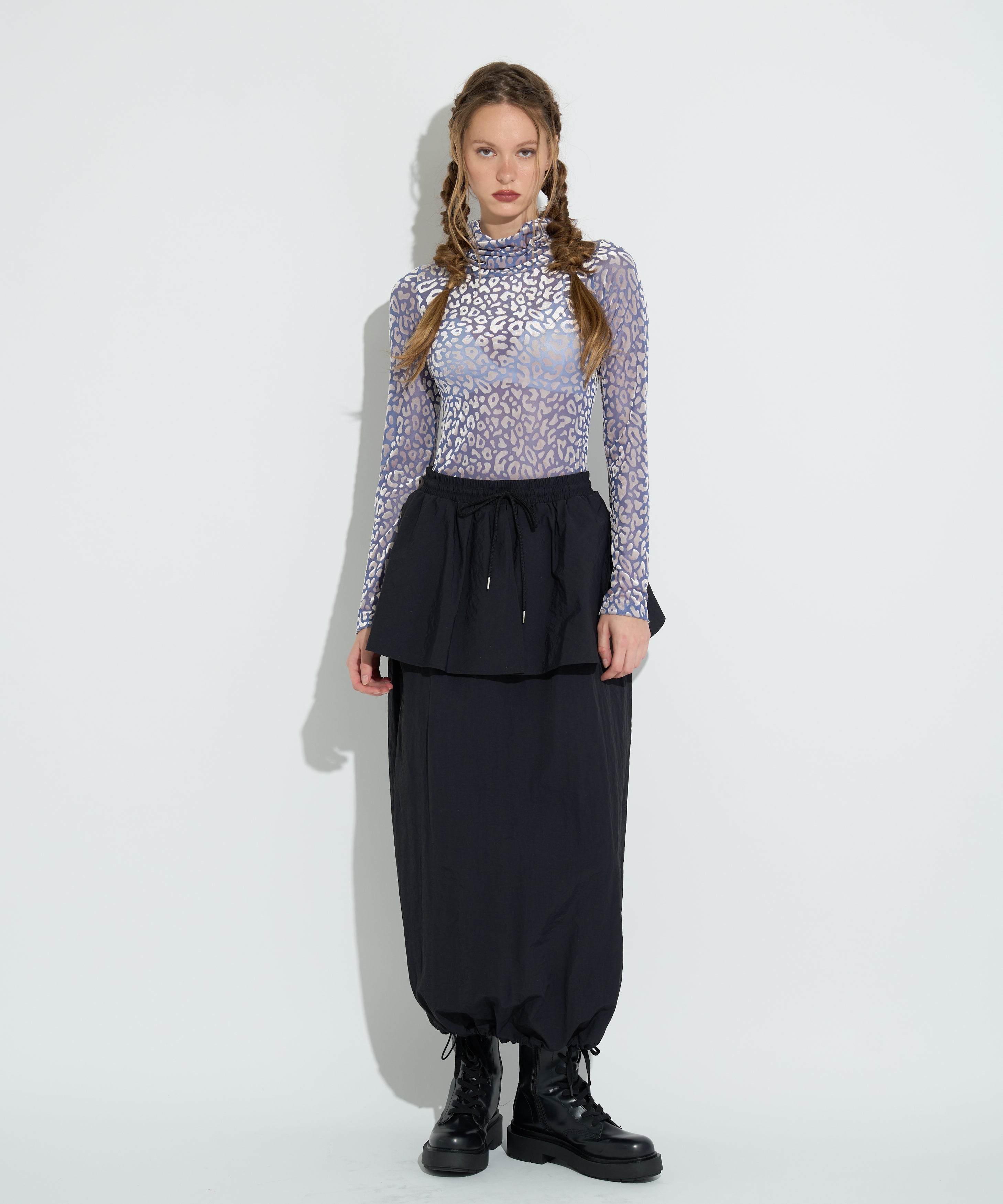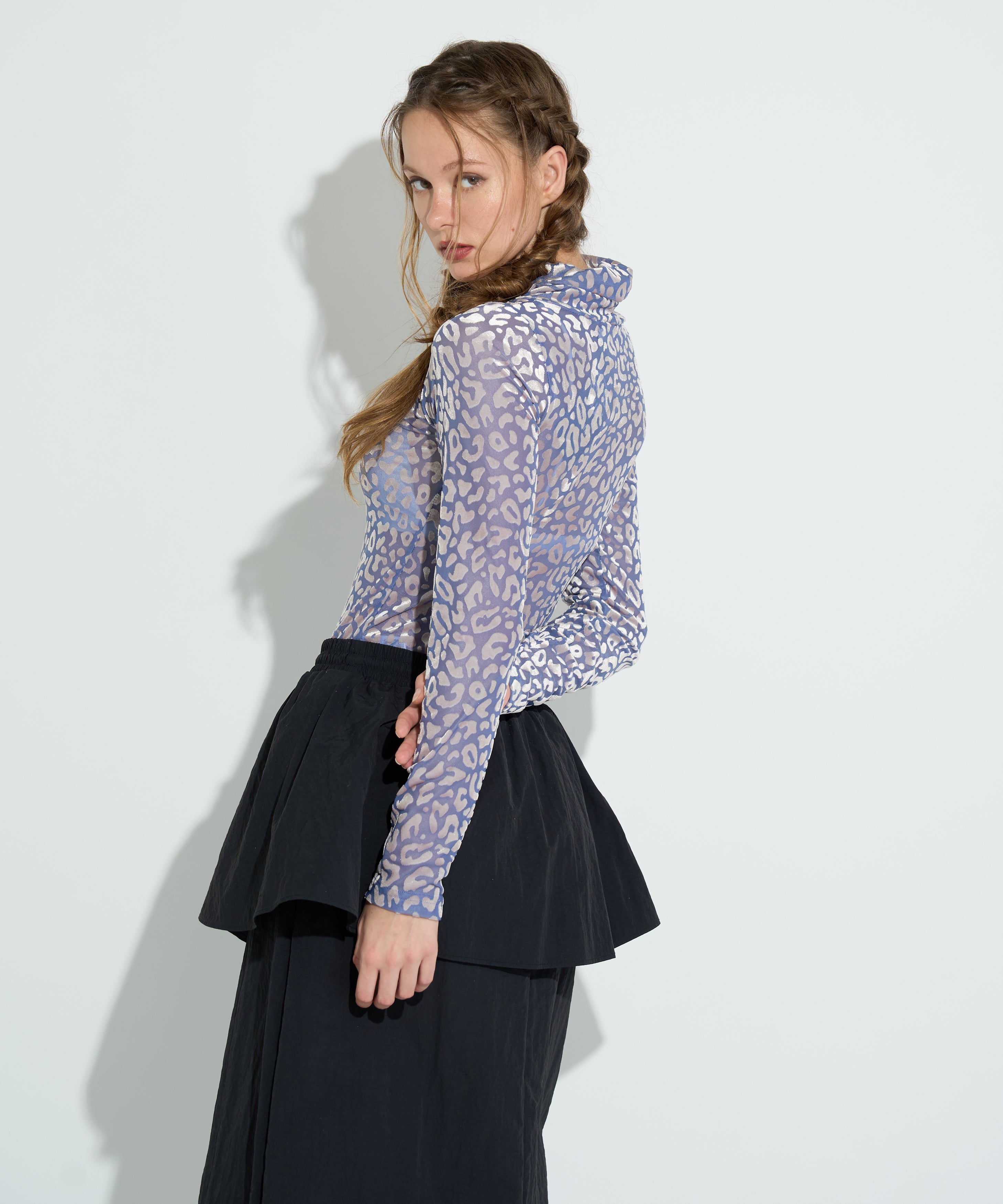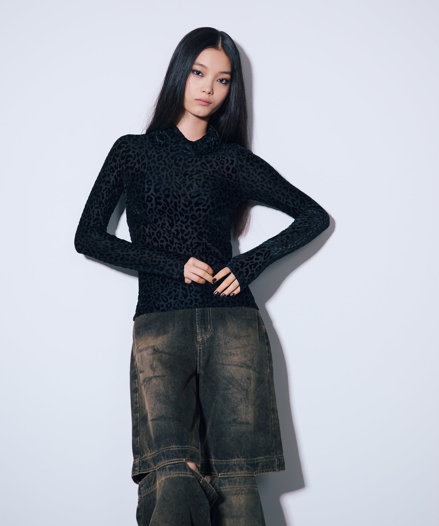 トレンド感のあるレオパード柄が目を惹くシアータートルネックトップス。フィット感のあるシルエットと伸縮性のある素材で、快適な着心地とすっきりとしたラインを叶えます。ハイネックのデザインがシーズンムードを高めつつ、ジャケットやカーディガンのインナーとしても映える存在感。カラーは、柔らかな雰囲気のBLUE、シックで大人っぽいBLACKの2色展開です。