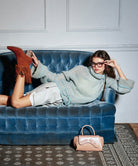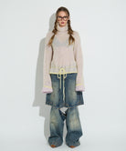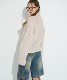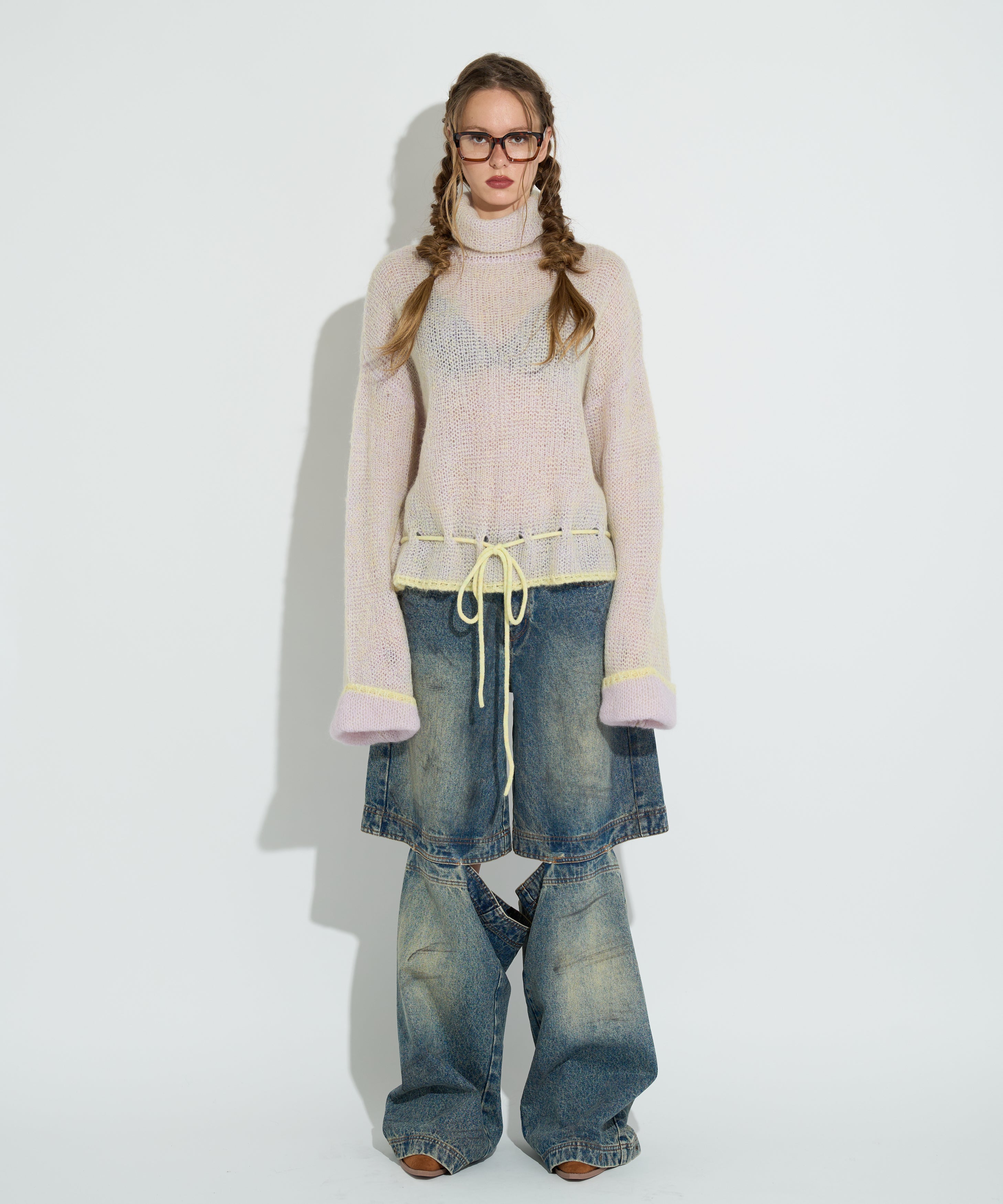 やわらかな雰囲気が魅力のタートルニット。表糸と裏糸を配色にすることで生まれる繊細な色合いが、淡く優しいニュアンスを引き立てます。衿端や袖口にあしらった配色ラインもさりげないアクセントとなり、シンプルながらも存在感のあるデザインに。さらに、裾にはリボンディテールをプラスし、スタイリングにフェミニンなムードを添えています。リボンを絞ってシルエットに変化をつけるなど、アレンジも楽しめる一枚。程よいゆったりシルエットに、柔らかく肌ざわりの良い糸で、リラックスした着心地ながらも一枚で旬なスタイリングが完成。カラーはMINTとPINKの2色展開で、どちらも透明感のある淡いトーンで、シーズンムードを柔らかく彩ります。