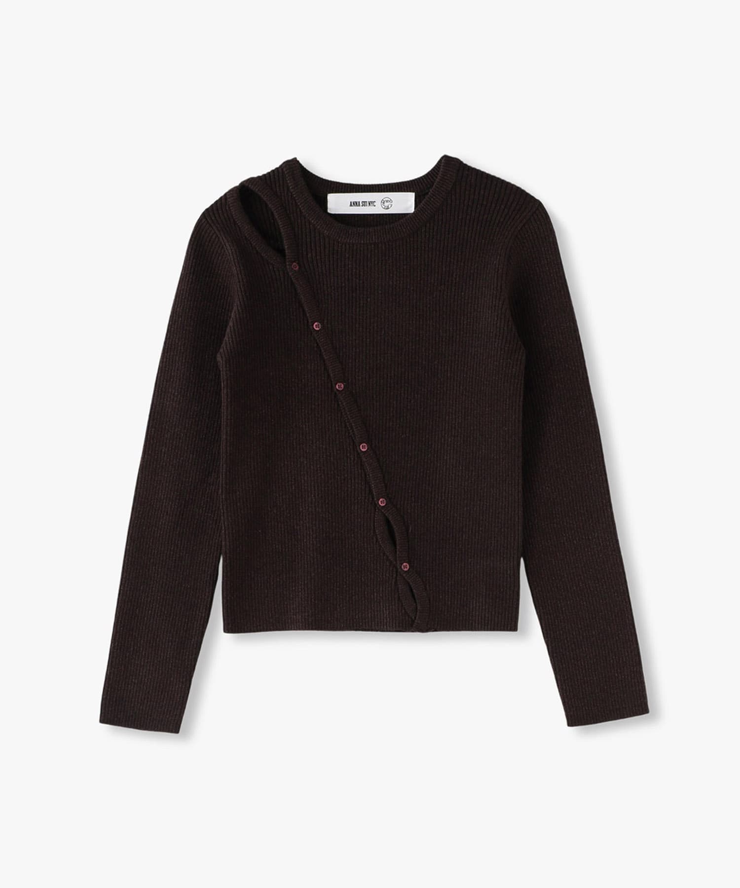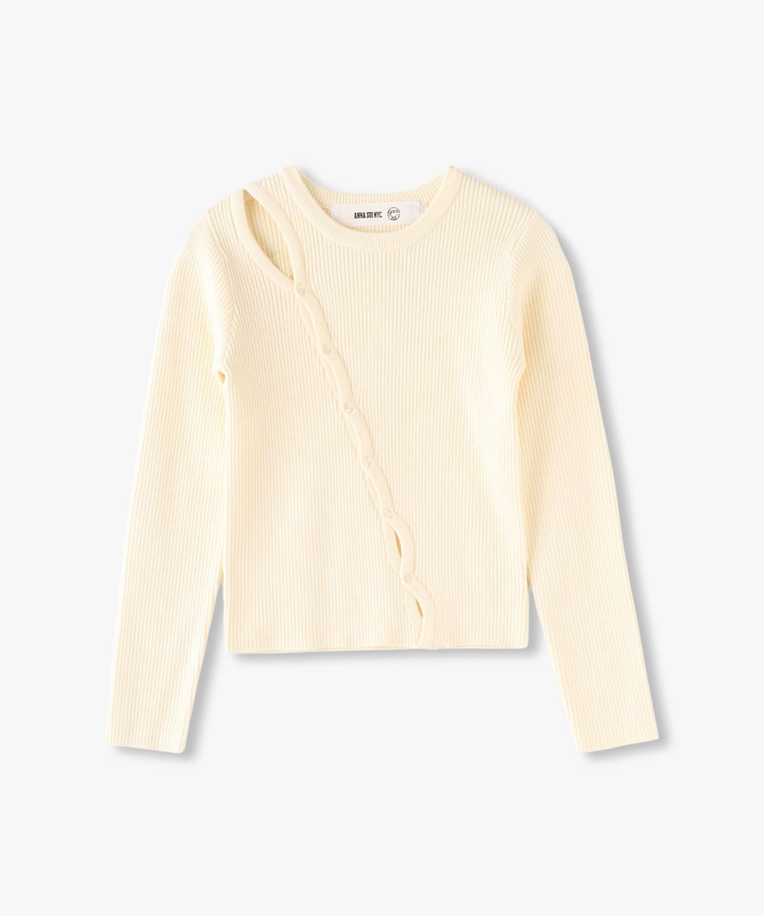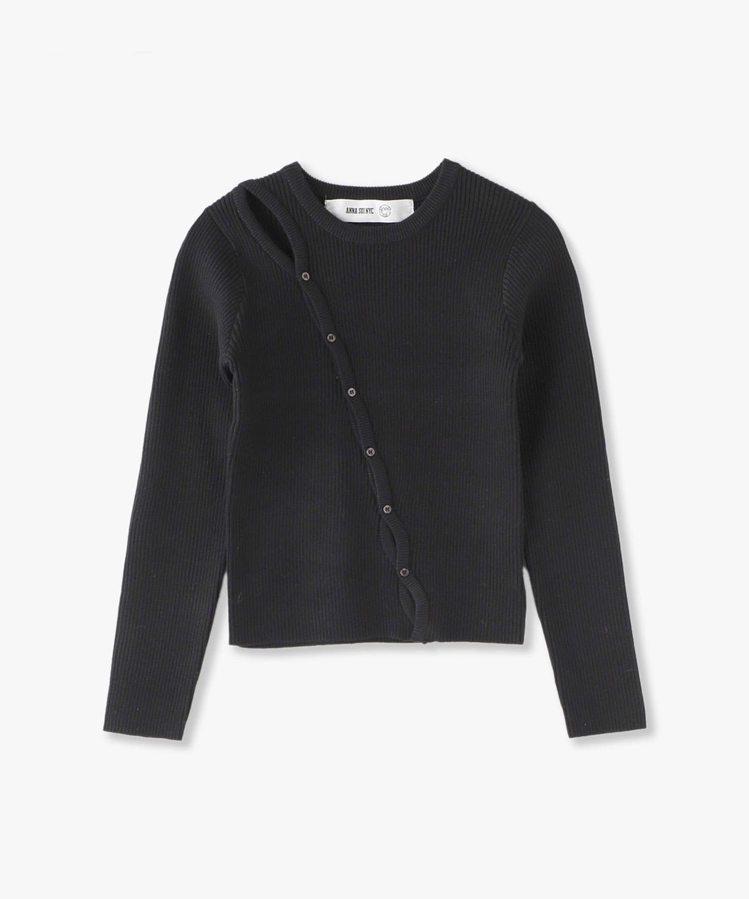 肩から裾にかけて斜めに釦が付いていて、肌見せができるアイテムとなっています。