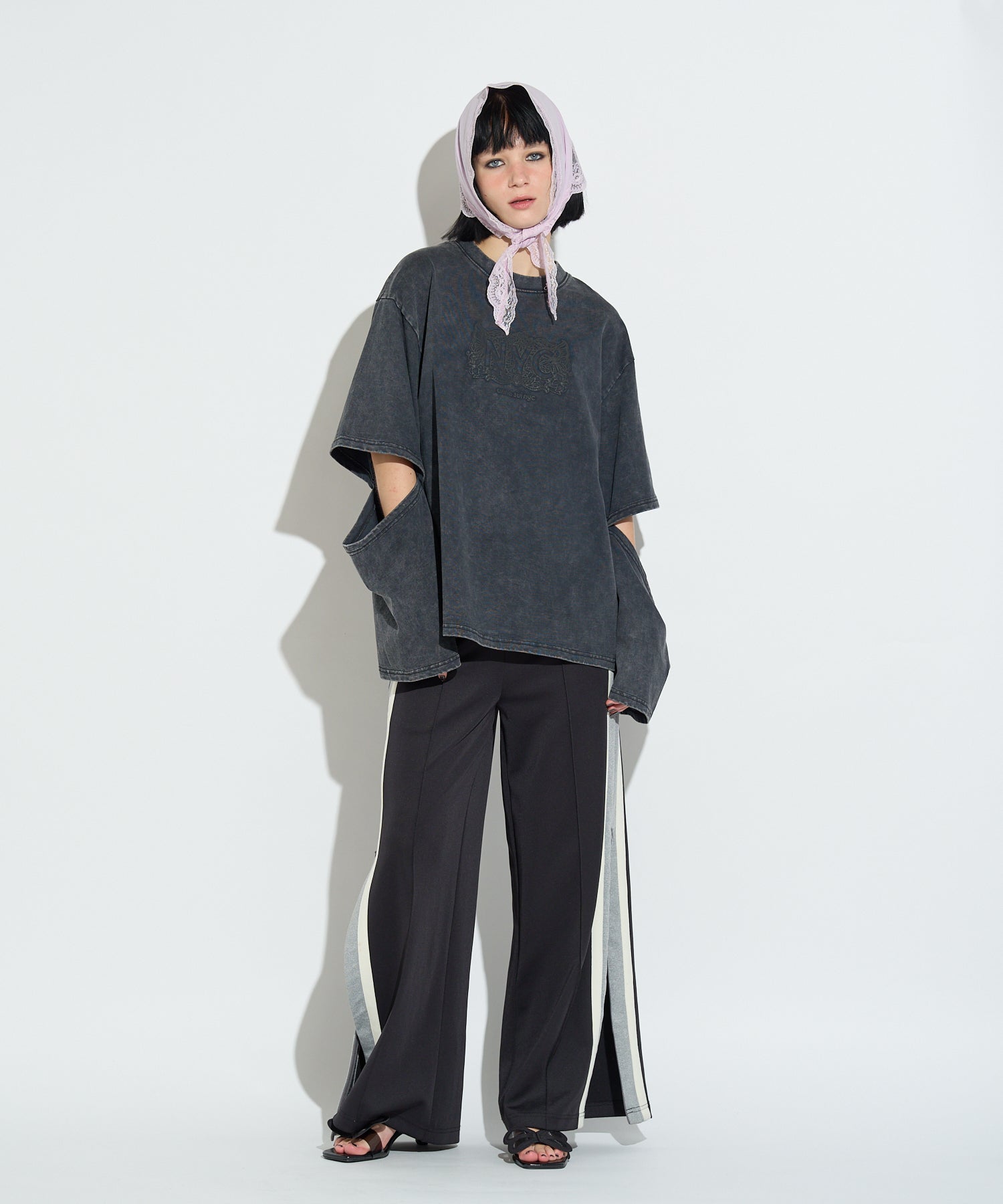 1枚での着用はもちろん、スラッシュからインナーを覗かせたレイヤードスタイルもおすすめ。アシメレーススカートやデニムなどと合わせて、相反するテイストのミックスマッチを楽しんでほしい1枚です。
