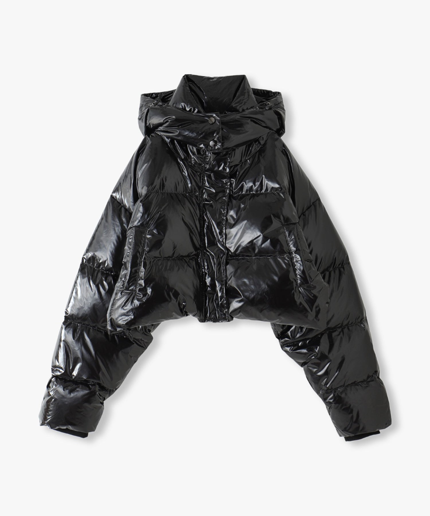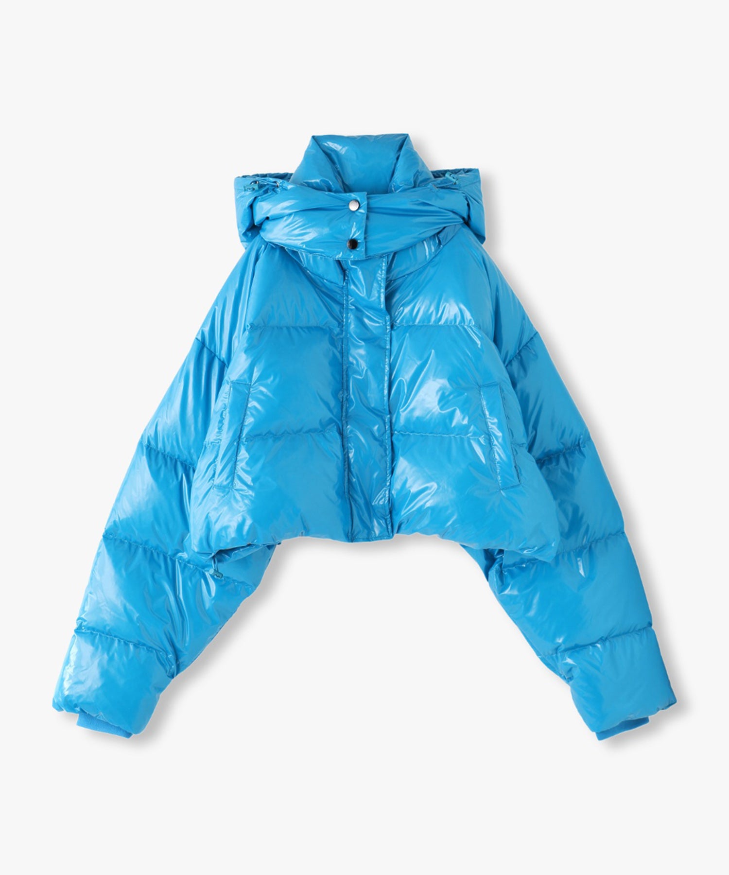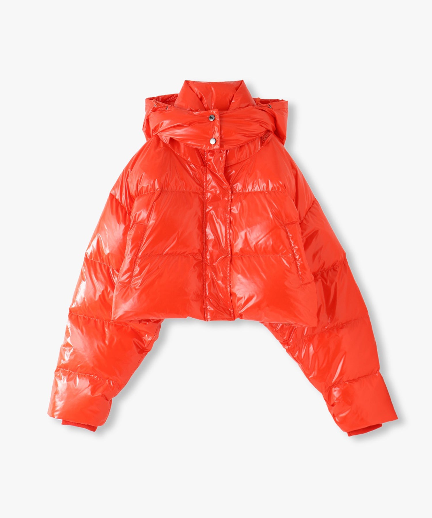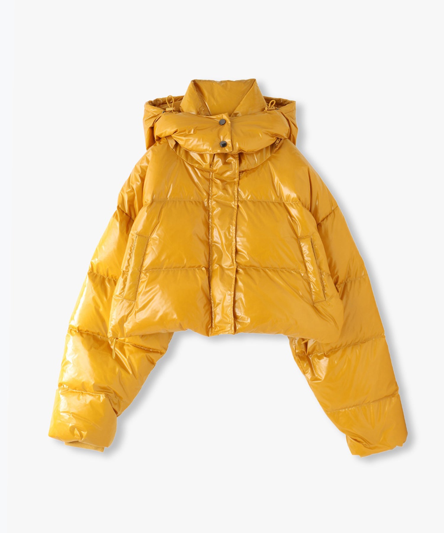ツヤツヤの素材がフューチャーリスティックなスーパーショート丈のダウンジャケット。フード有り無しで2wayになります。丈が短いので、ショート丈やロング丈、どちらのボトムとも相性が良いです。配色のメッシュポケットがスポーティーなデザインになっています