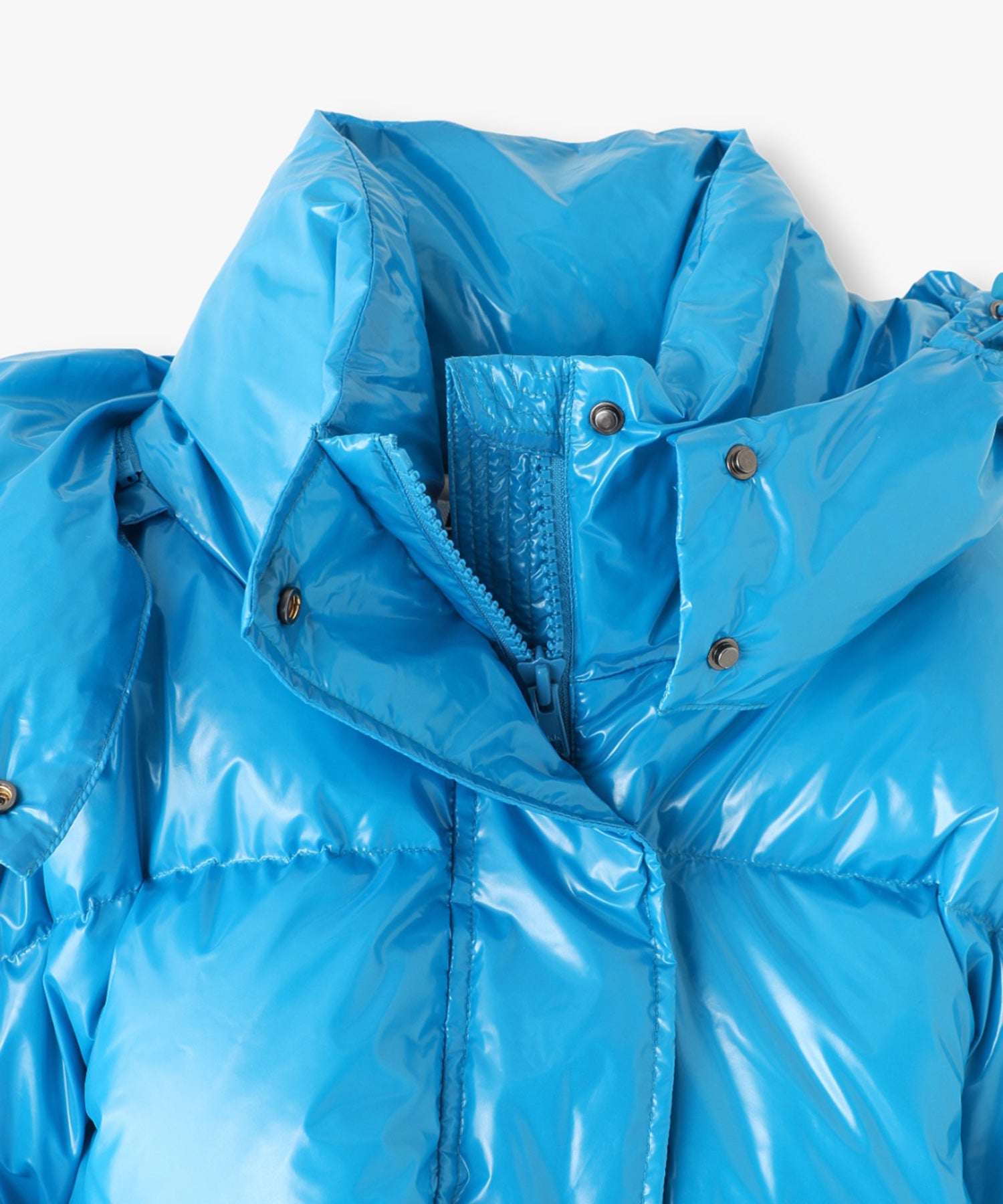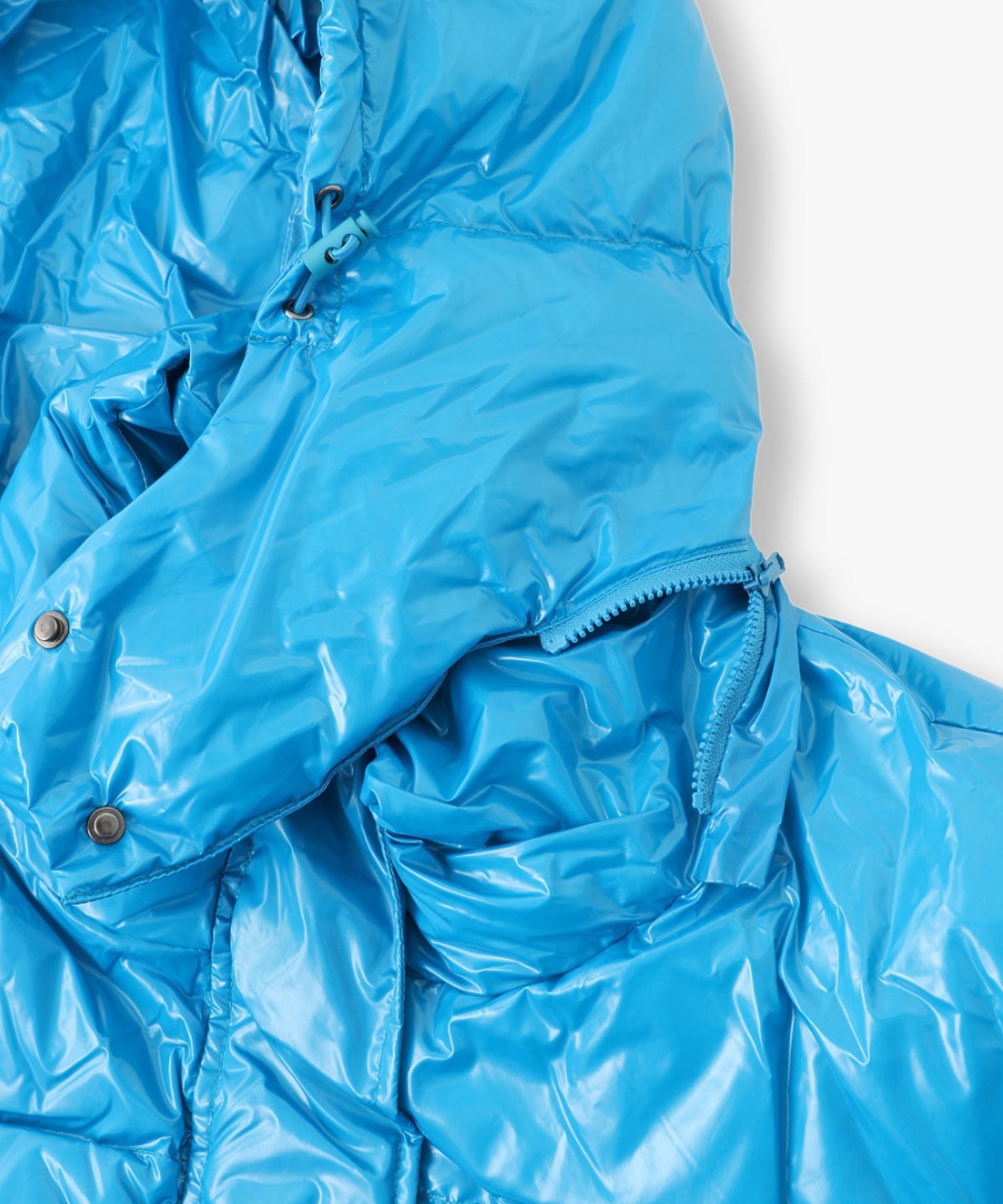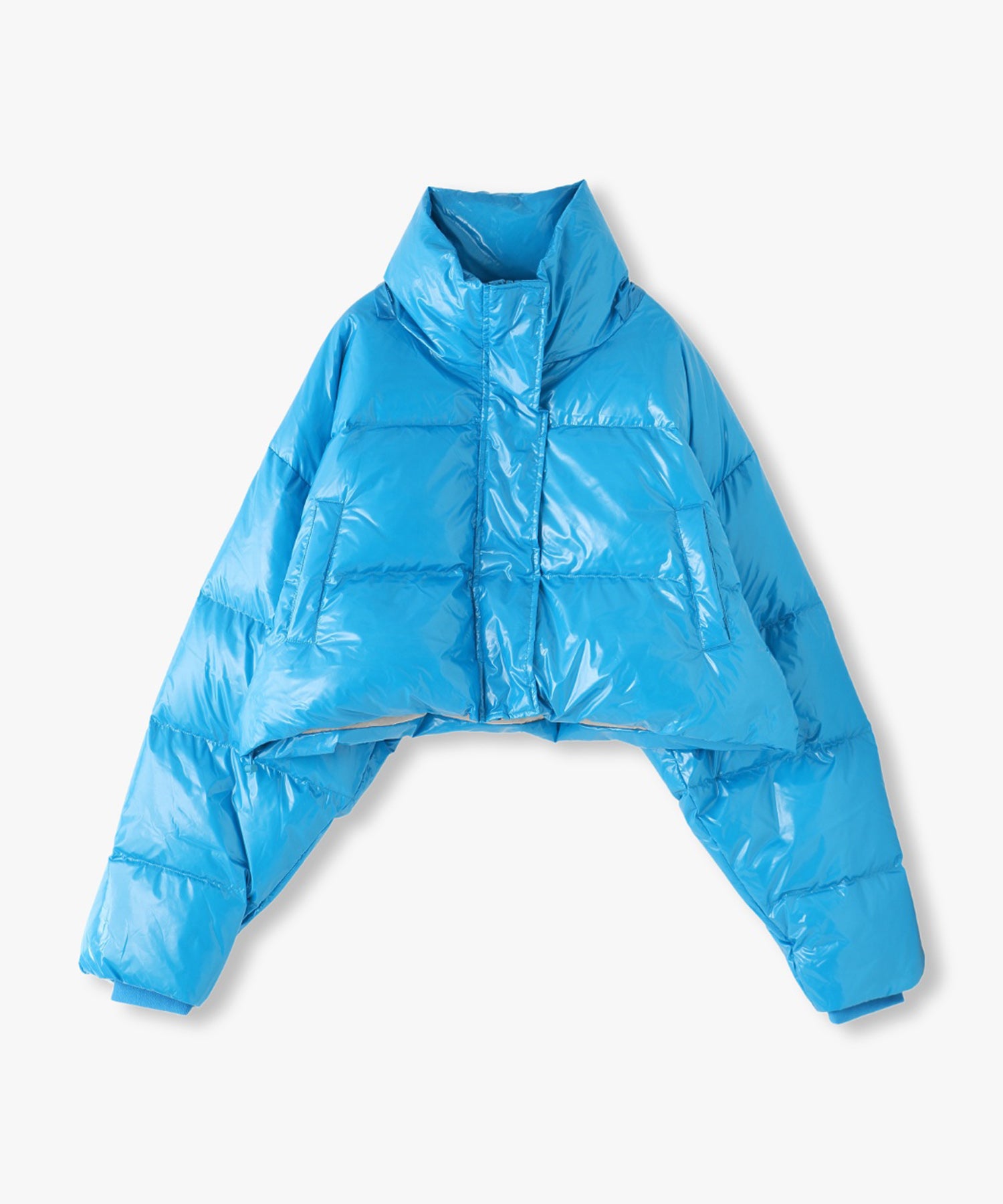 ツヤツヤの素材がフューチャーリスティックなスーパーショート丈のダウンジャケット。フード有り無しで2wayになります。丈が短いので、ショート丈やロング丈、どちらのボトムとも相性が良いです。配色のメッシュポケットがスポーティーなデザインになっています