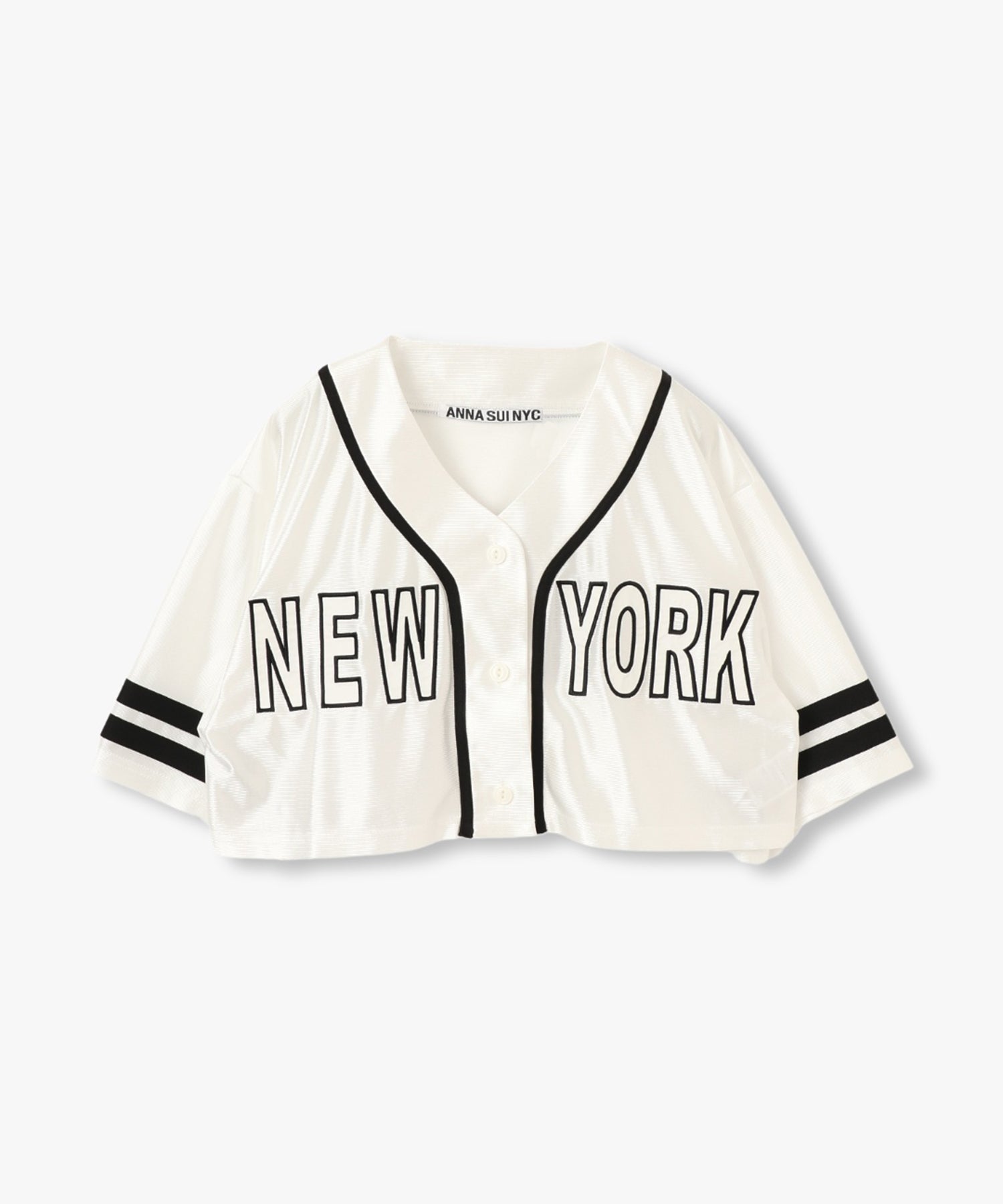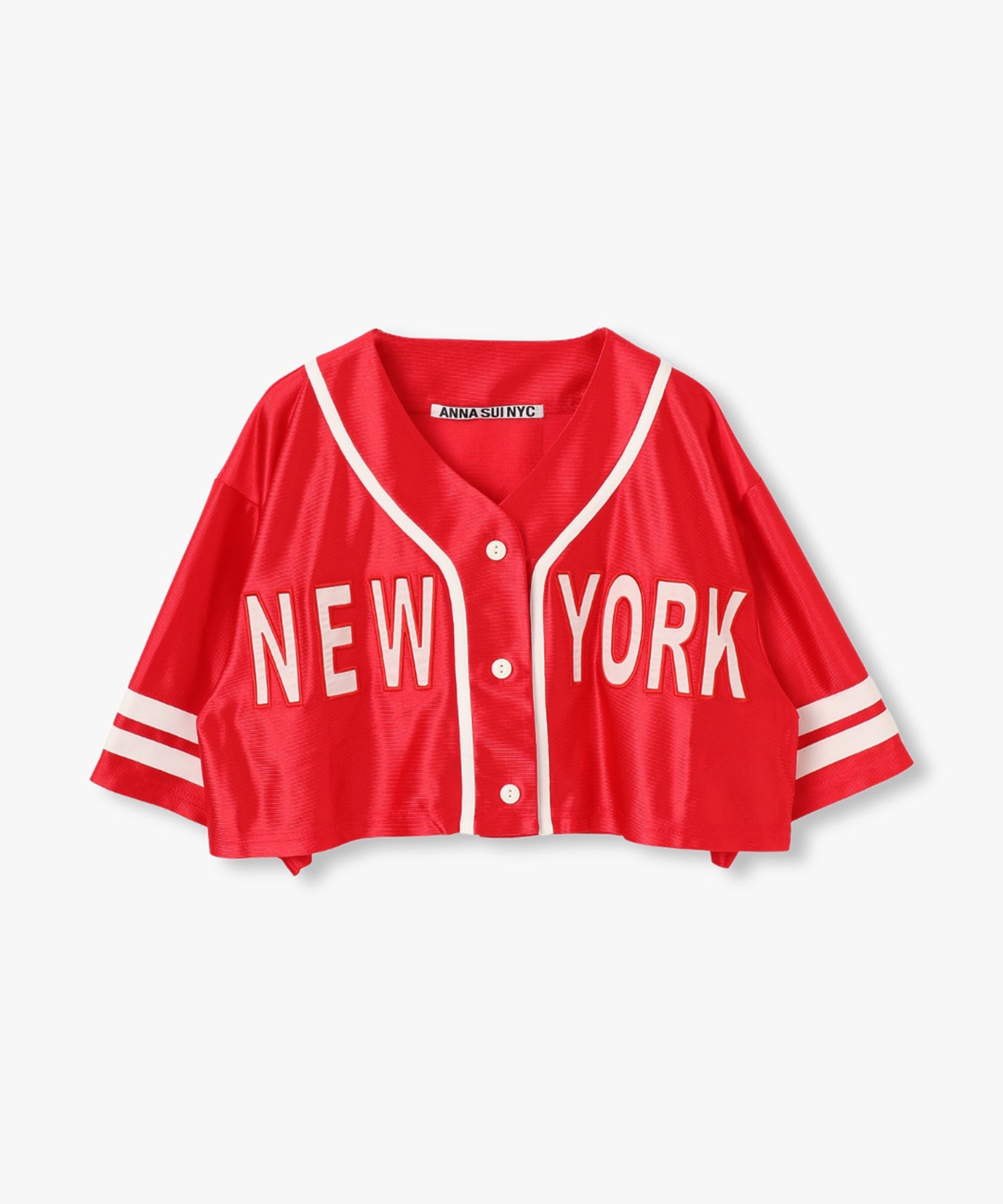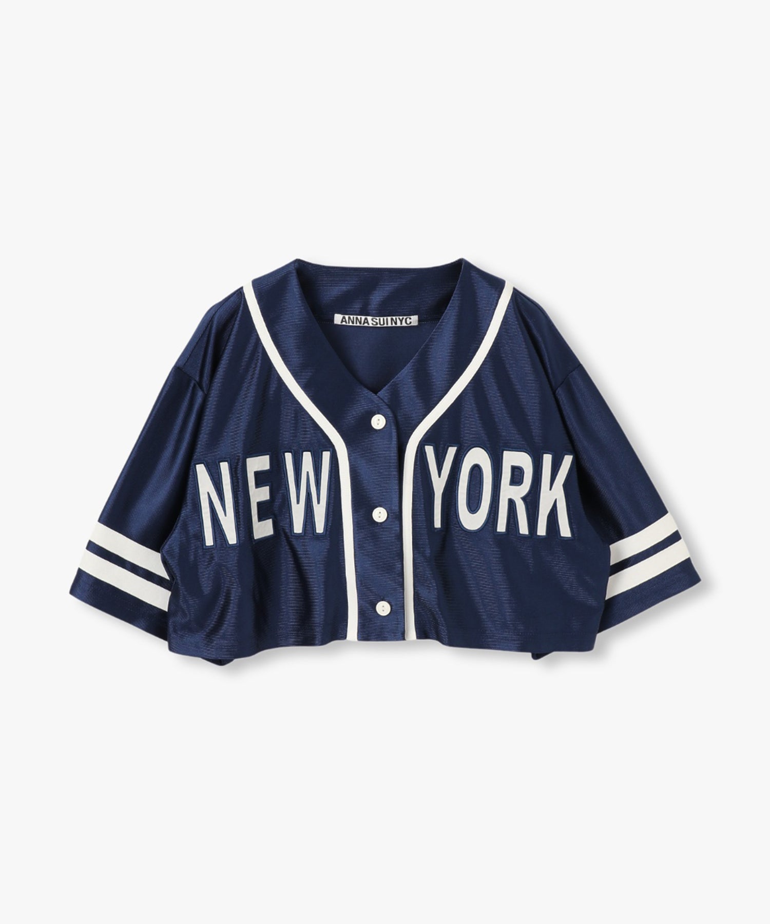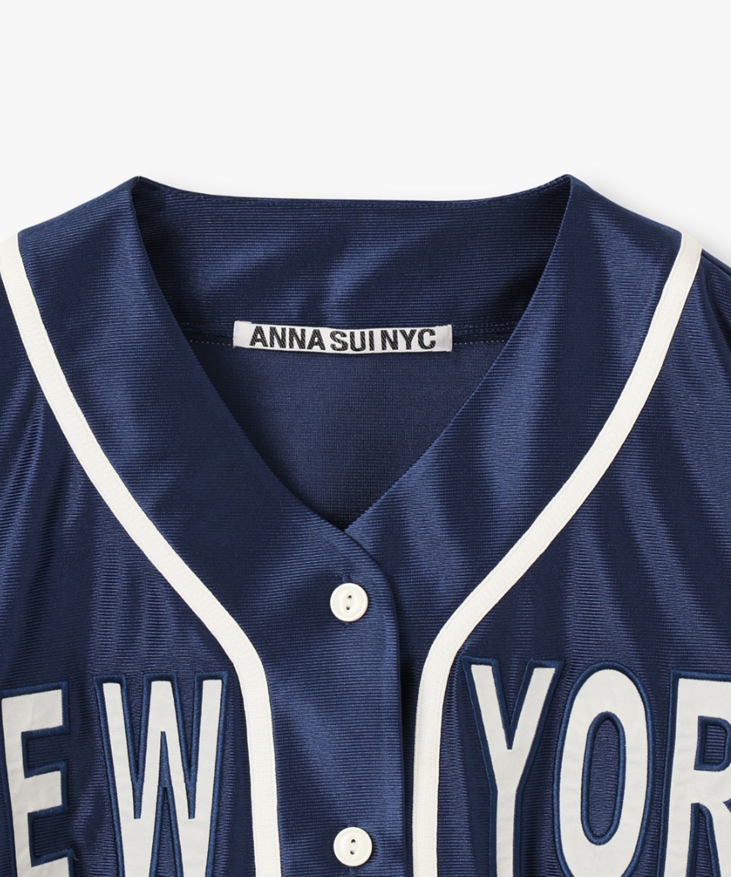 スポーティーなベースボールシャツを短めの丈感と光沢感のある素材でANNA SUI NYCらしさ溢れるPOPでキャッチーな仕上がりに!ロゴはサテンパッチ刺繍で立体的に表現しました。Tシャツを着るように1枚で着たり、前開きで羽織りとして着たり、自由にスタイリングを楽しんでいただけます◎