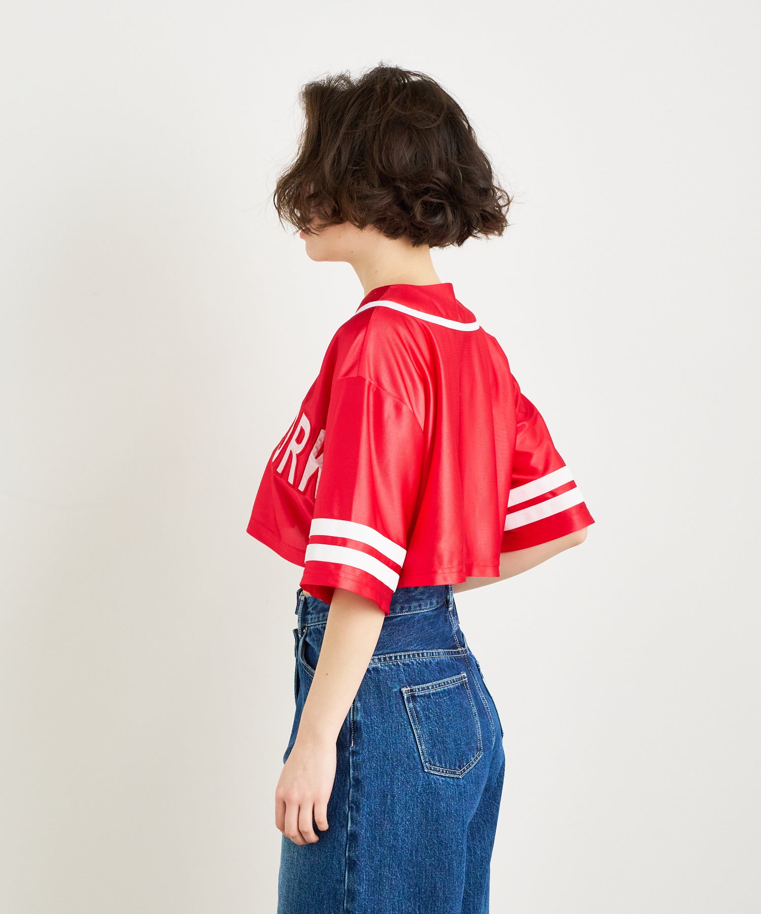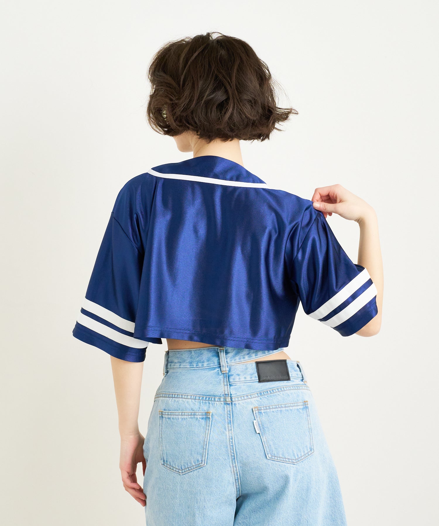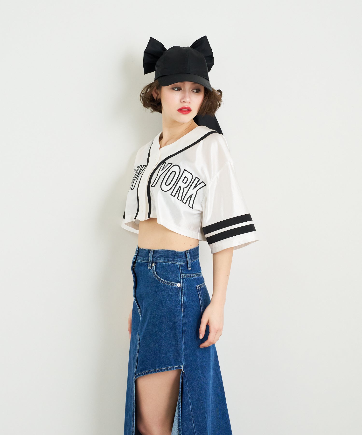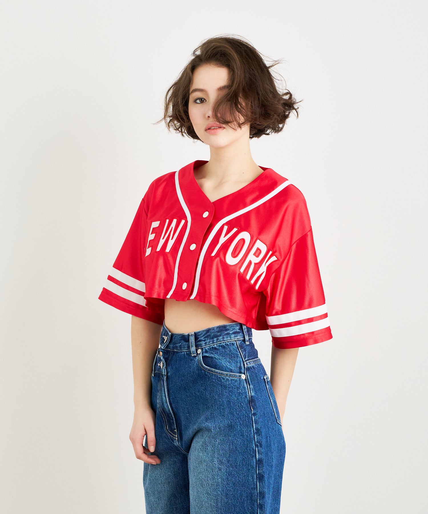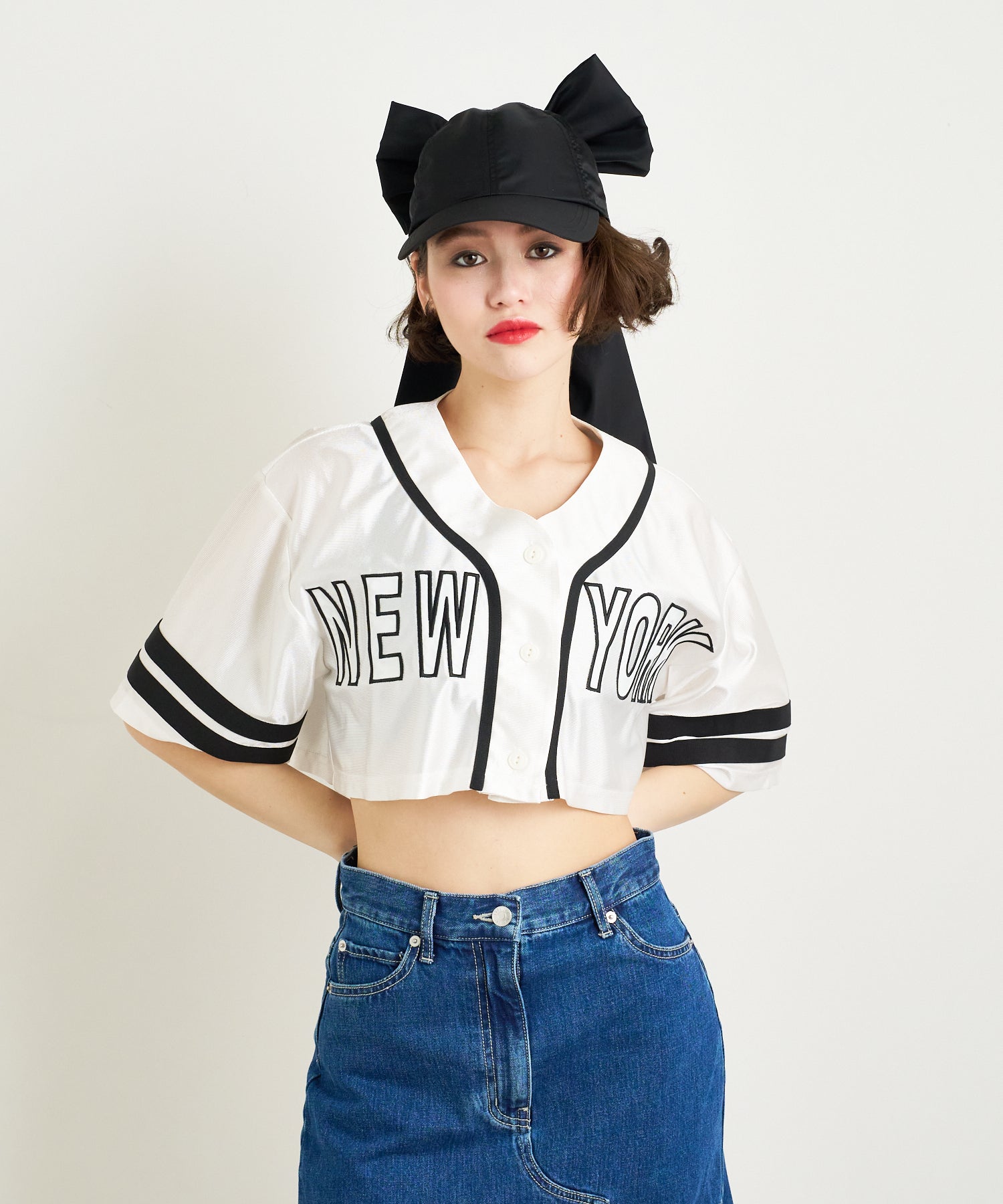 スポーティーなベースボールシャツを短めの丈感と光沢感のある素材でANNA SUI NYCらしさ溢れるPOPでキャッチーな仕上がりに!ロゴはサテンパッチ刺繍で立体的に表現しました。Tシャツを着るように1枚で着たり、前開きで羽織りとして着たり、自由にスタイリングを楽しんでいただけます◎