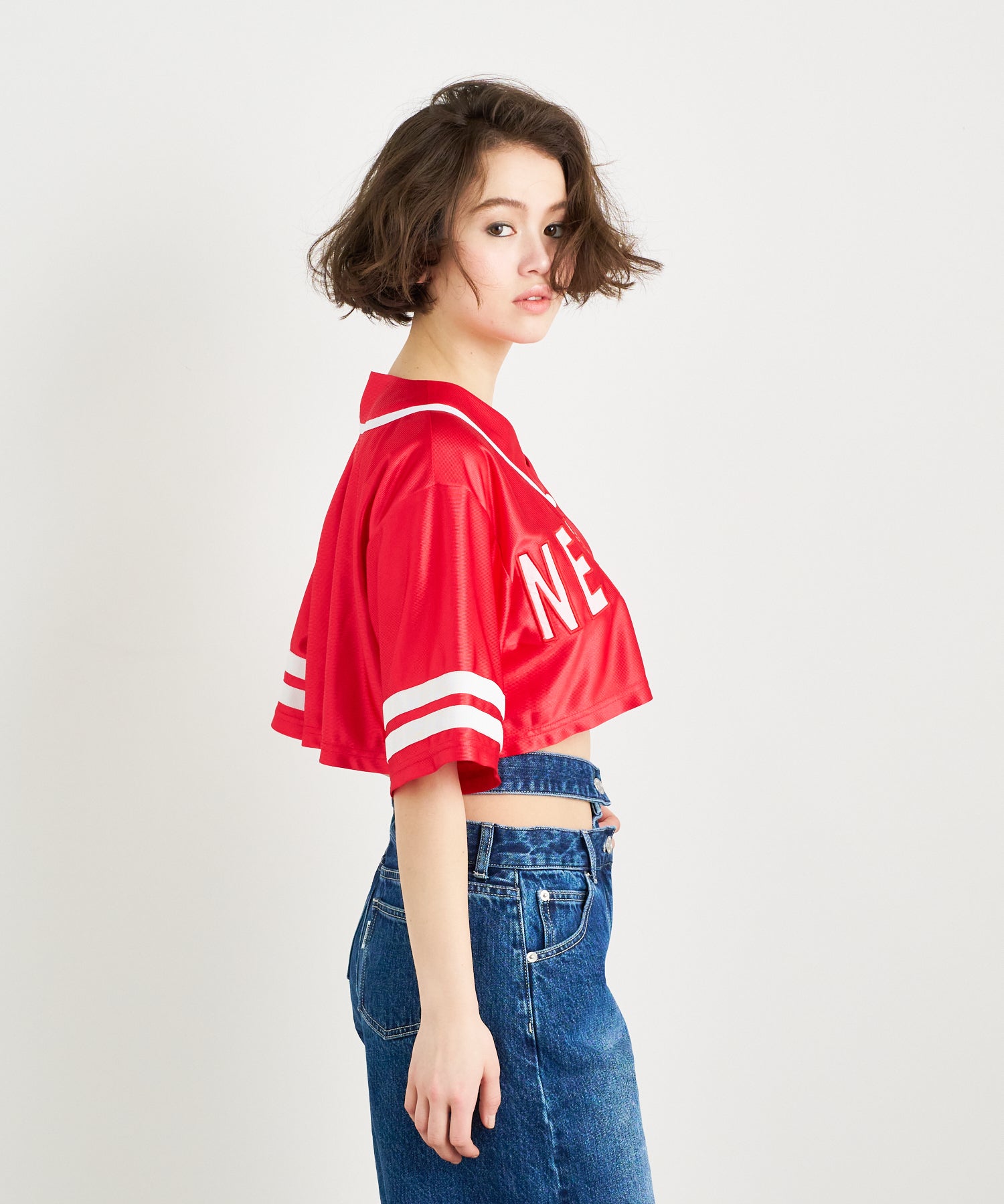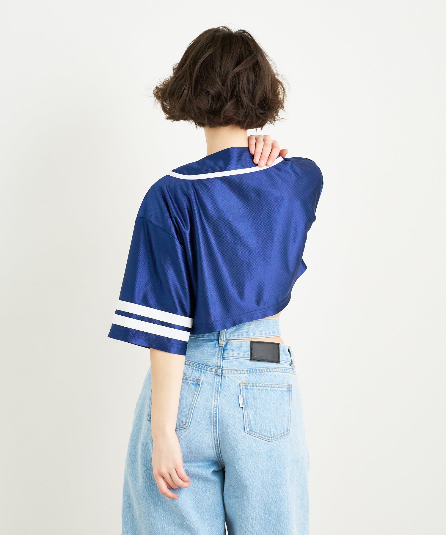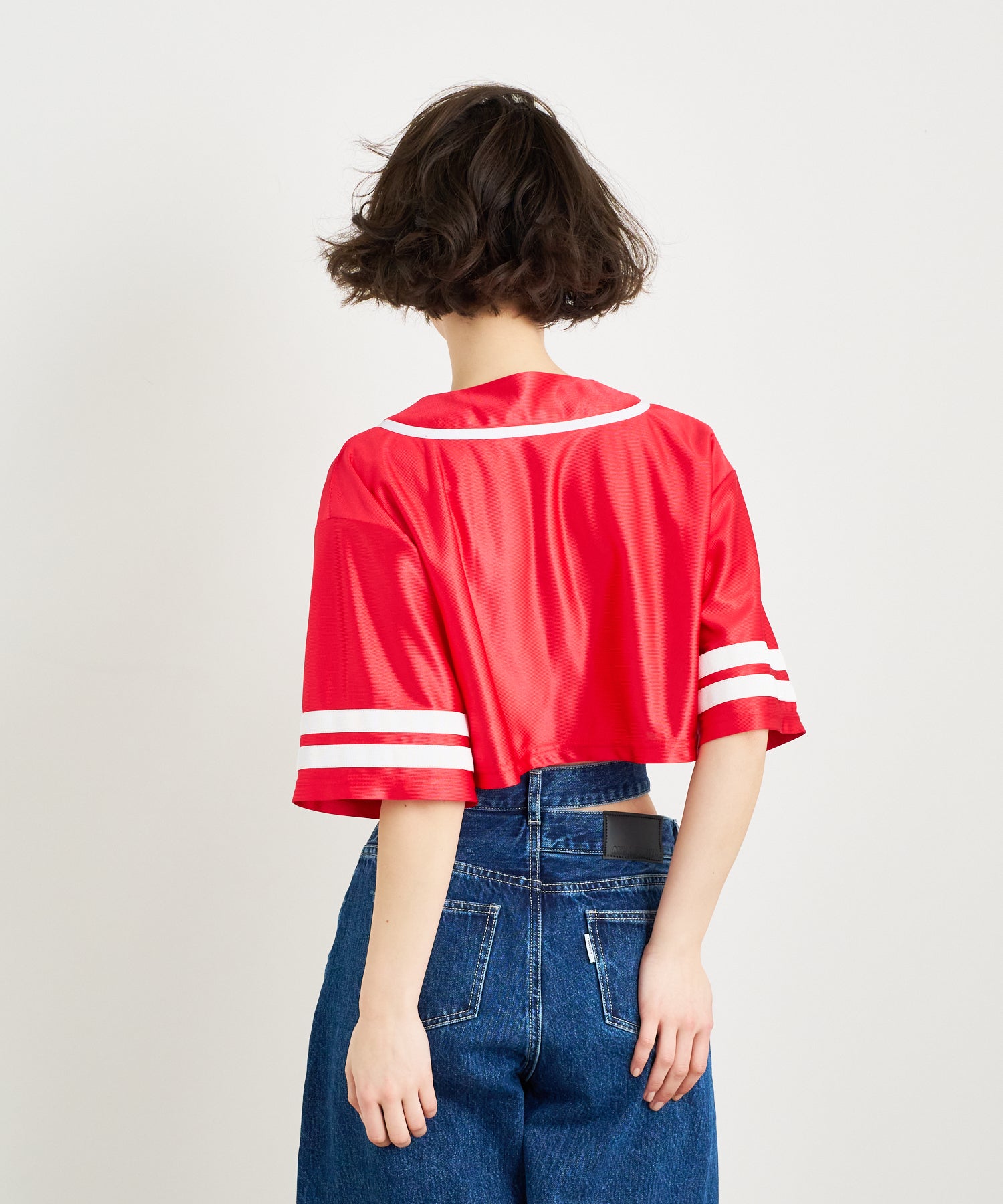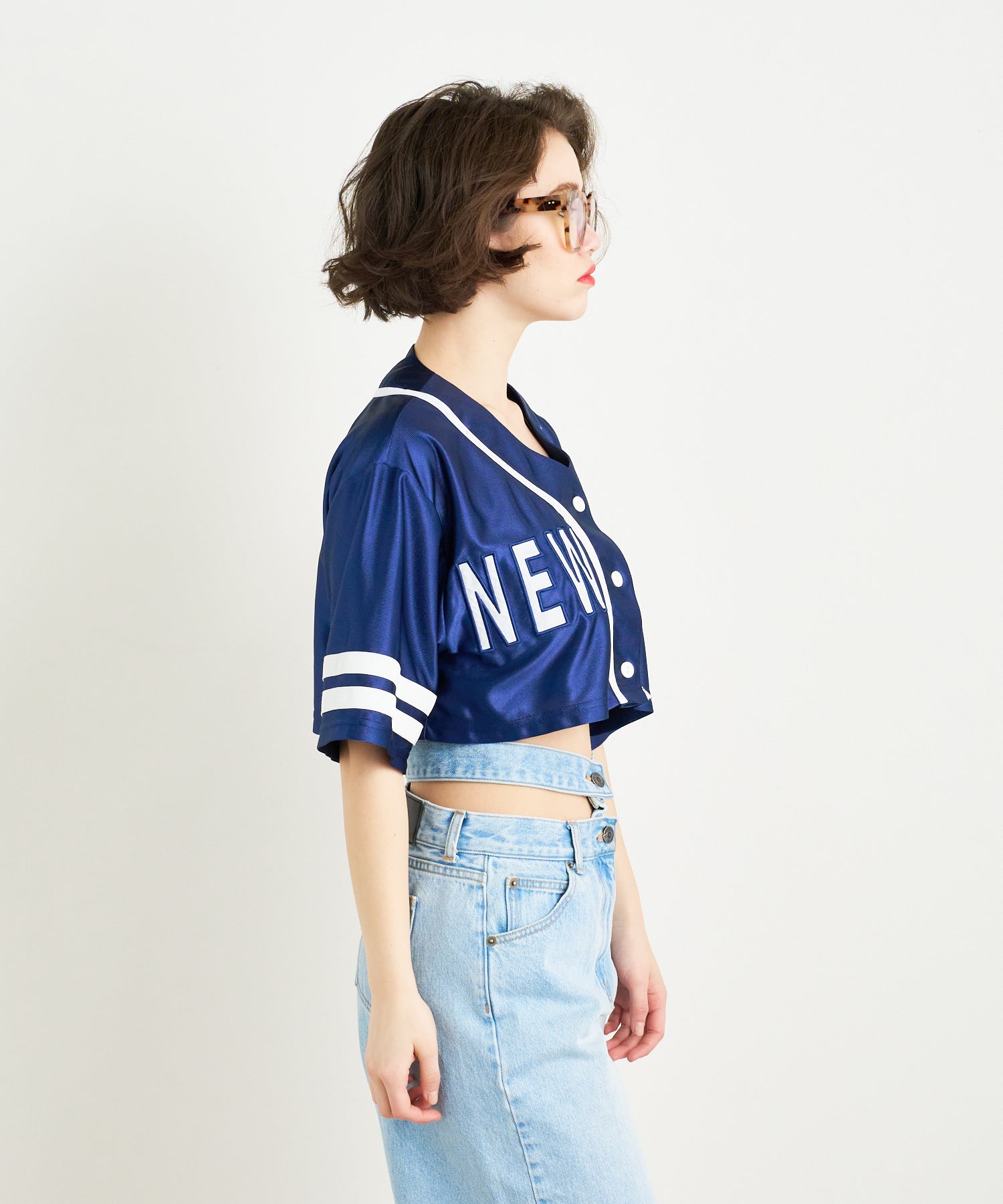 スポーティーなベースボールシャツを短めの丈感と光沢感のある素材でANNA SUI NYCらしさ溢れるPOPでキャッチーな仕上がりに!ロゴはサテンパッチ刺繍で立体的に表現しました。Tシャツを着るように1枚で着たり、前開きで羽織りとして着たり、自由にスタイリングを楽しんでいただけます◎