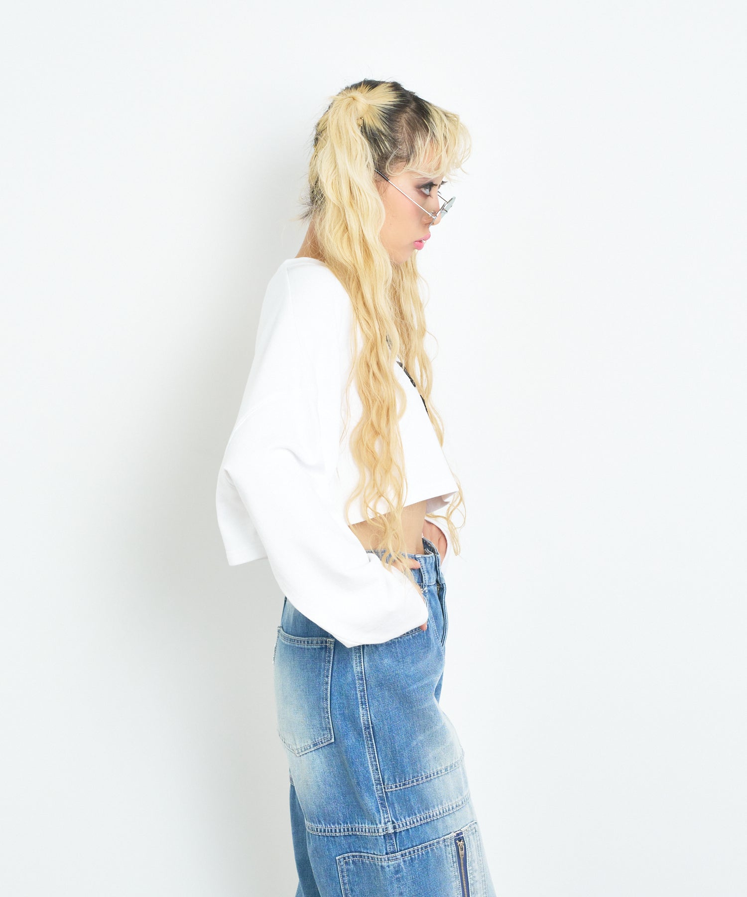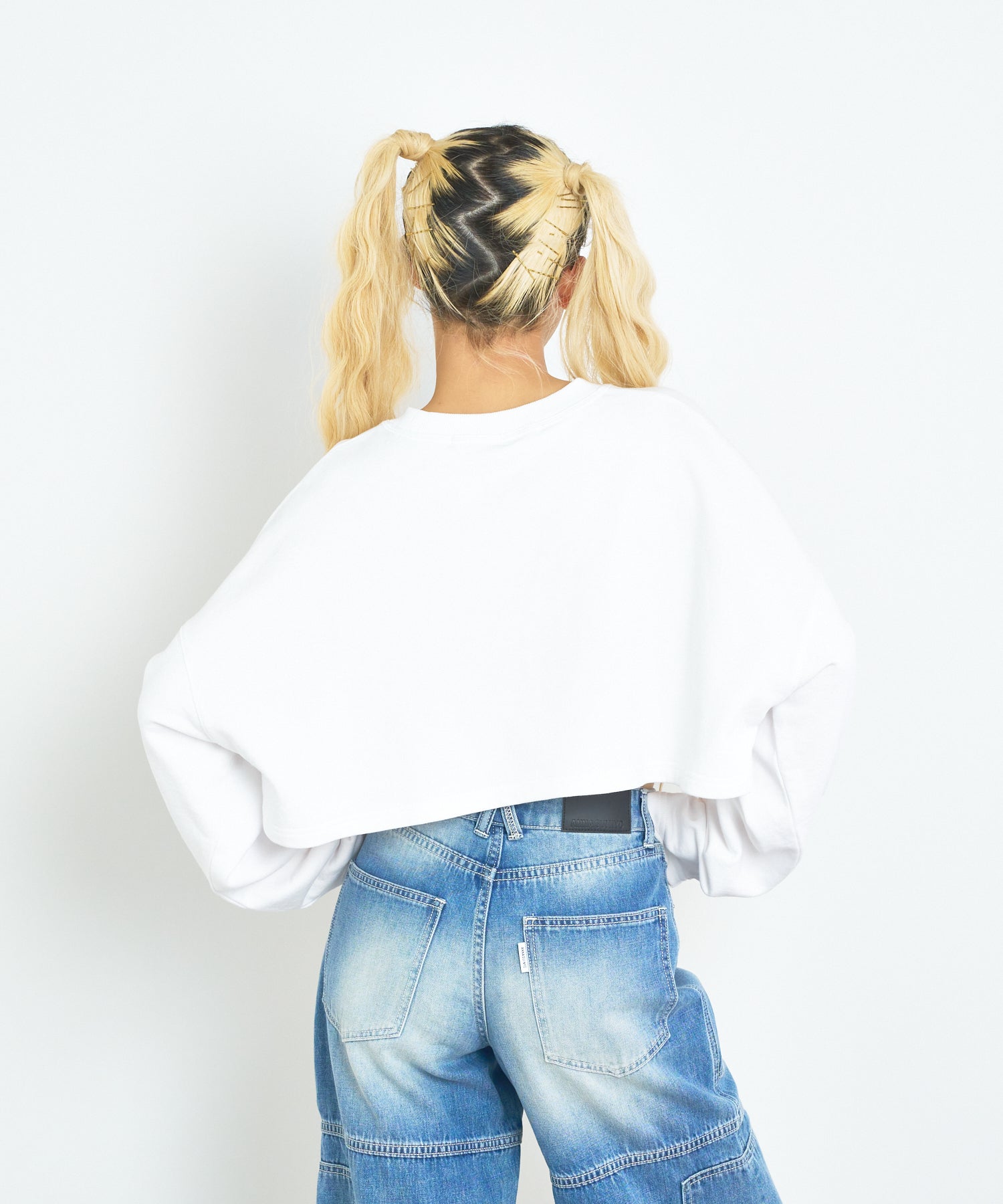モコモコした立体感が特徴的なサガラ刺繍を施したスウェット。ゆったりとした着心地ながら、抜け感のある短丈が今っぽさをぐっと引き立ててくれます。シャツやカットソーなどとレイヤードを楽しんでも◎