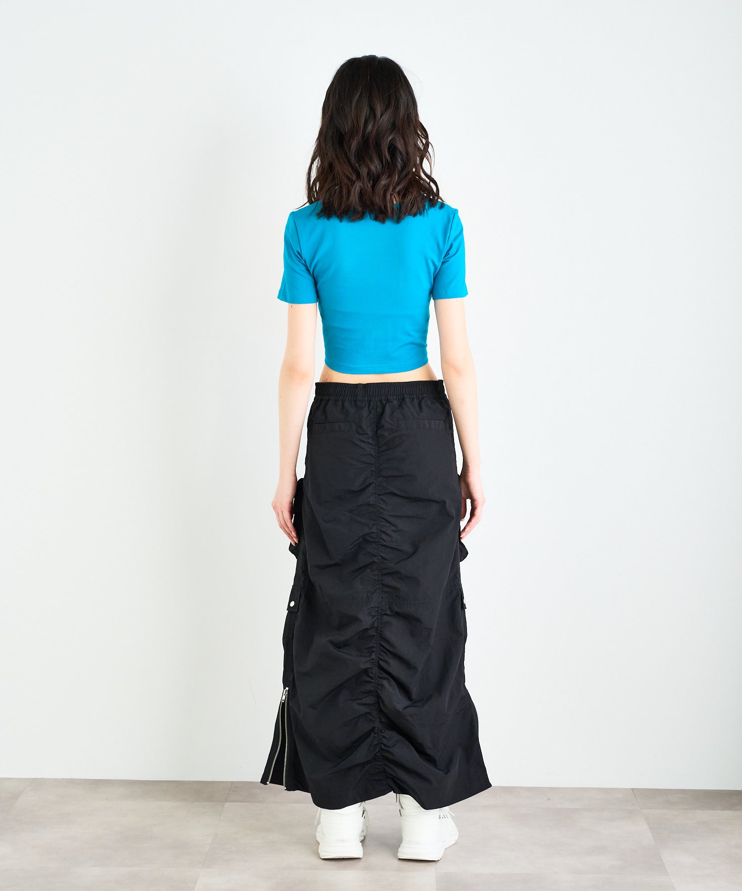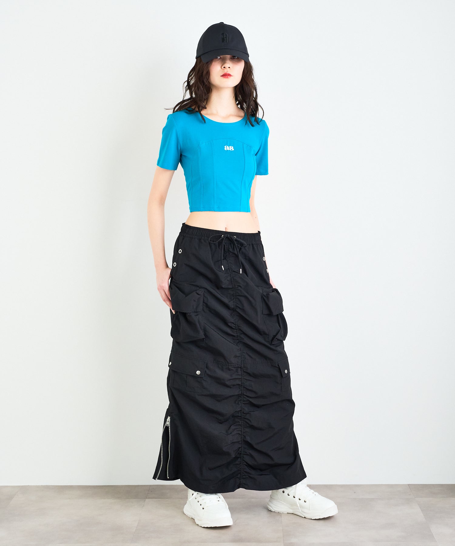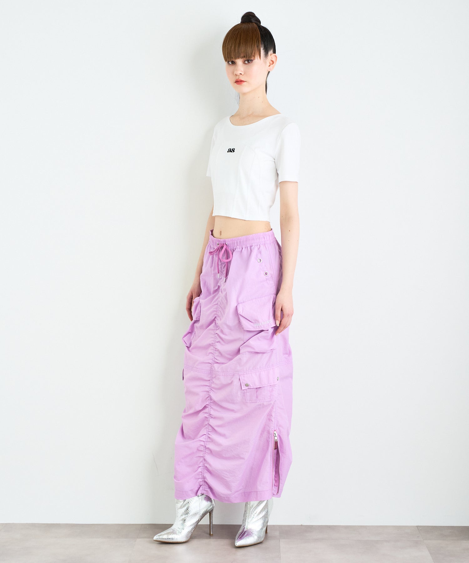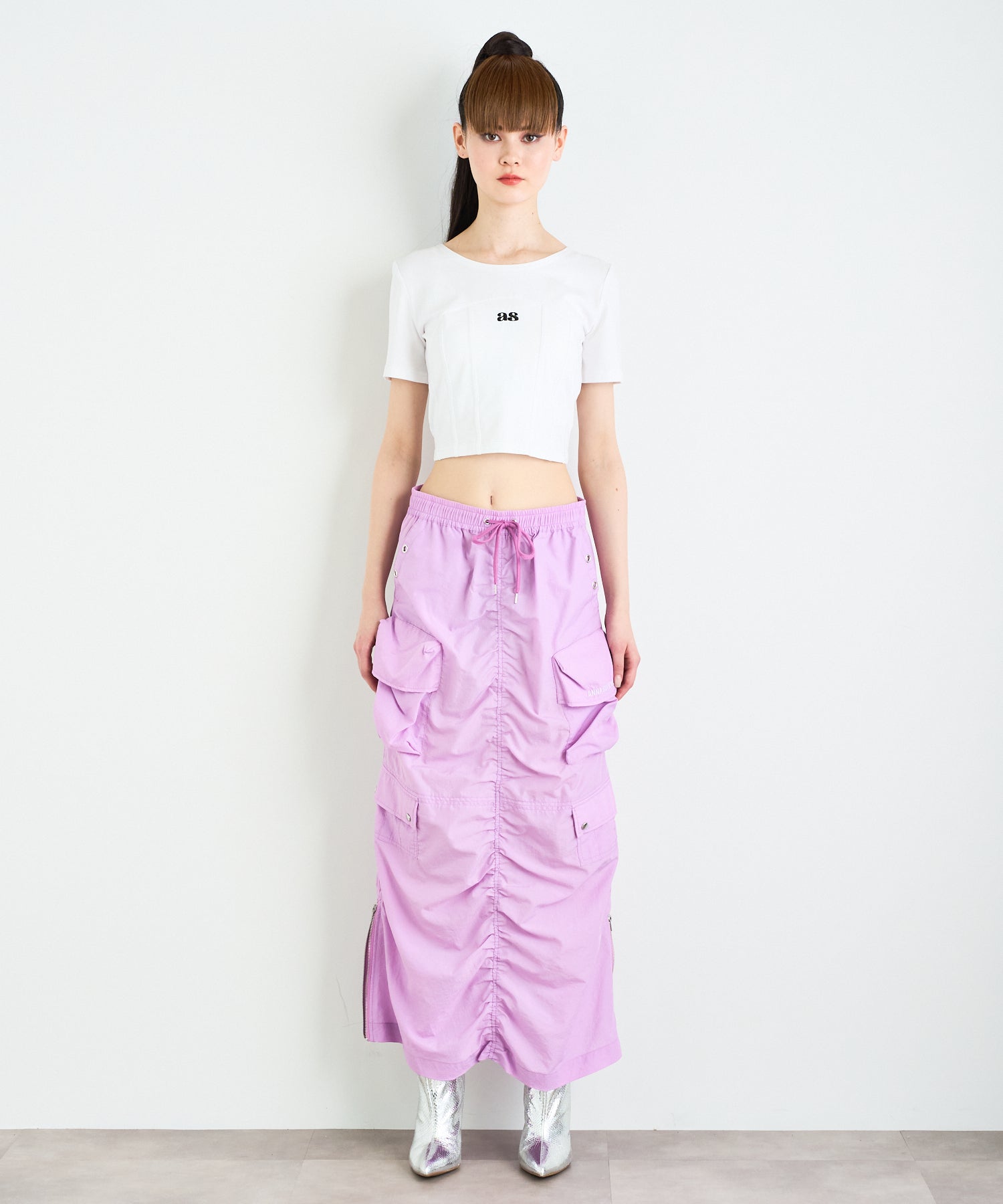 コルセット風の切り替えがトレンド感満載のクロップドTシャツ!伸びのいい柔らかな素材で楽に着用していただくことができます。タイトなシルエットがメリハリのあるボディを演出してくれる一枚で着映えする技ありトップスです◎