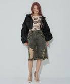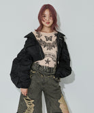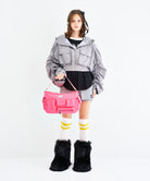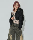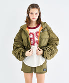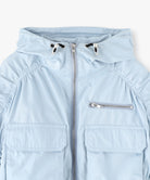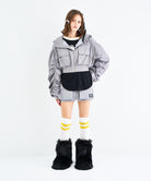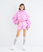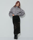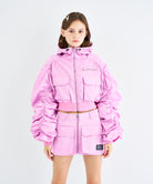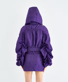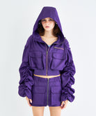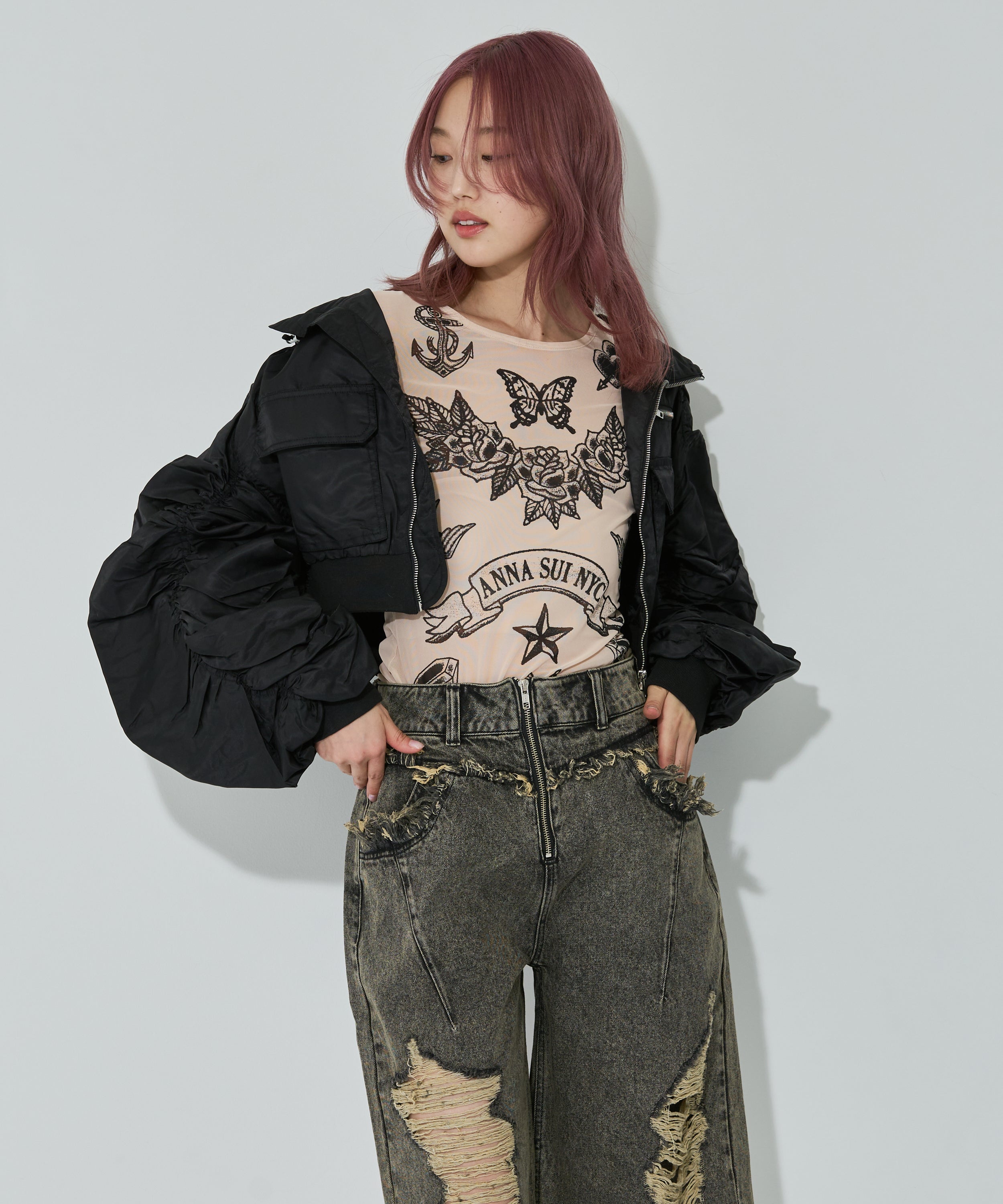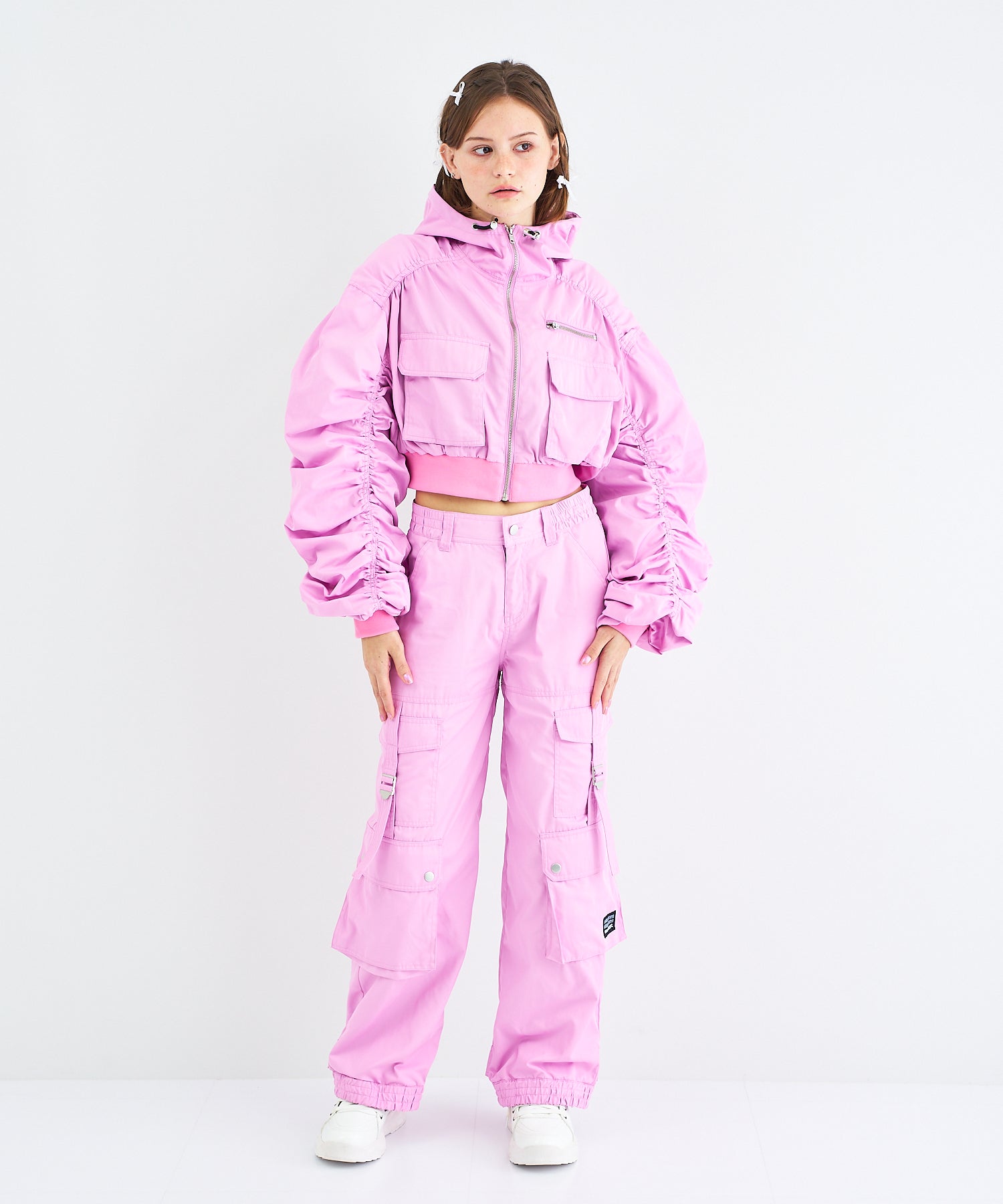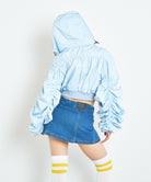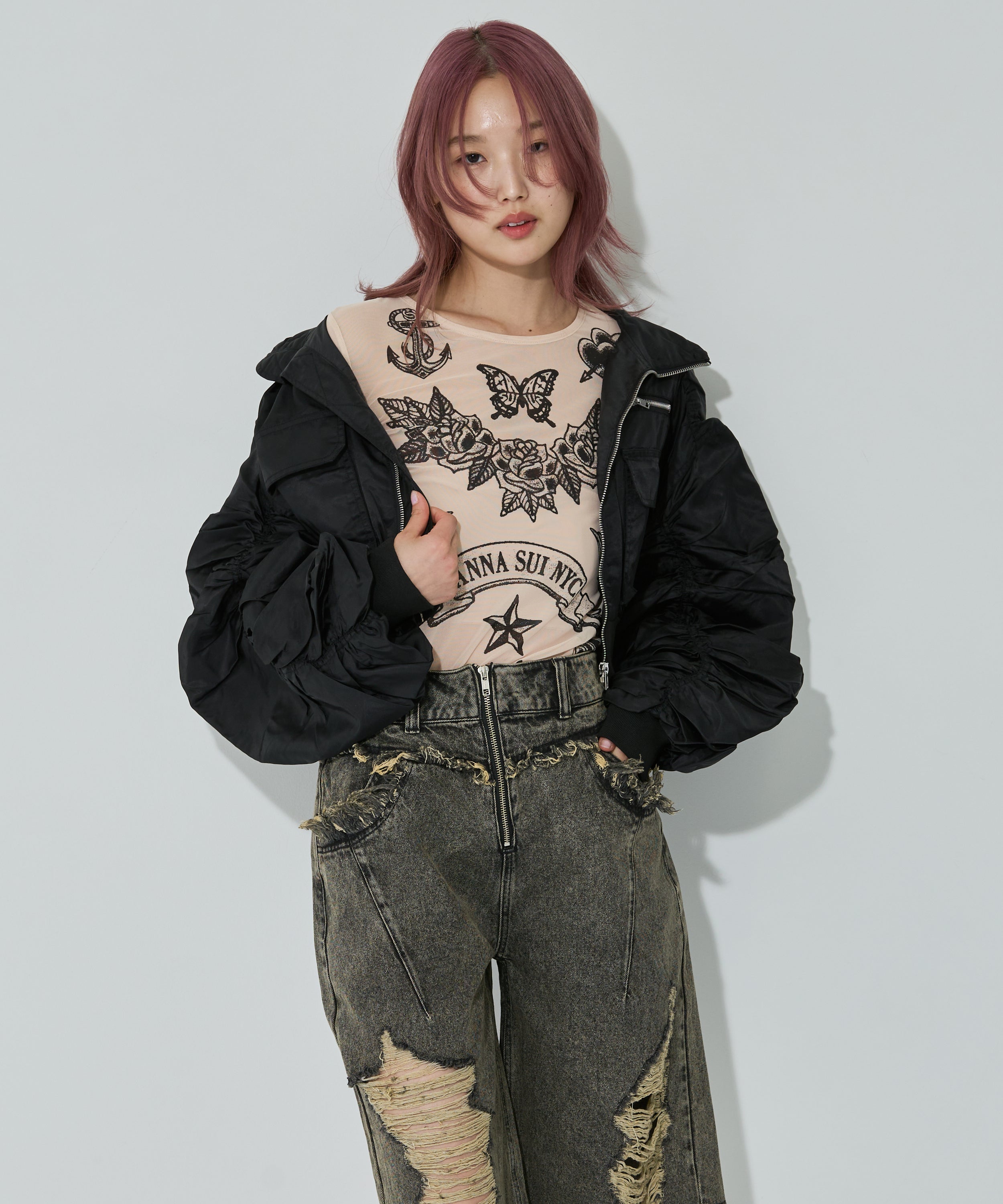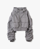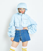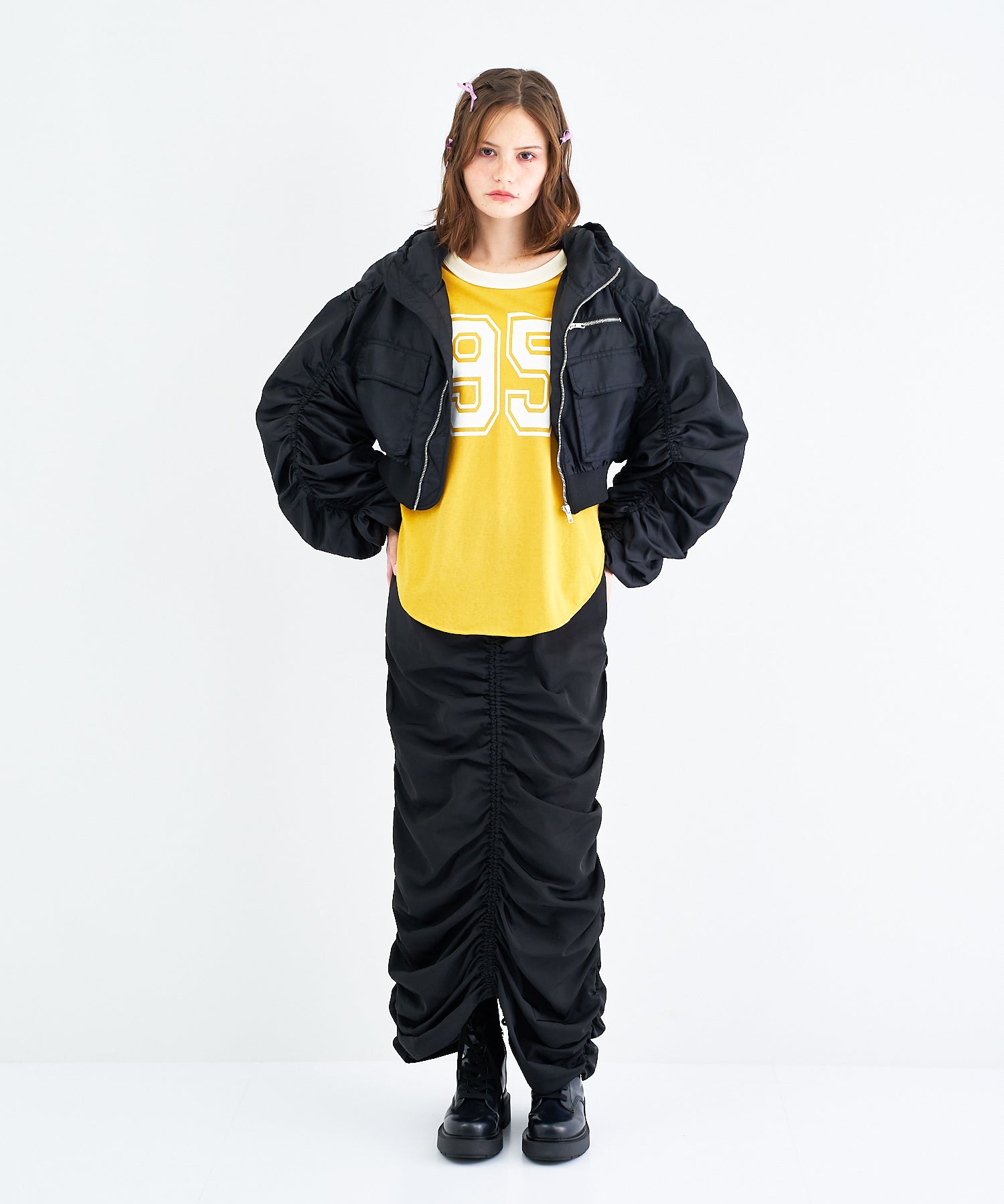ウエストラインが高く脚長効果アリなジャケットです。袖にデザインされたボリューム感のあるシャーリングがドラマティック。やや大きめのフードもかぶったときにかっこよく見えるようにしました。SNS映え間違いなしのジャケットです。