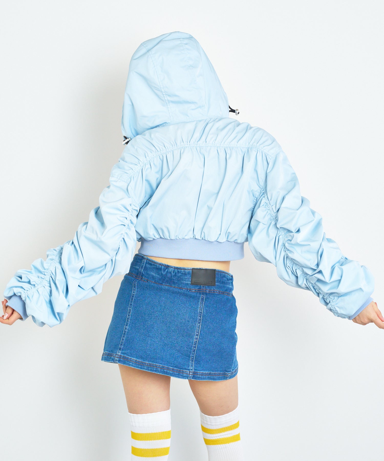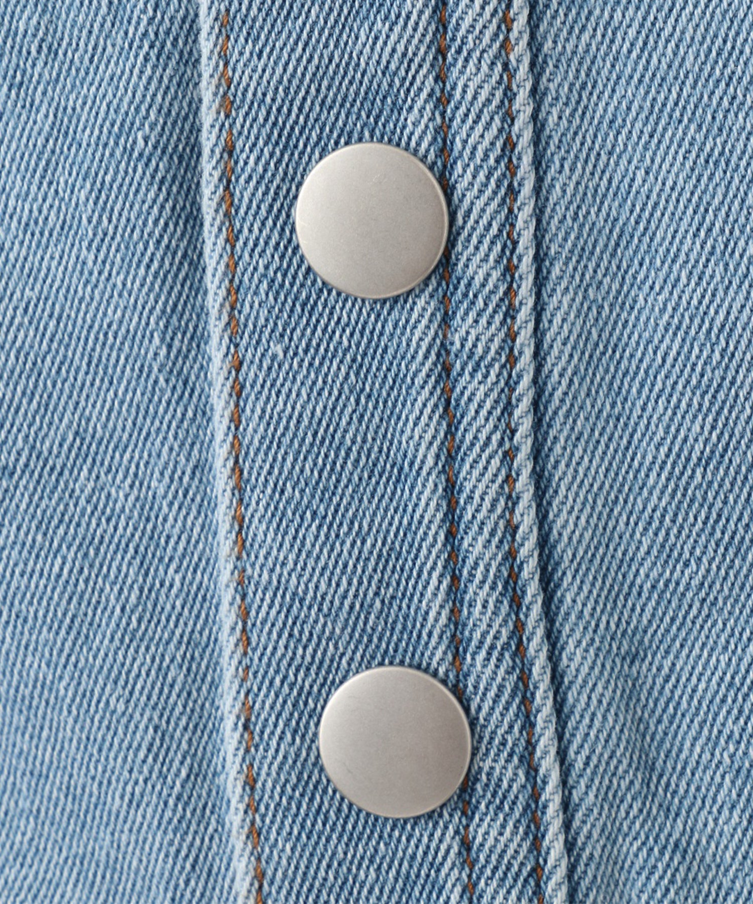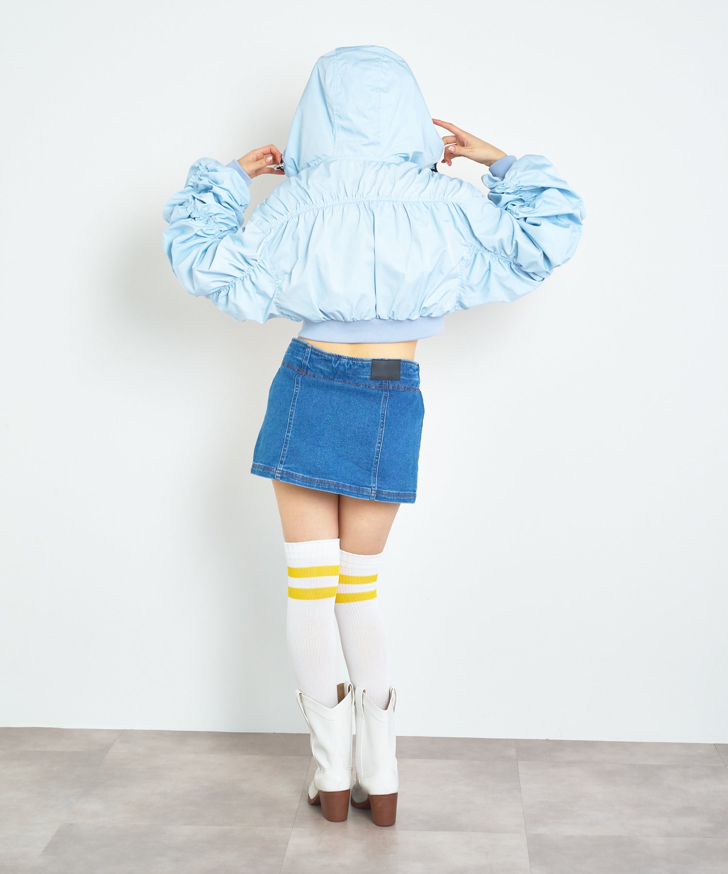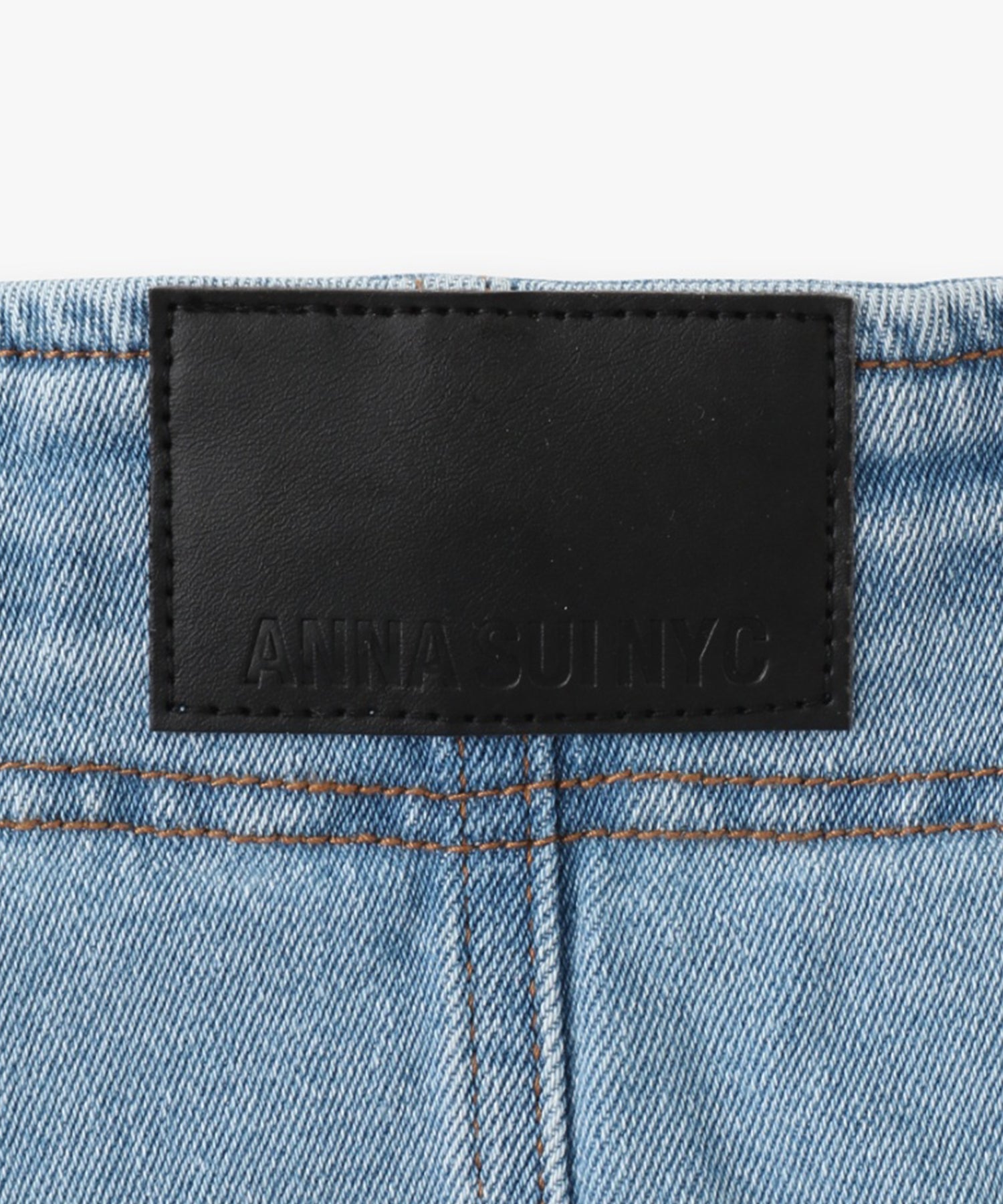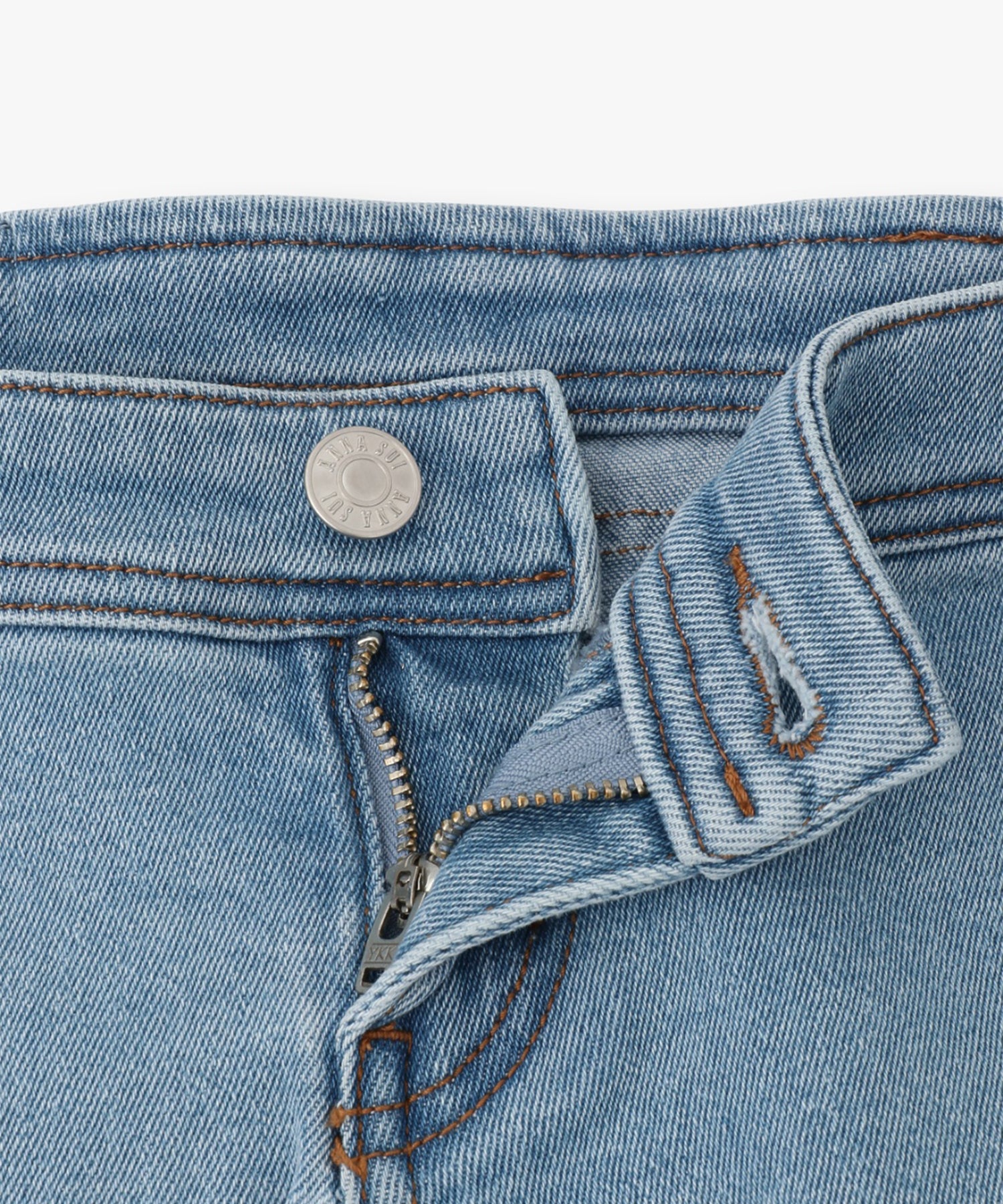 程よくストレッチの効いたデニム素材のスカパン。どこか懐かしさを感じるようなコンパクトなシルエットが魅力的な1着。マイクロミニ丈ですが、内側にパンツが付いているため安心して着用していただけます◎