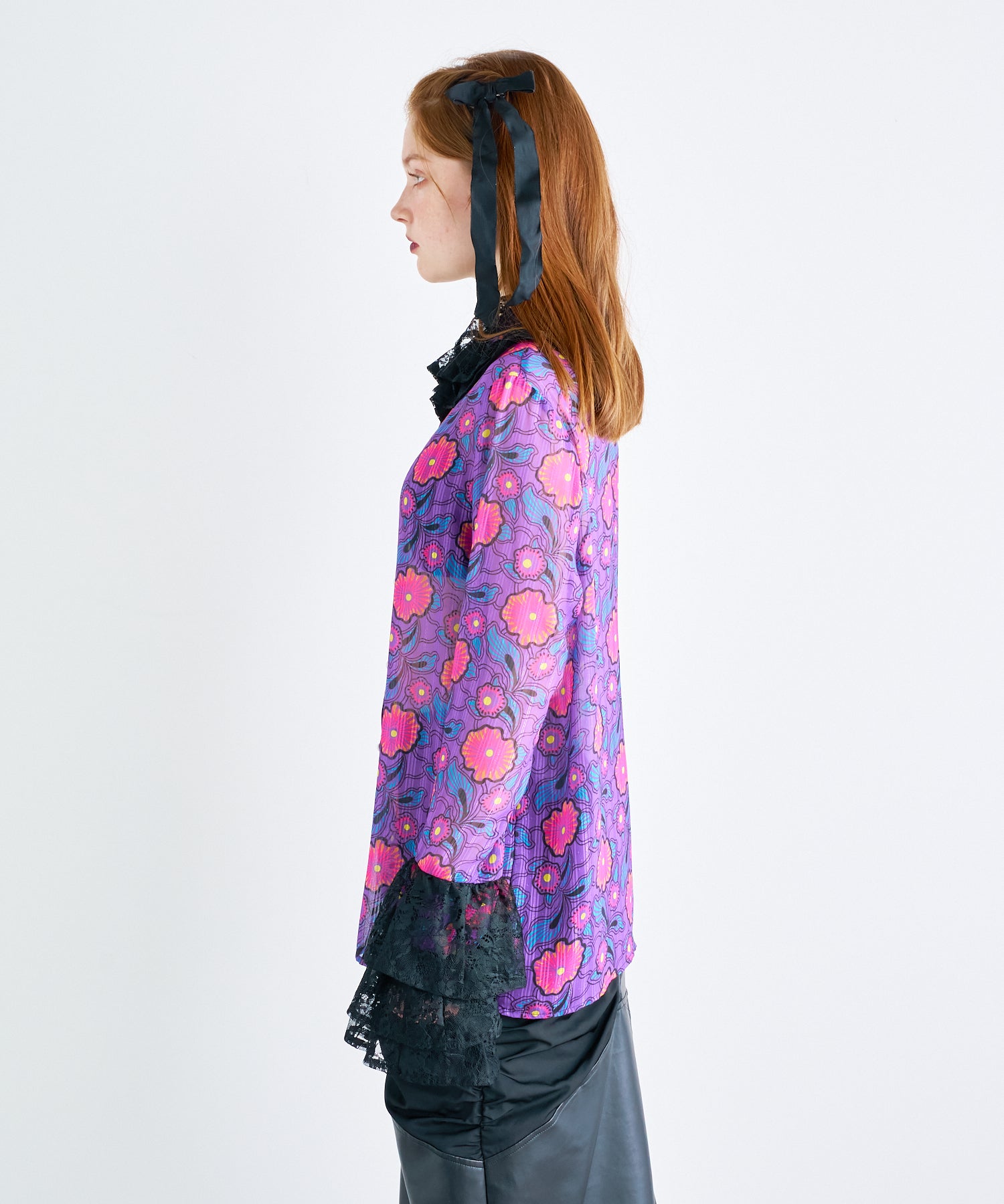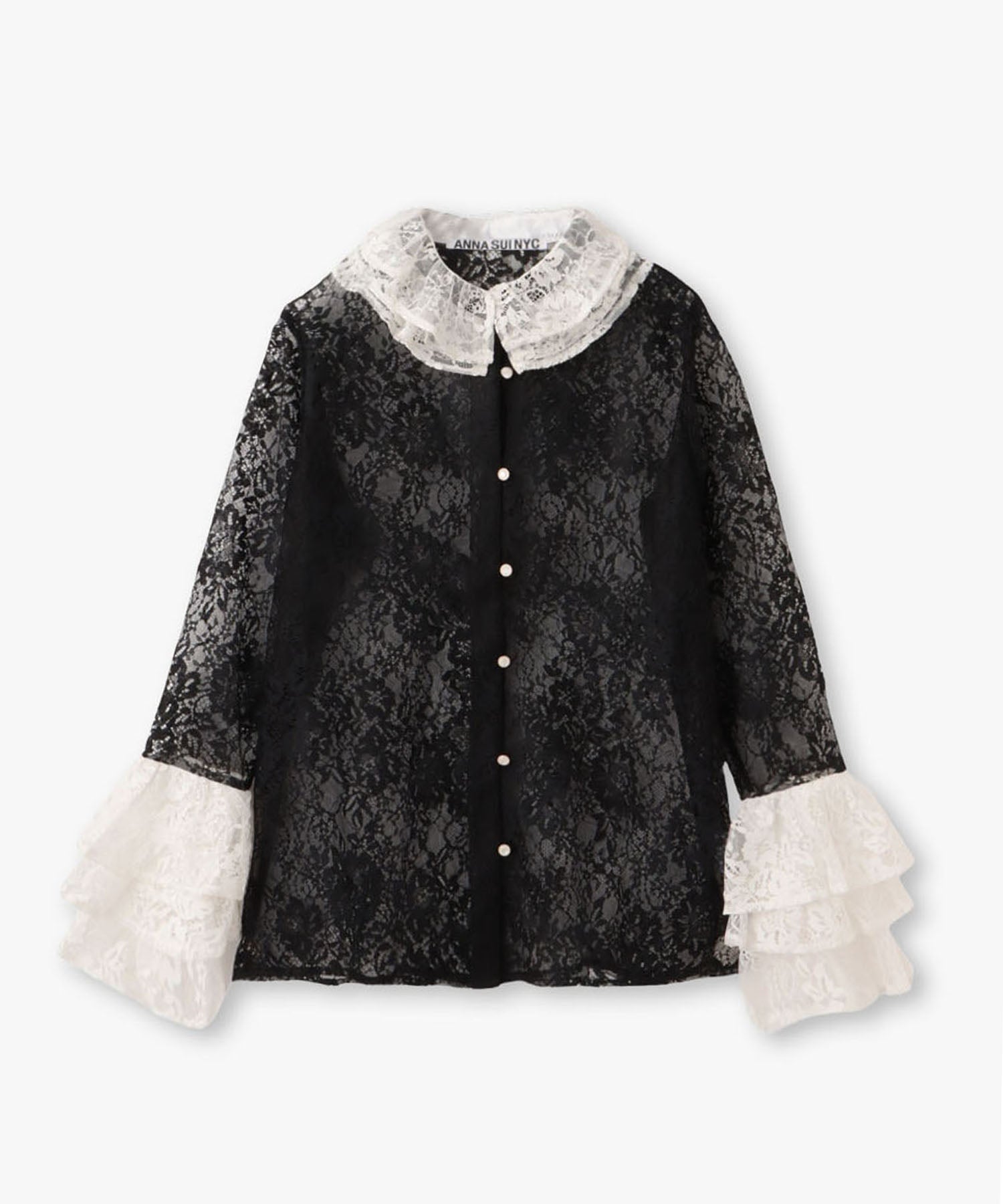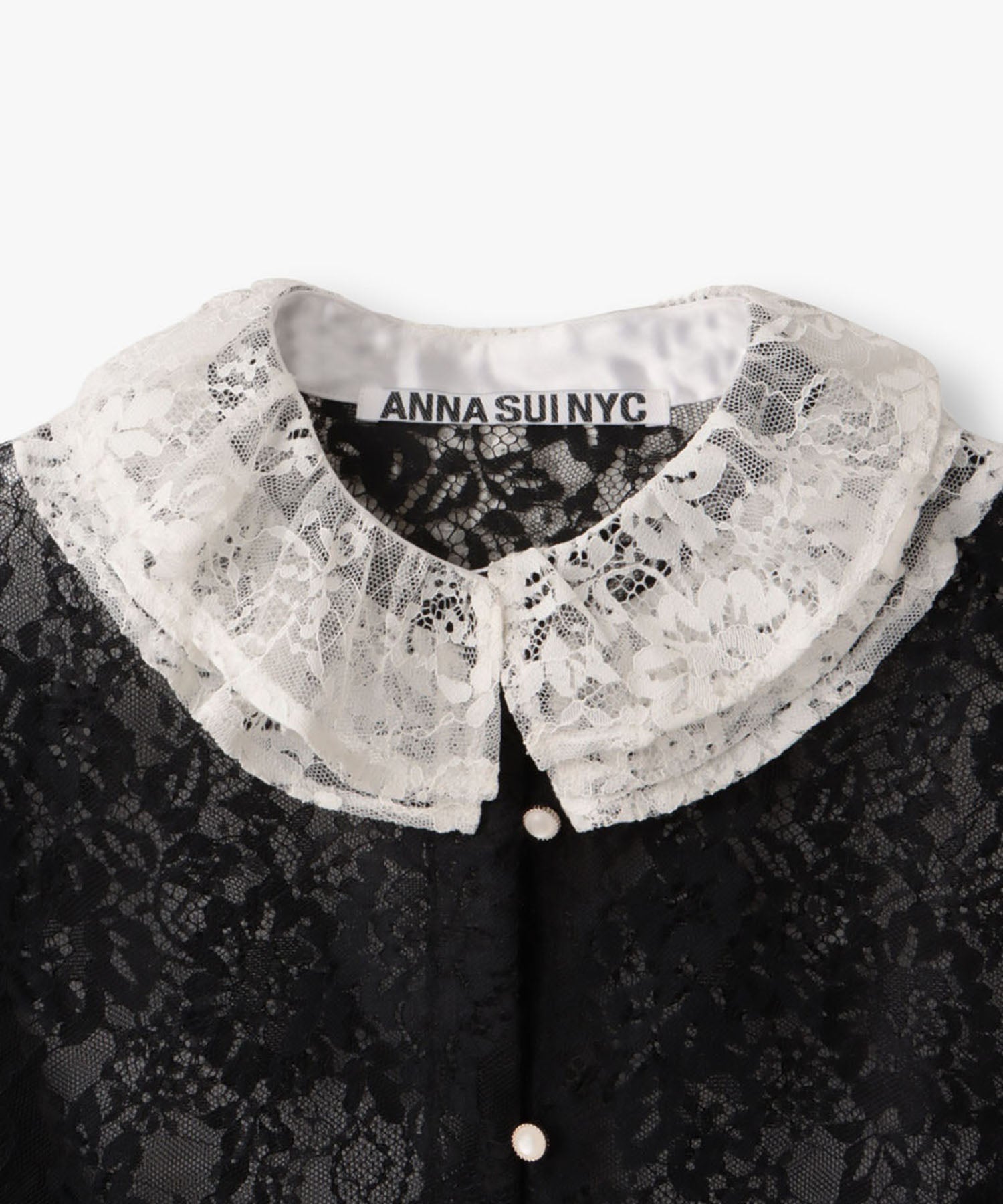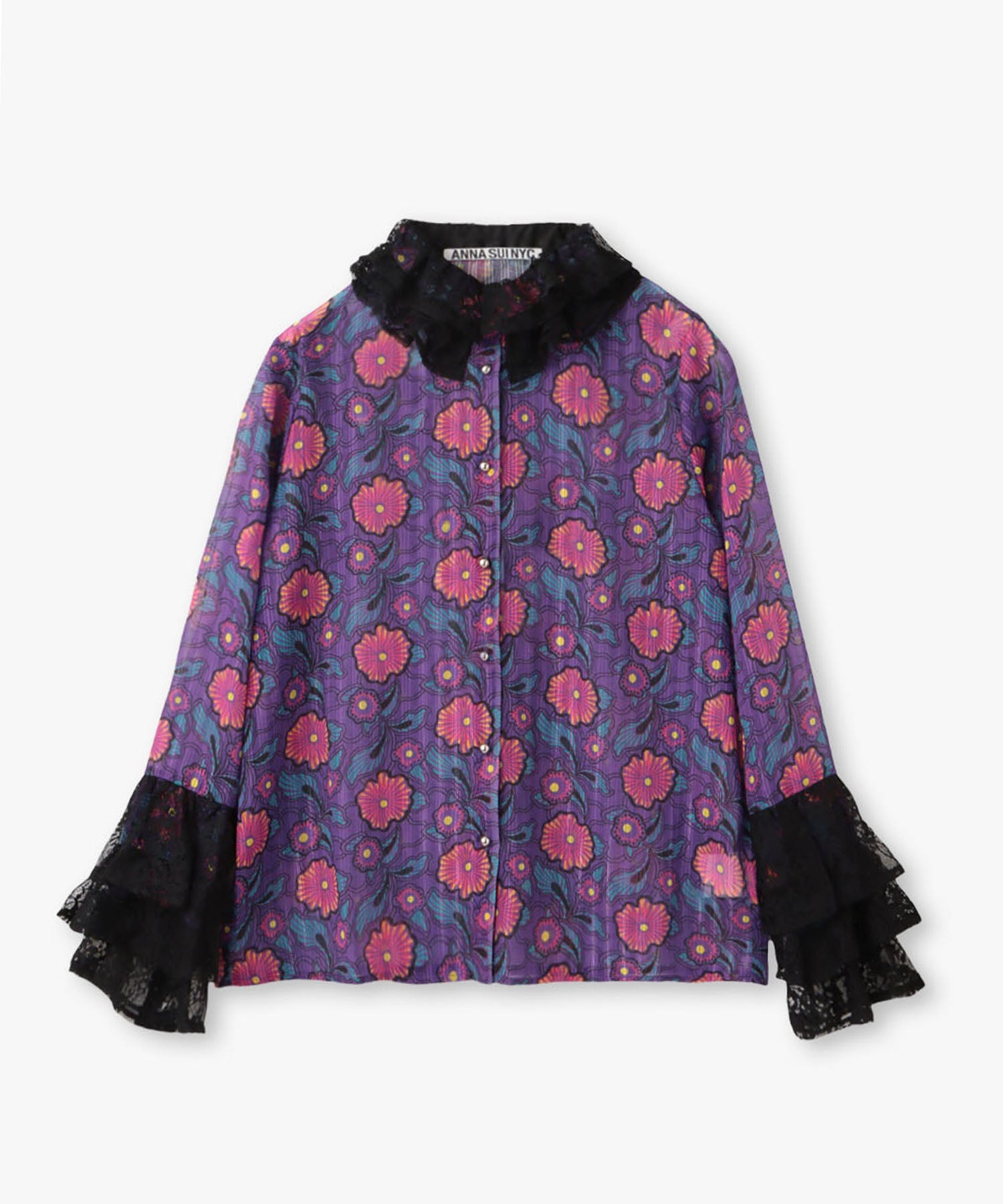 ANNA SUIのディフュージョンライン「ANNA SUI NYC」が、新たにエクスクルーシブラインを発表。このラインは、ANNA SUIの独自の美学を引き継ぎ、ドラマチックなデザインのアイテムを展開しています。贅沢に施されたフリルが高貴さを際立たせてくれるスーパーフリルブラウス。BLACKは全てレース生地で縫製されたラグジュアリーな一品に。PURPLEはANNA SUI オリジナル柄を"ANNA SUI NYC"独自の色彩で落とし込んだ唯一無二のプリント生地です。PURPLEとBLACKでボタンのデザインを分けており細部までこだわり抜いたアイテムとなっています。