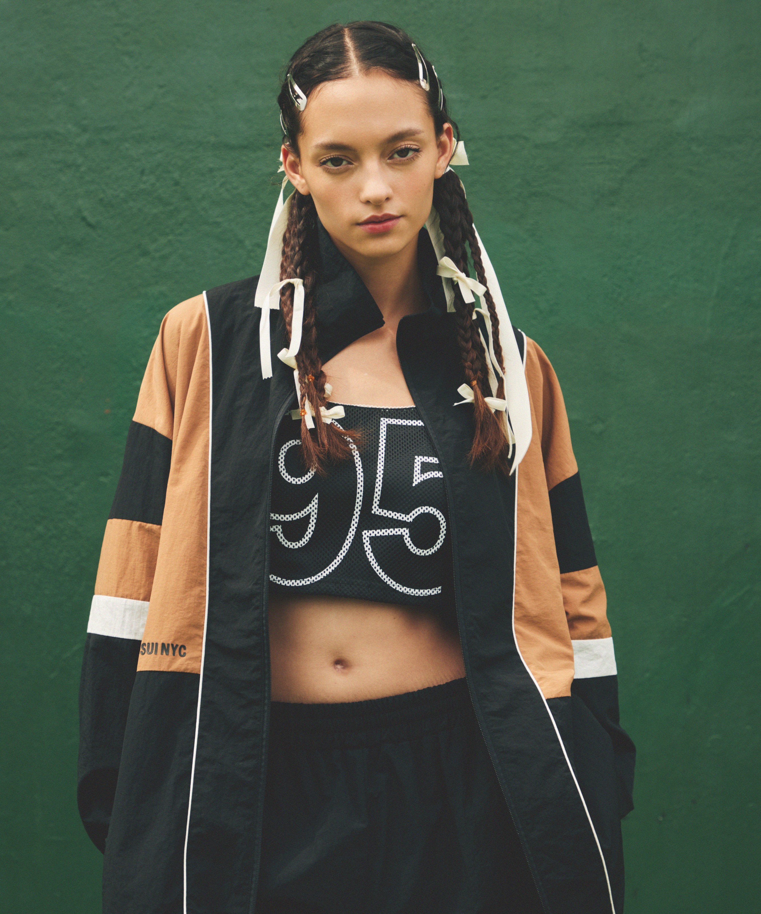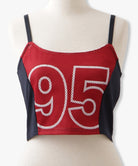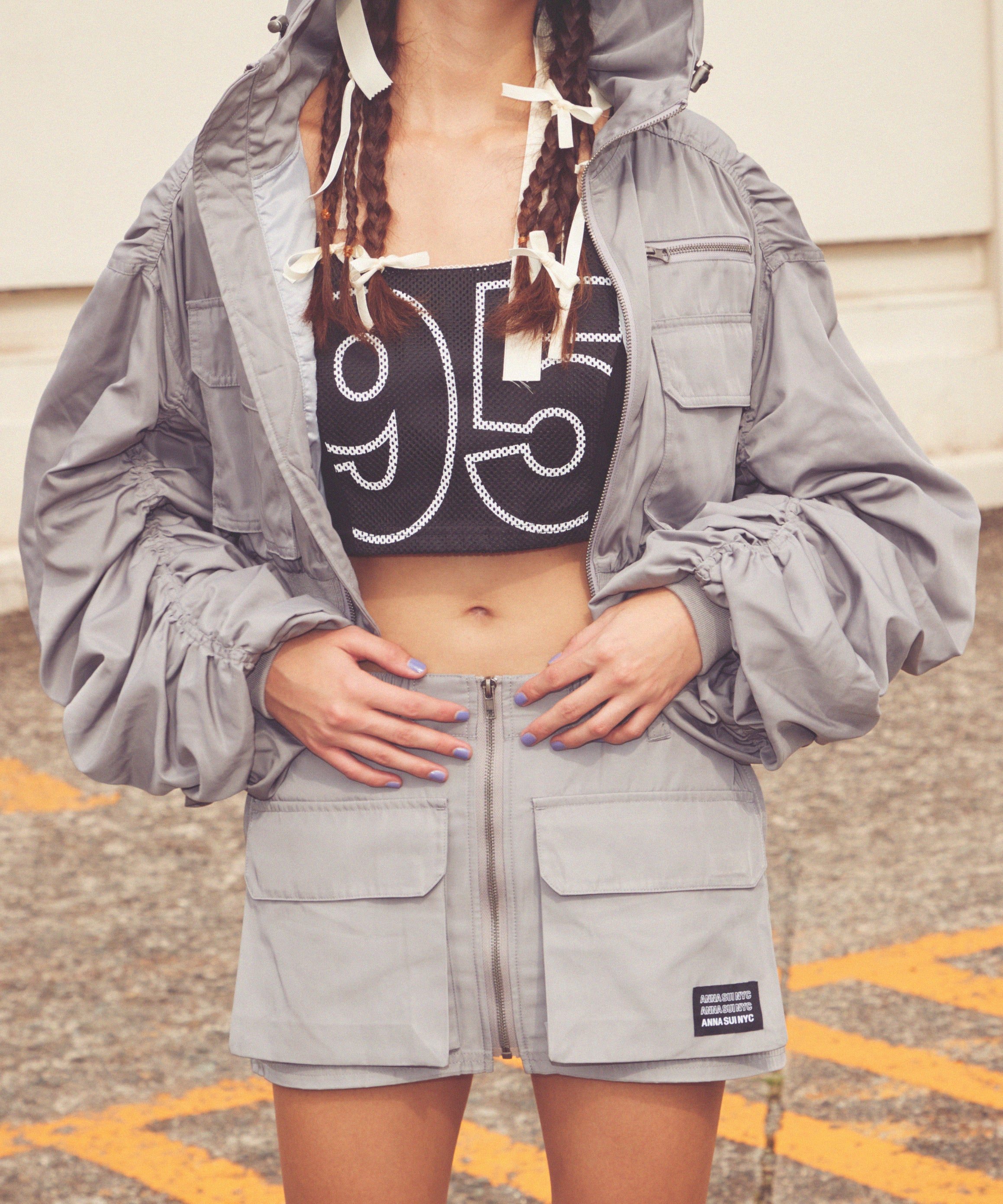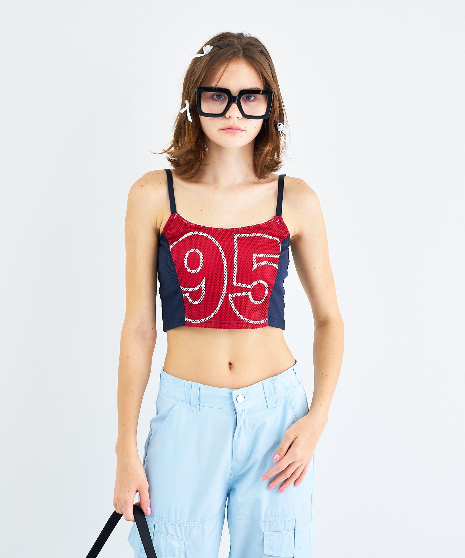 中央にプリントされたナンバリングロゴが目を惹くスポーツテイストのレイヤードアイテム!一見着こなしが難しそうに見えますが、ガーリーなアイテムとも相性が良く幅広いスタイリングを楽しんでいただけます。