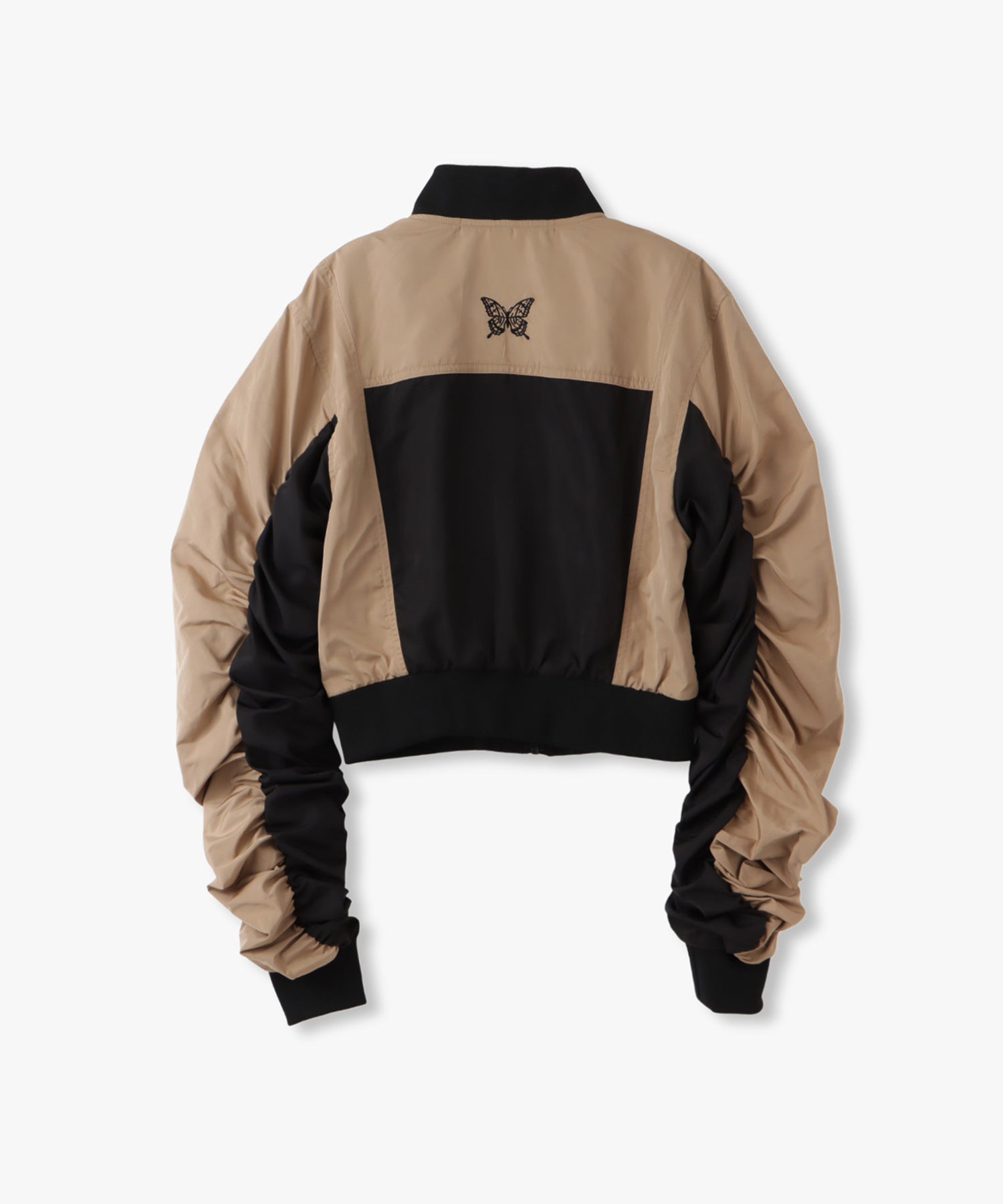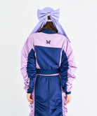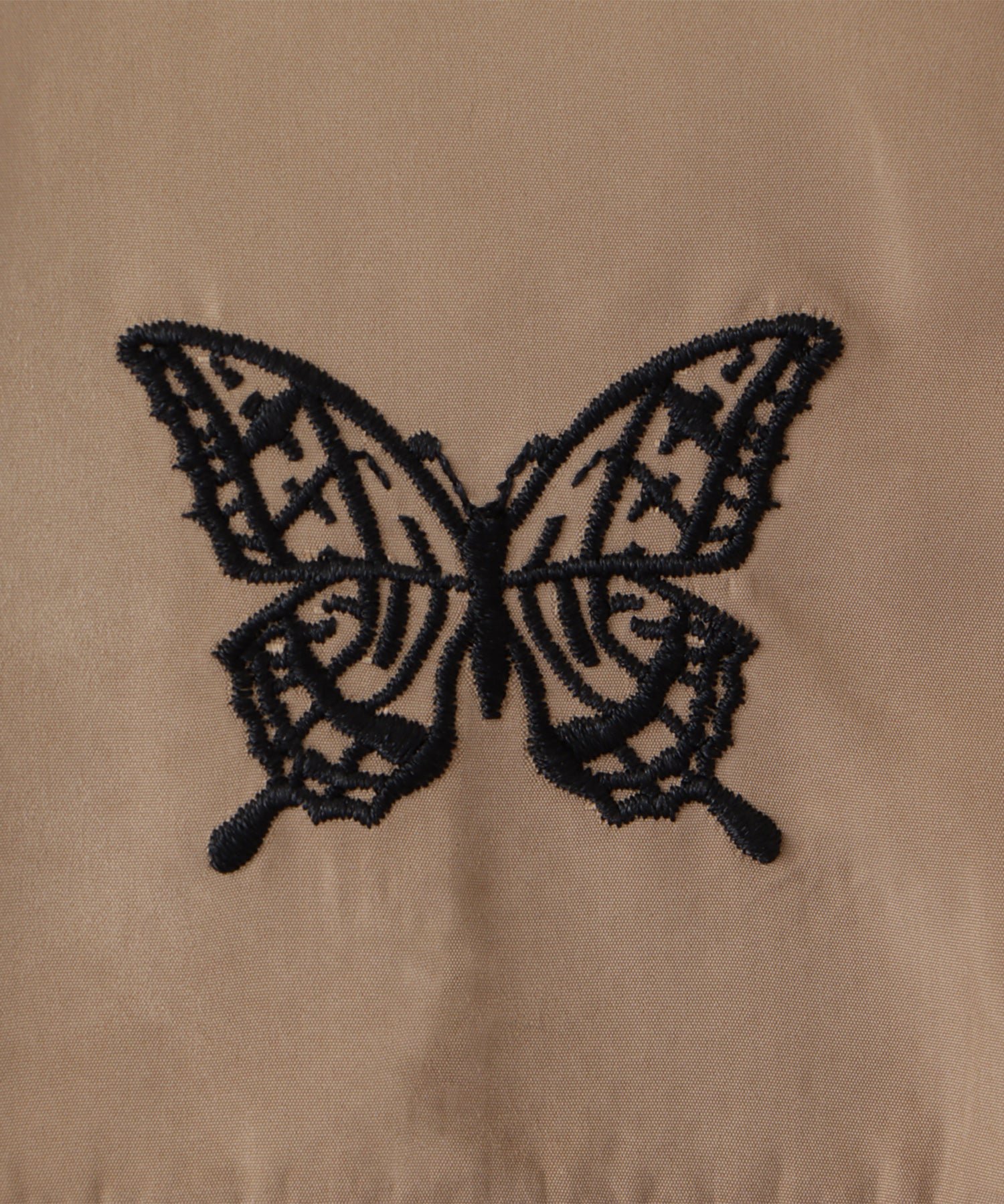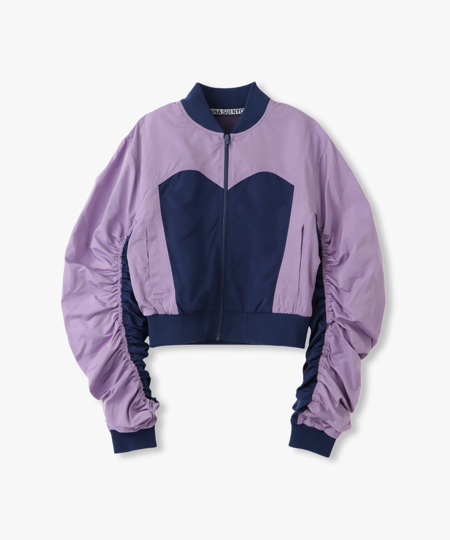 バイカラーが印象的なトラックジャケット。フロントがビスチェのような切り替えになっており唯一無二なデザインに。コンパクトなサイジングですが、袖にはシャーリングを寄せており存在感があります。背中にはANNA SUIの象徴である蝶モチーフの刺繍が入っています。セットアップで"シャーリングドロストロングスカート"を合わせると完成度の高いスタイリングを楽しめます!