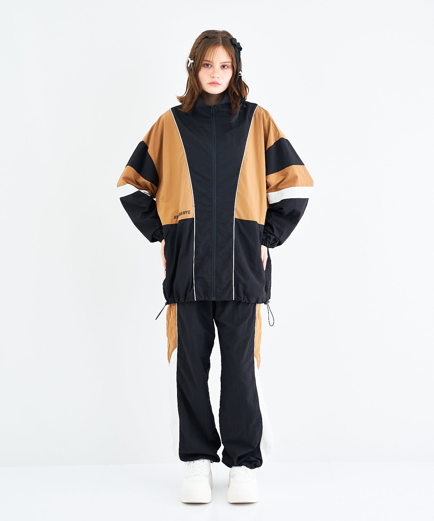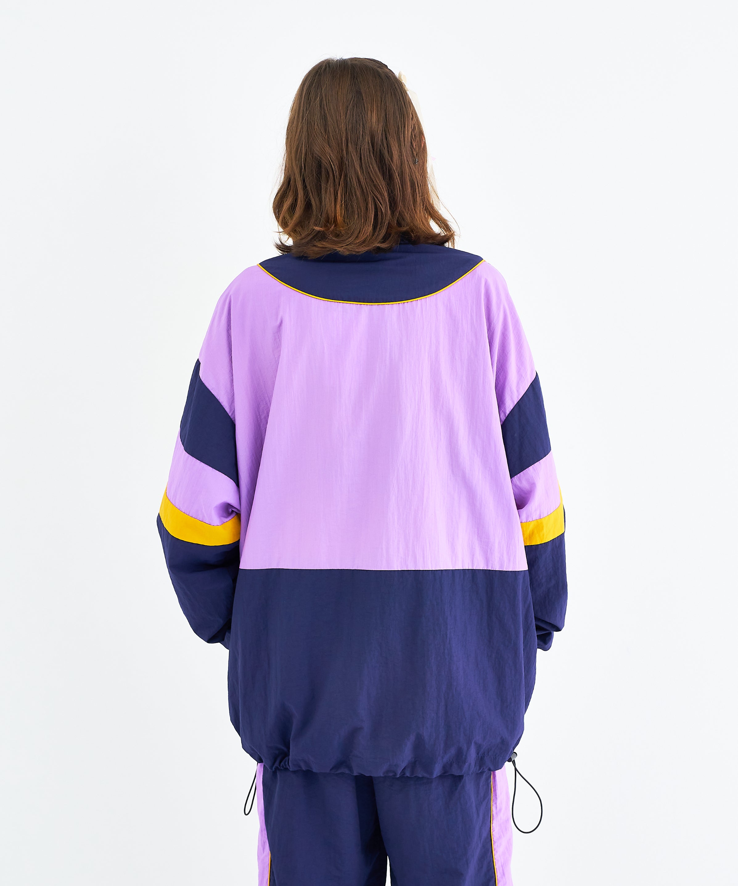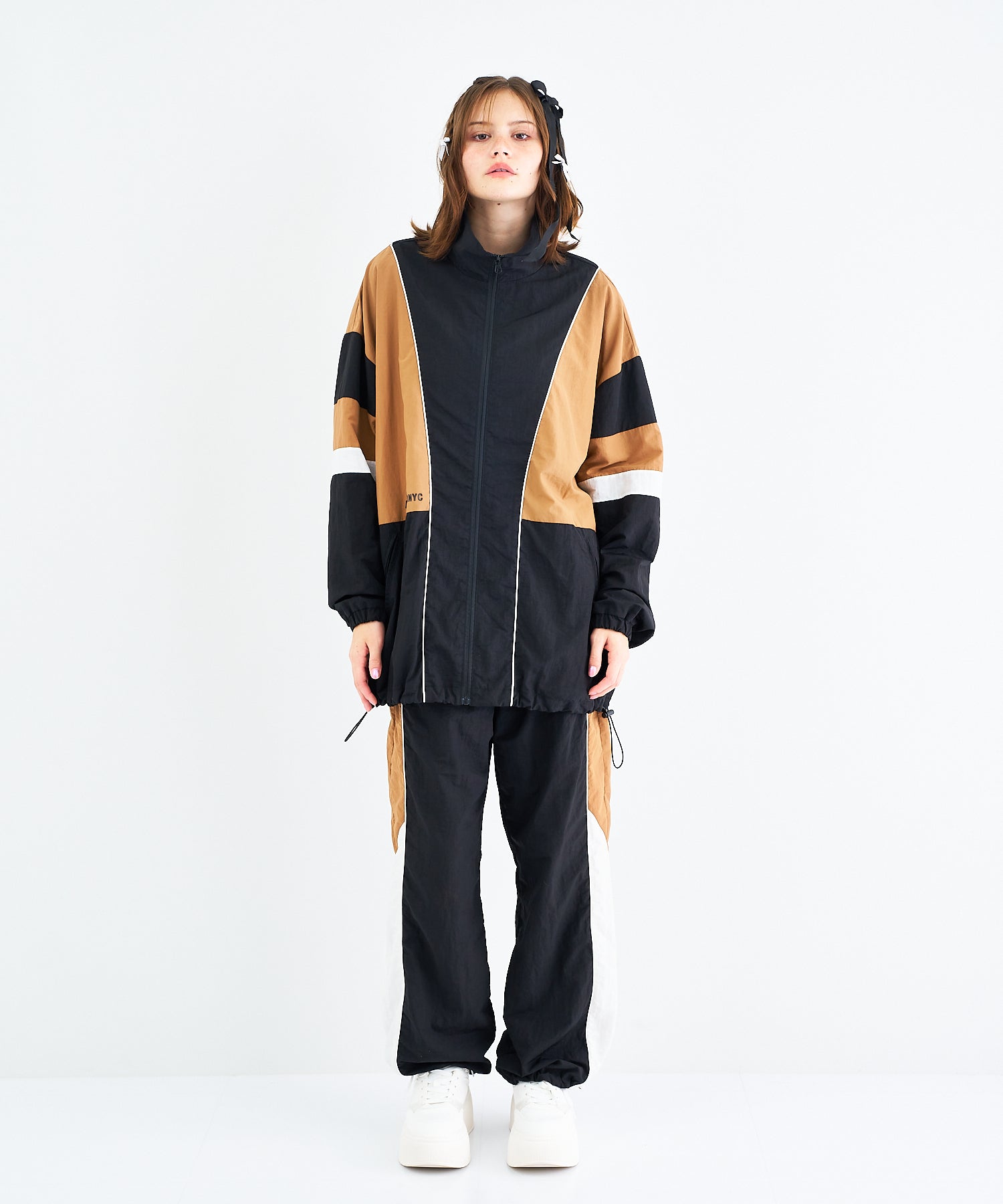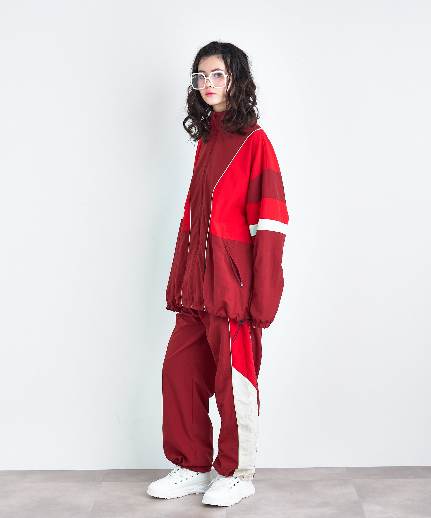 レトロな雰囲気を感じさせるカラーブロックのパーツ切替が印象的なトラックジャケット。さらっと軽い着心地で、ゆったりとしたトレンド感のあるシルエットが抜け感を演出。裏地はメッシュ素材を採用、ムレを軽減して爽やかなコンディションを実現しました!セットアップで"カラーブロックトラックパンツ"を合わせると完成度の高いスタイリングを楽しめます。