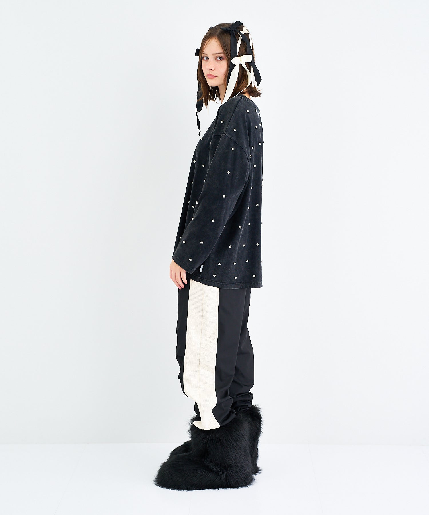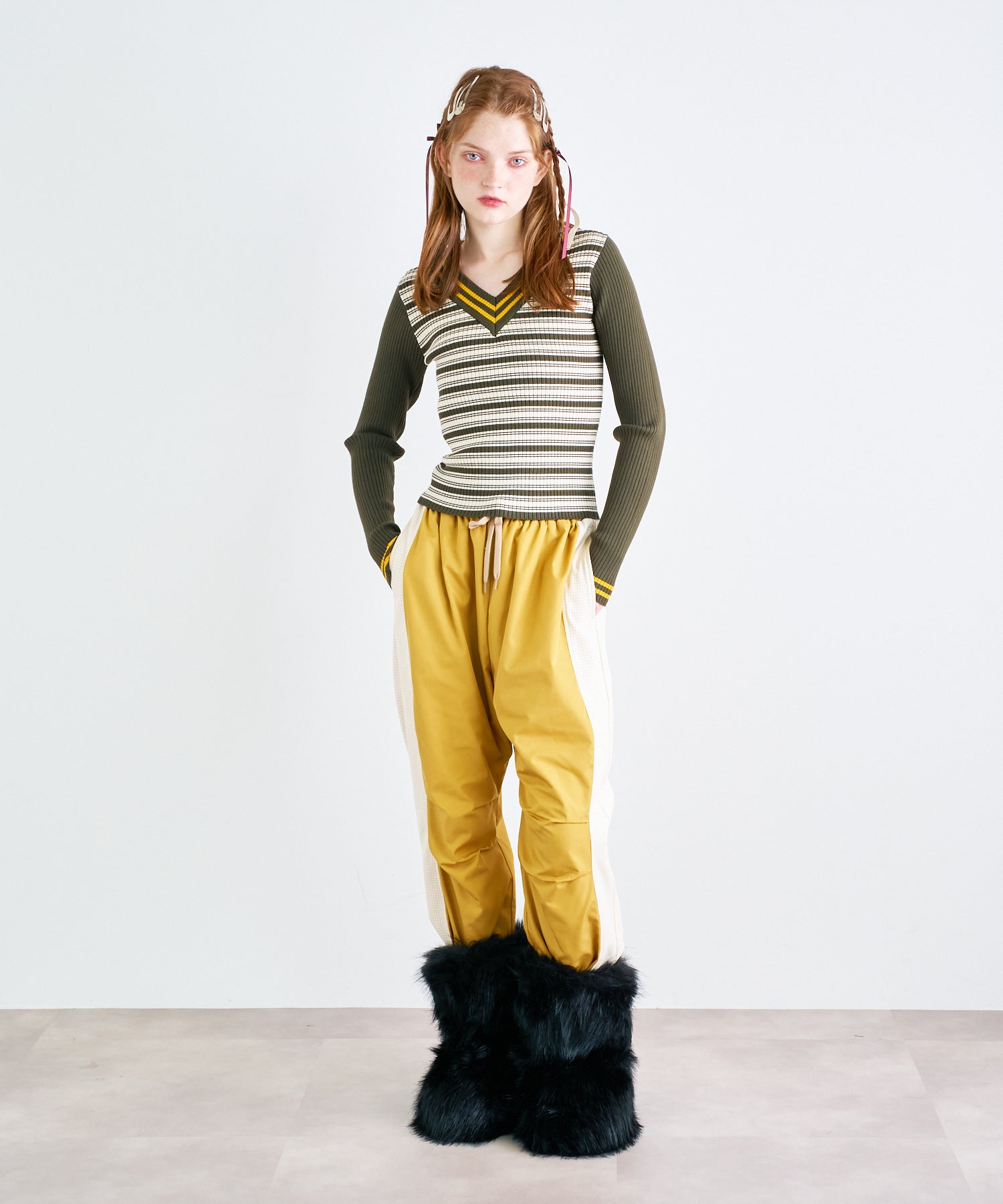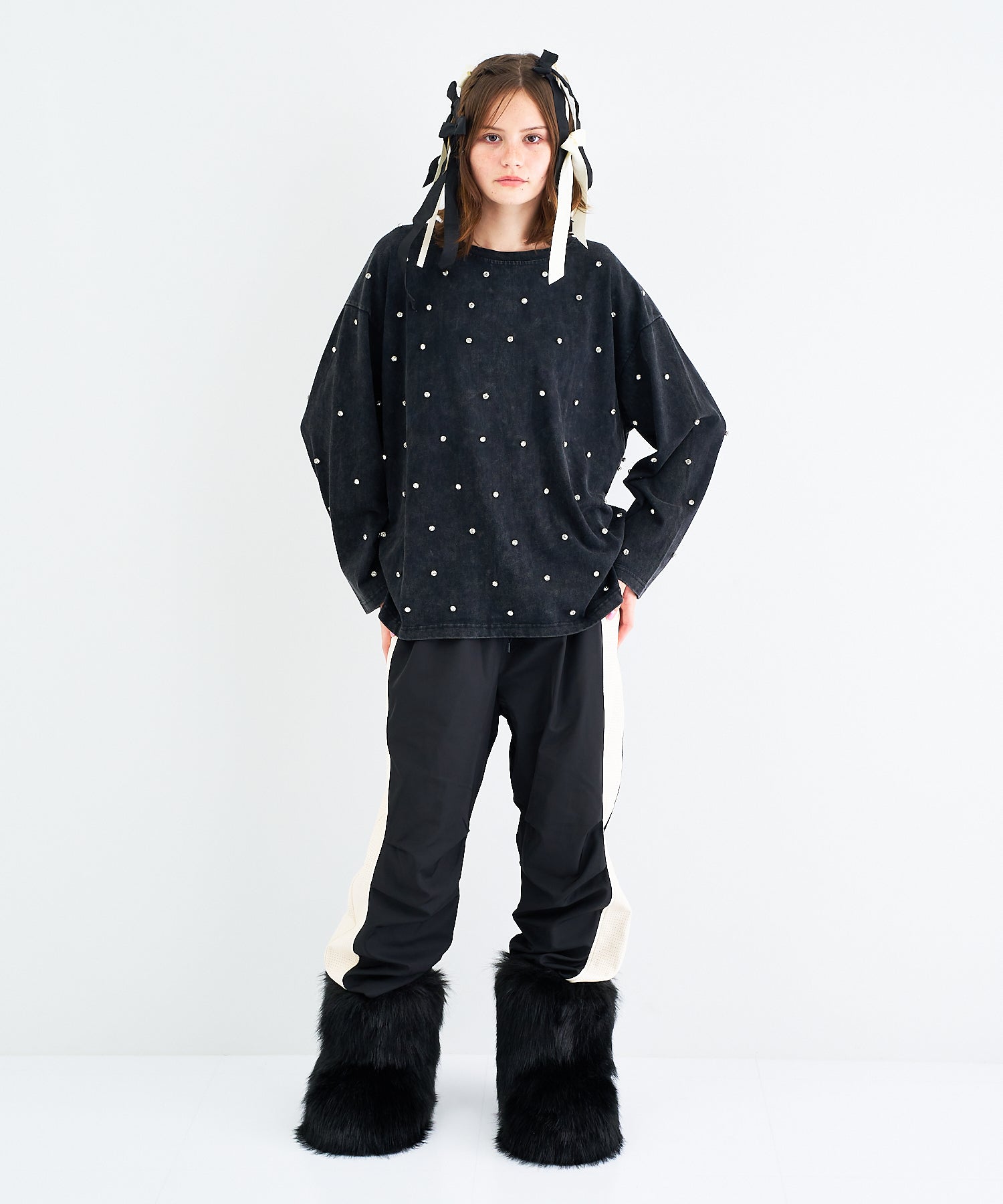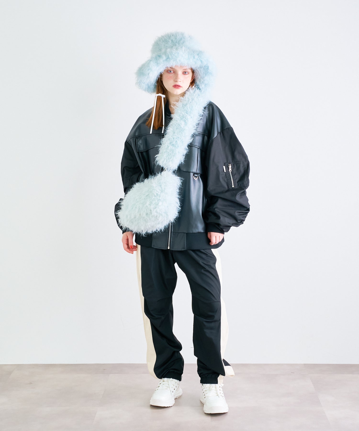 セットアップで、"シャーリングフェイクレザージャケット"と一緒にスタイリングするのもオススメです。