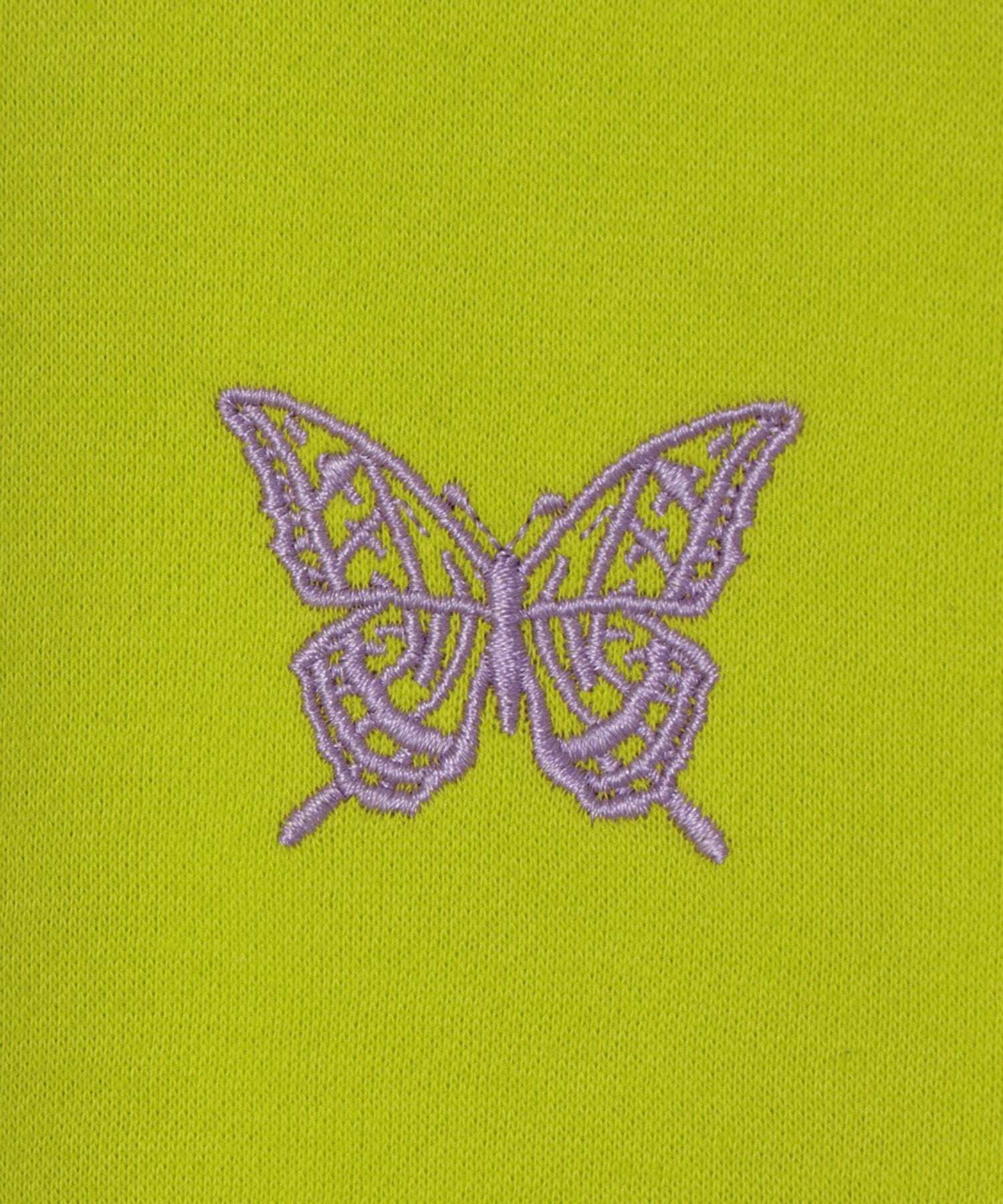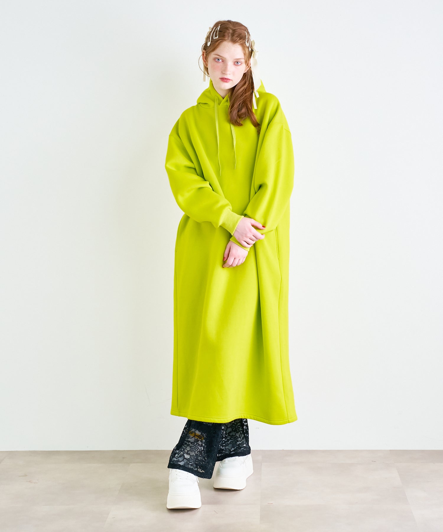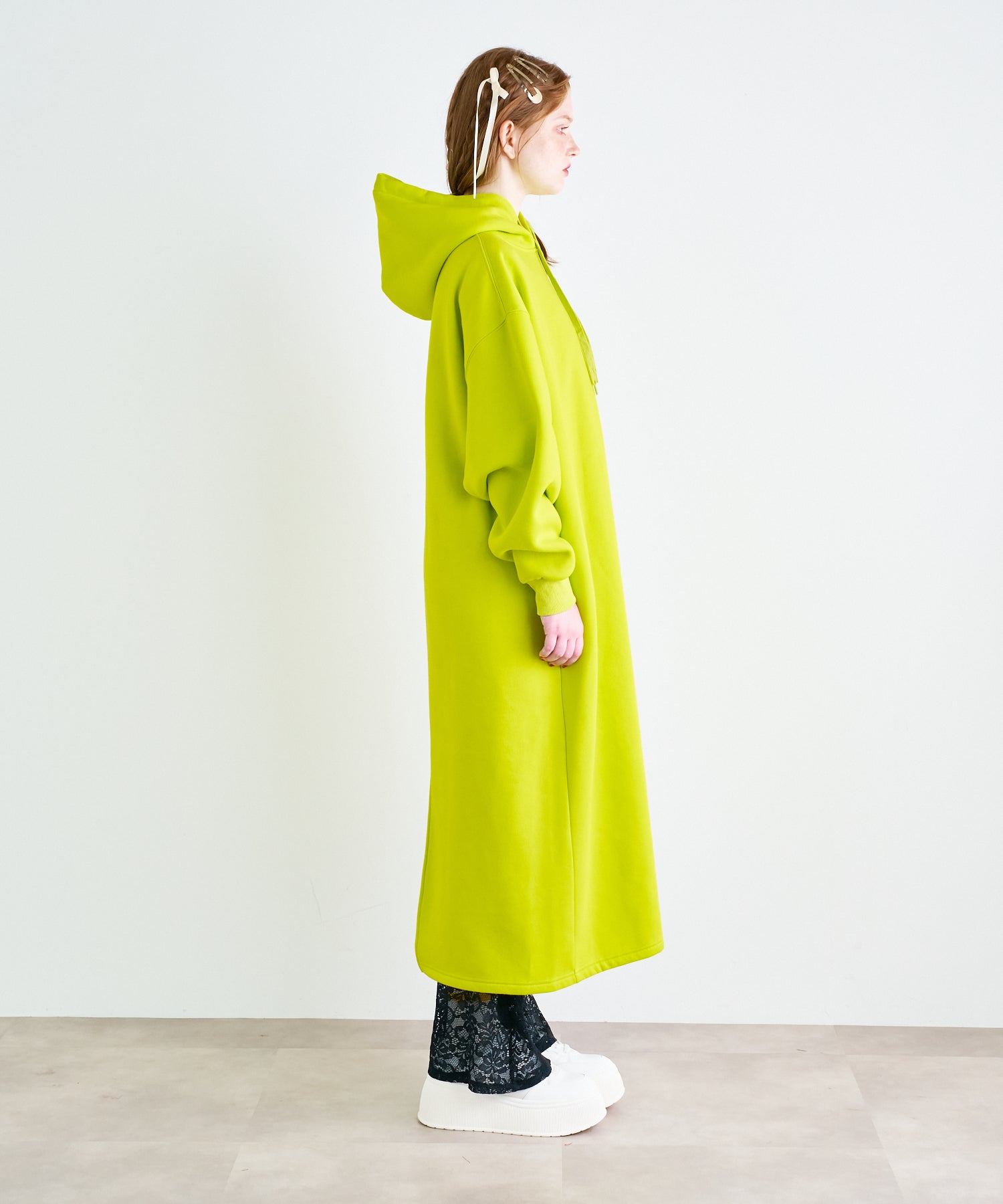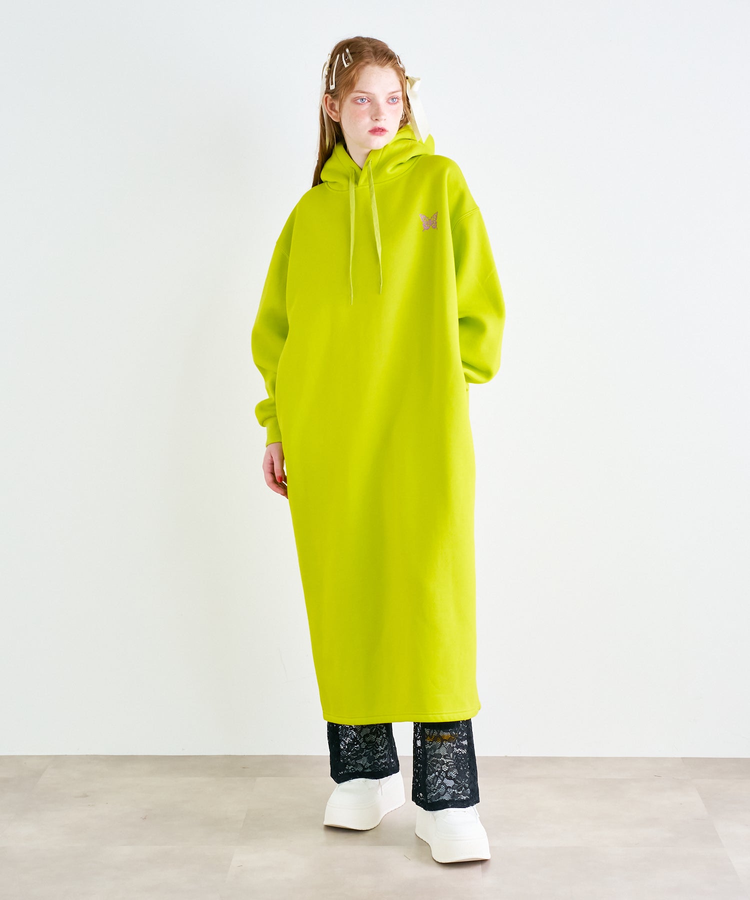 柔らかくもっちりとした裏起毛のワンピースはオーバーサイズシルエットで、全体を暖かく包み込んでくれます。フードも付いておりボリューム感ありシンプルなデザインながらも存在感のあるワンピースです。胸元の ANNA SUI NYC の蝶々モチーフ刺繍がかわいい今期ヘビロテ間違いなしのイチオシアイテムです。