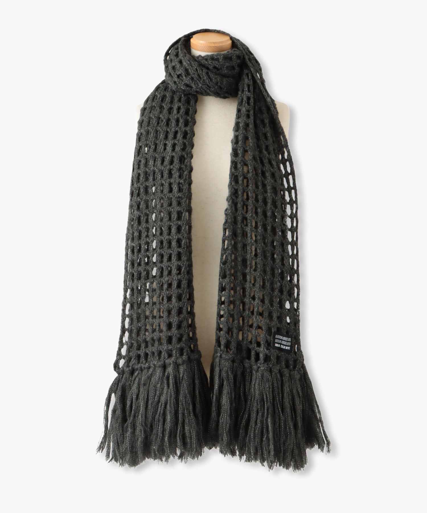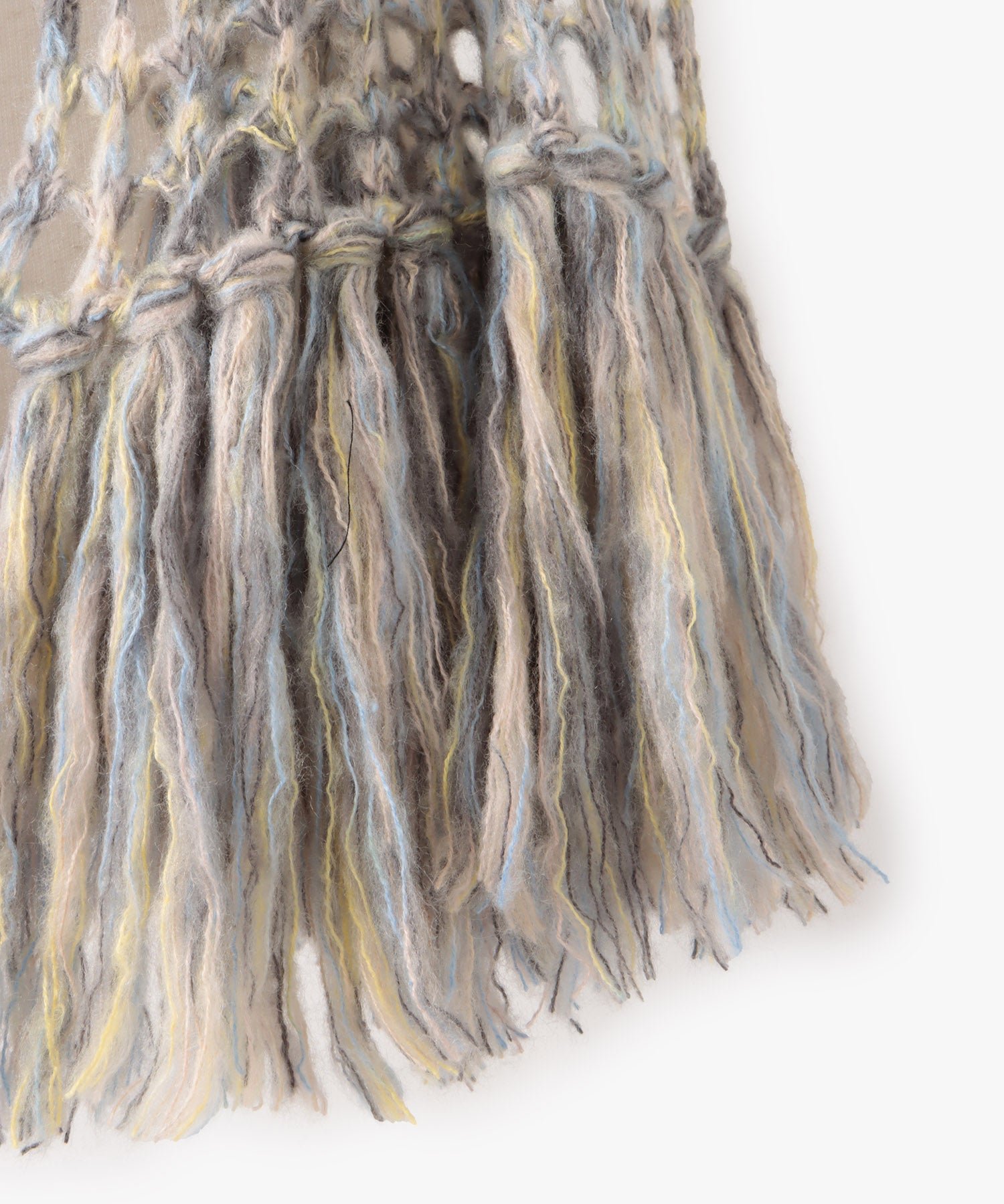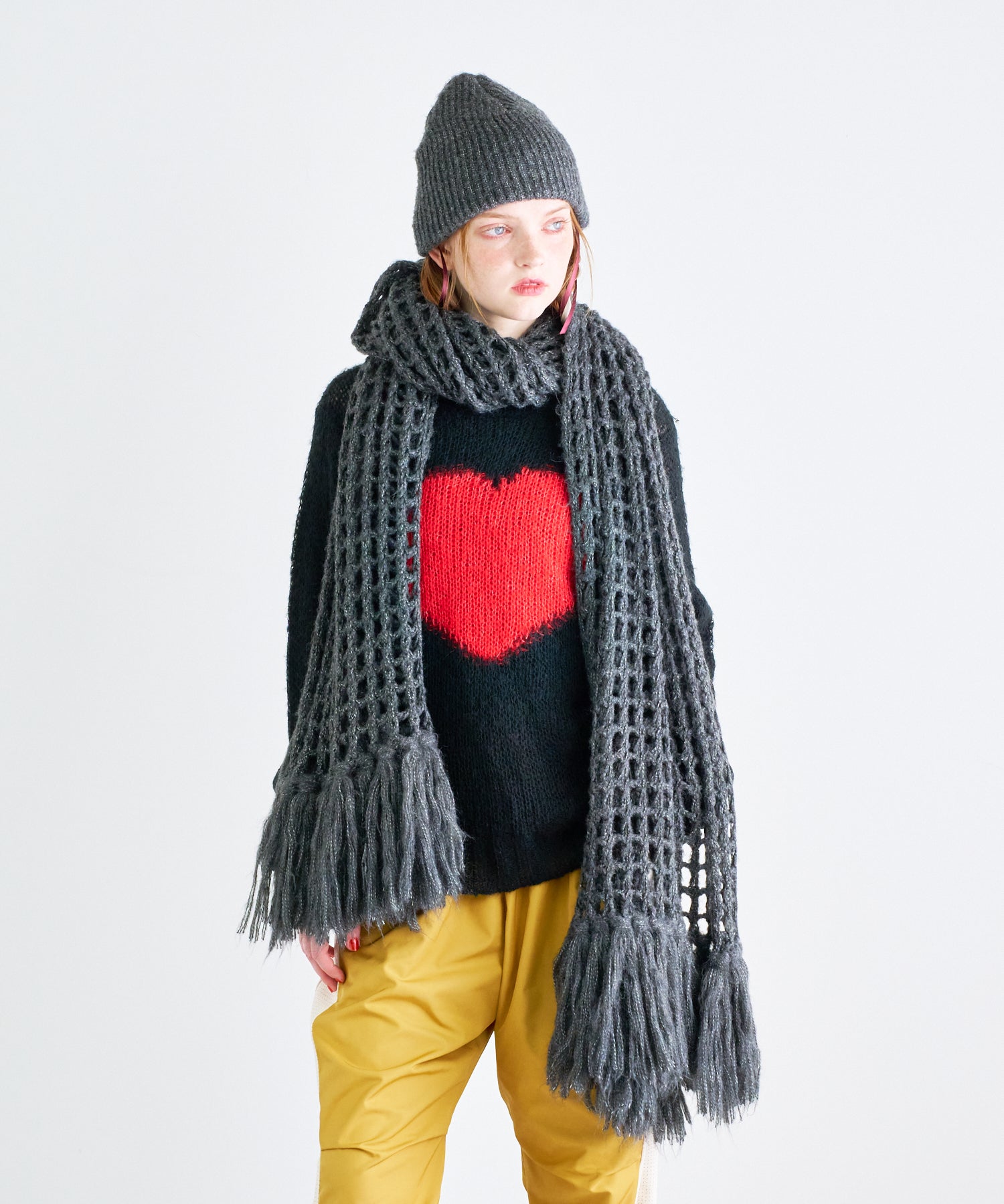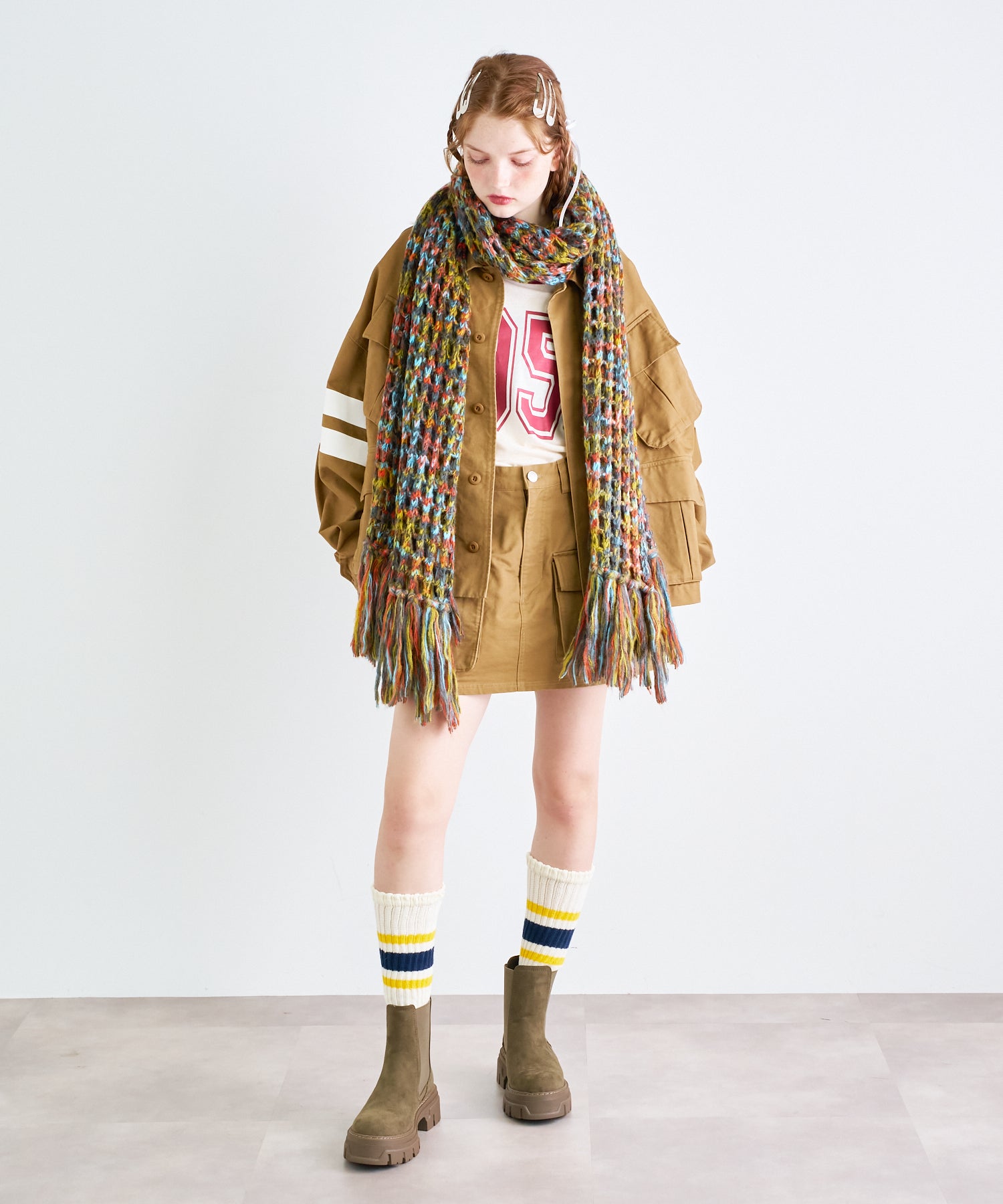 ミックスカラーがスタイリング映えする今季一押しのアイテム。カラーによって雰囲気が異なるので自分に合うカラーを見つけていただけます。ボリューム感たっぷりのシルエットと抜け感のある格子編みのコントラストがユニークなマフラーは他では出会えないANNA SUI NYCらしいアイテムです。