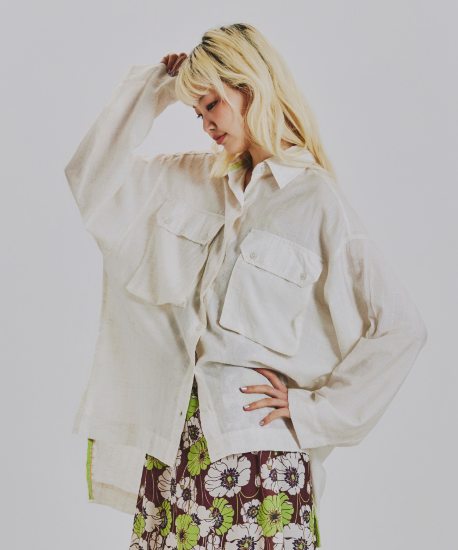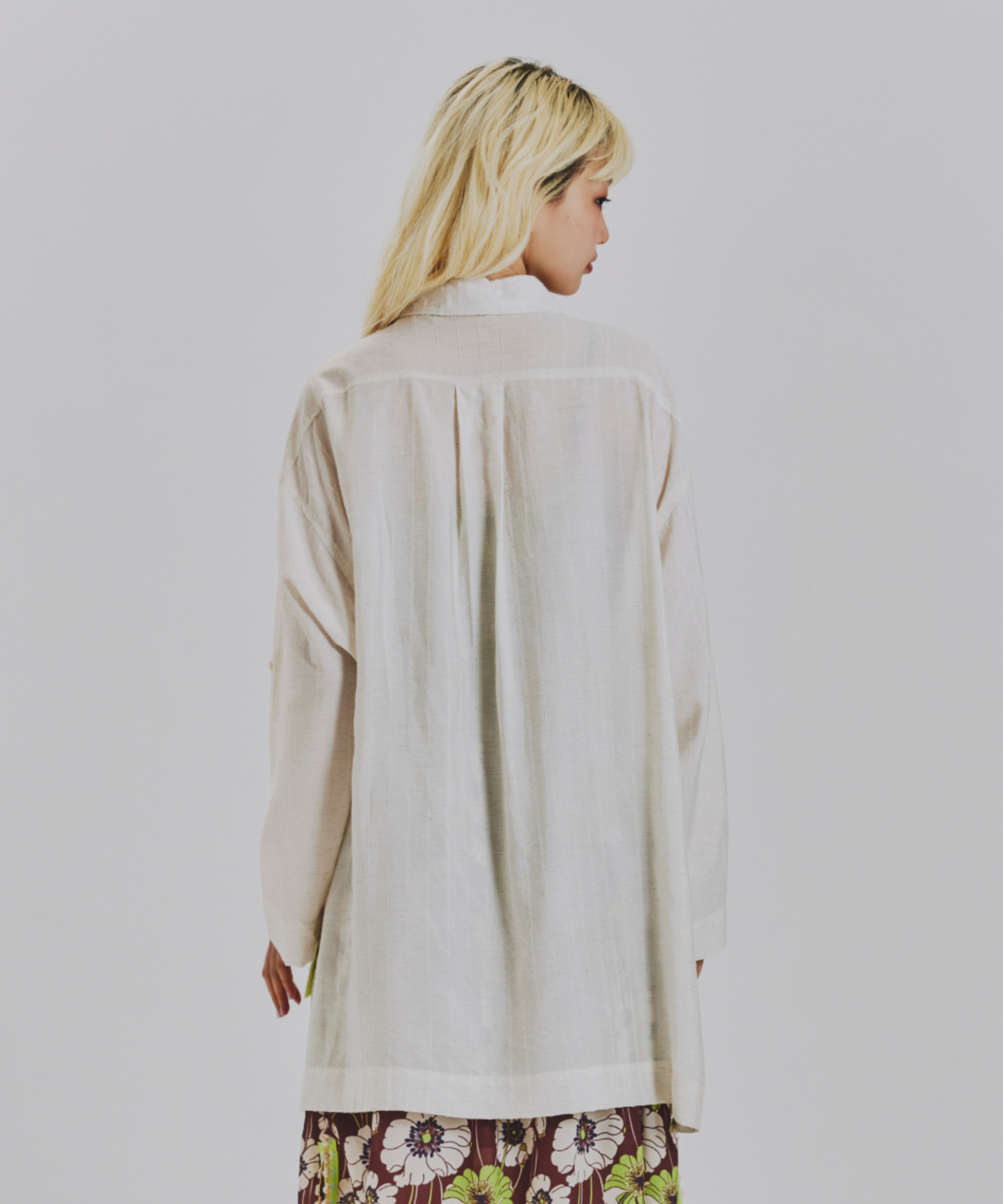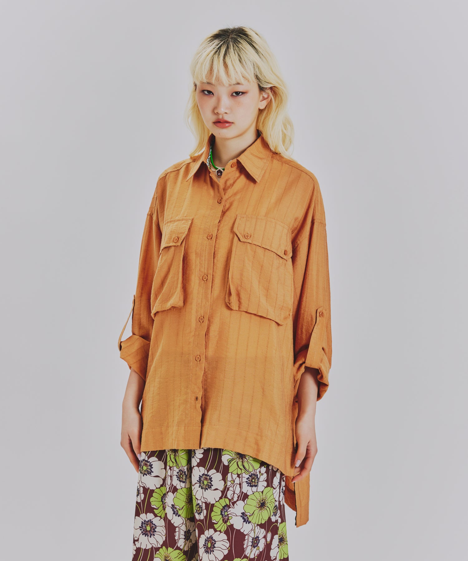 袖をまくってボタンで留められるロールアップ仕様や、季節の変わり目に重宝する軽やかな素材感に加え、サイドスリットと前後差のある着丈がフロントをすっきり見せつつバックに動きを出す絶妙なシルエットを叶えます。