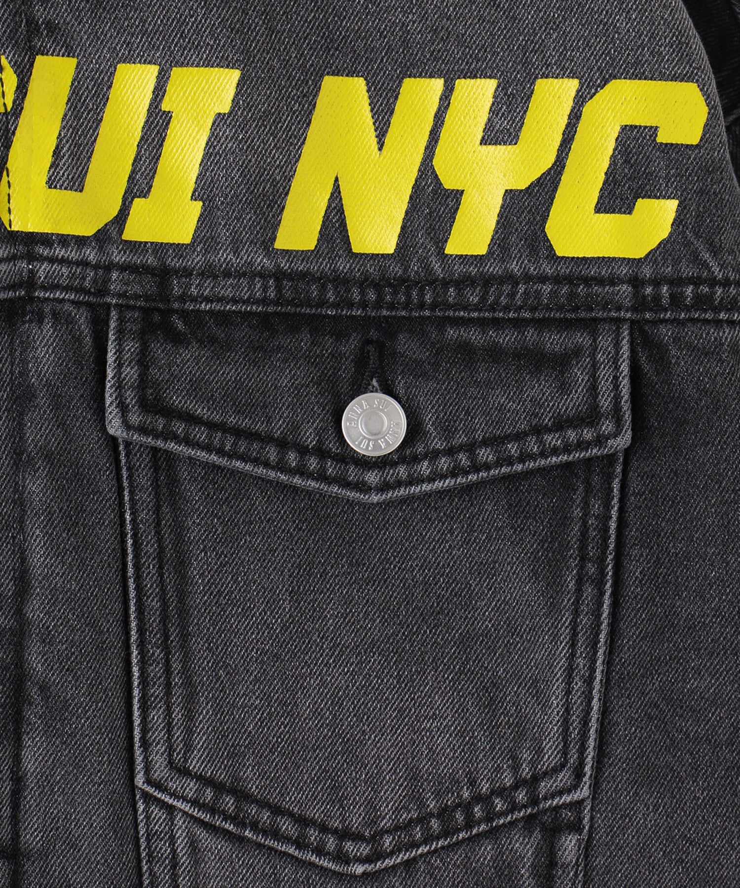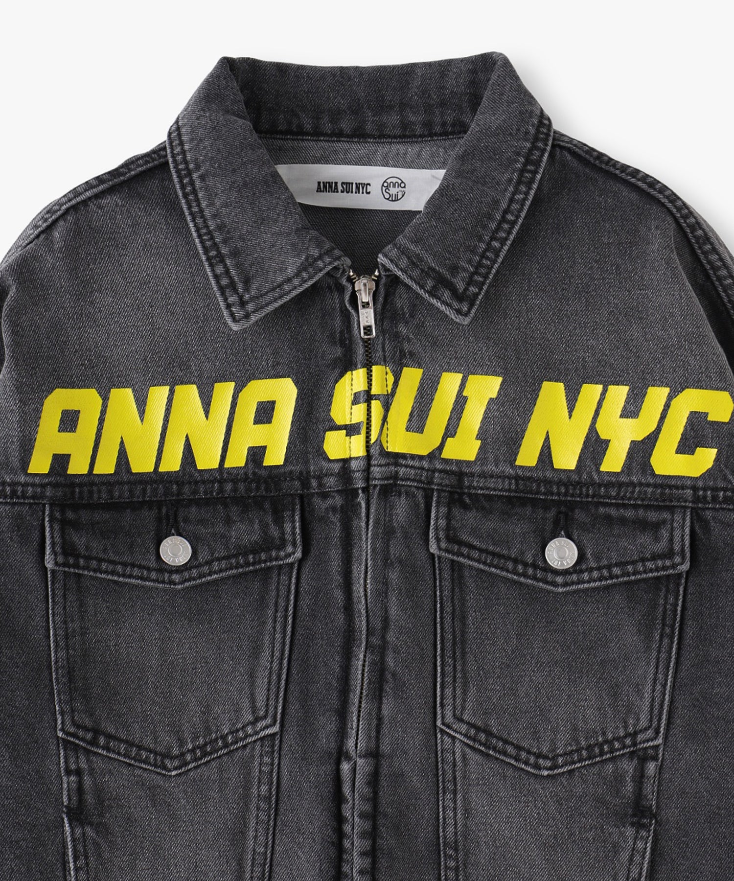 フロントにあるANNA SUI NYCのビッグロゴが目を引くデニムジャケット。
