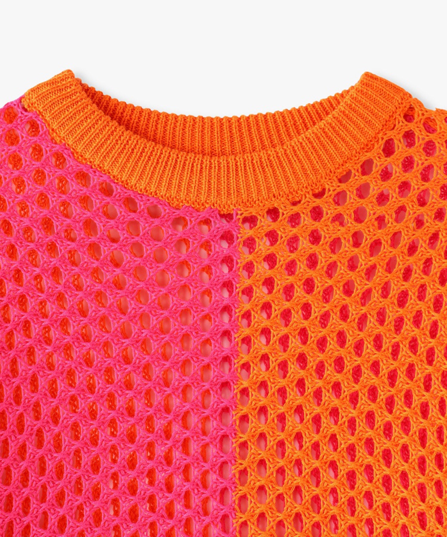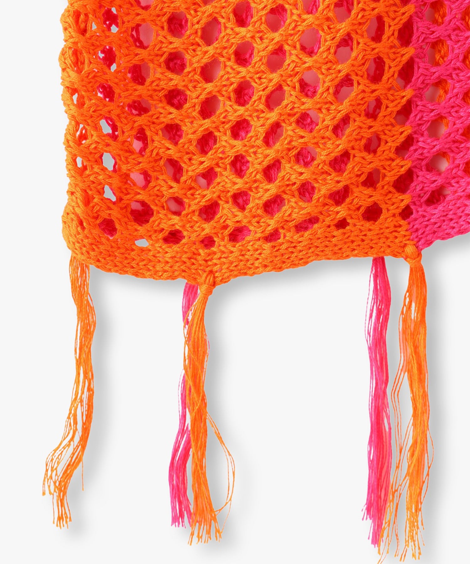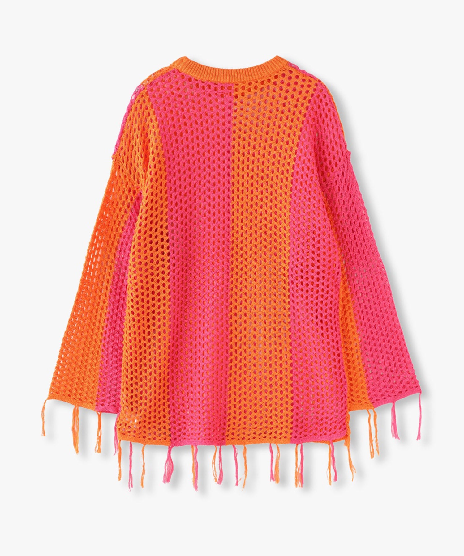 ビッグメッシュ+フリンジでボヘミアン風の雰囲気にストリート要素強めのカラーで新しいMIXスタイルが完成◎