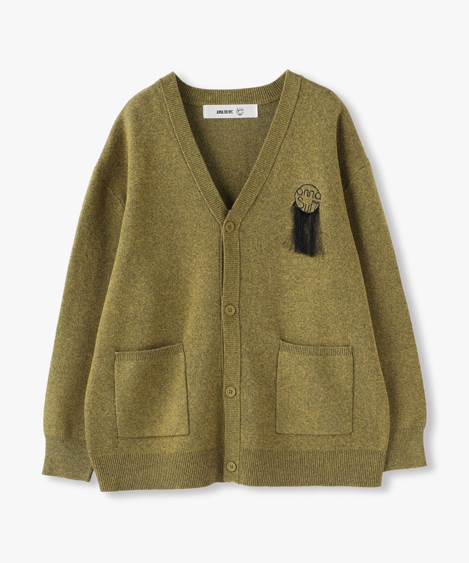 シンプルながら遊び心を効かせたデザインが魅力のカーディガン。胸元にはブランドロゴとフリンジ刺繍がアクセントとして施されています。ベーシックなシルエットでコーディネートしやすく、デイリーからカジュアルなお出かけまで幅広く活躍。フロントボタンとポケット付きで実用性も兼ね備えています。
