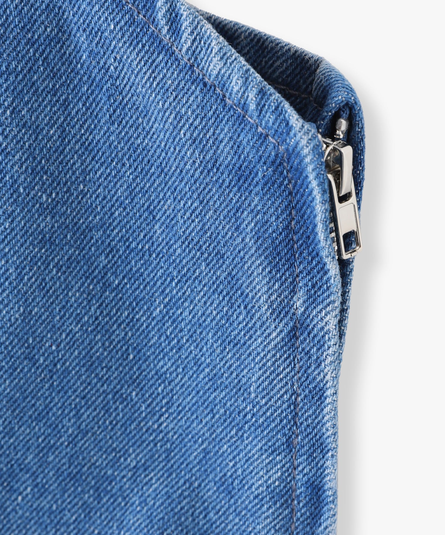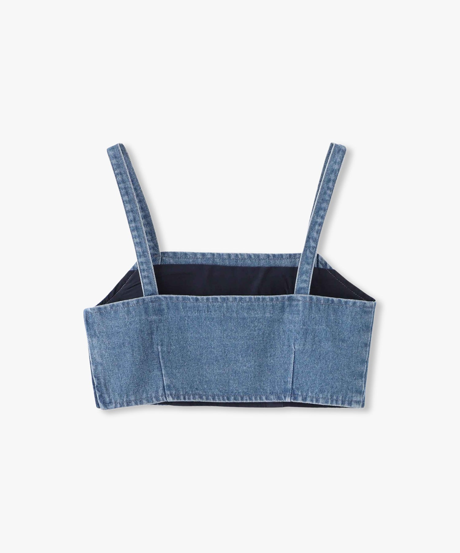 フロントにANNASUI NYCオリジナルロゴ刺繍を施したBOXシルエットが特徴のデニムビスチェ。
